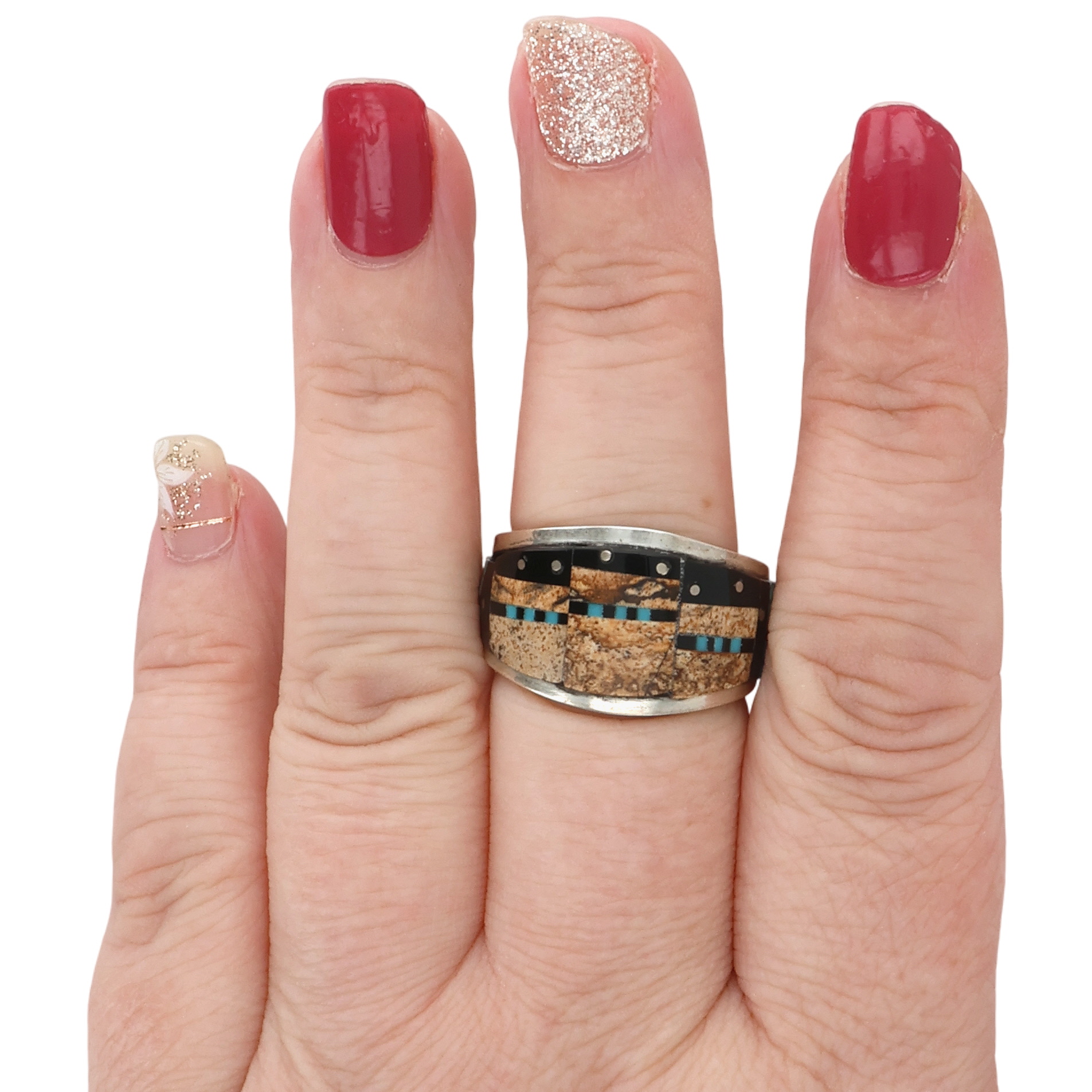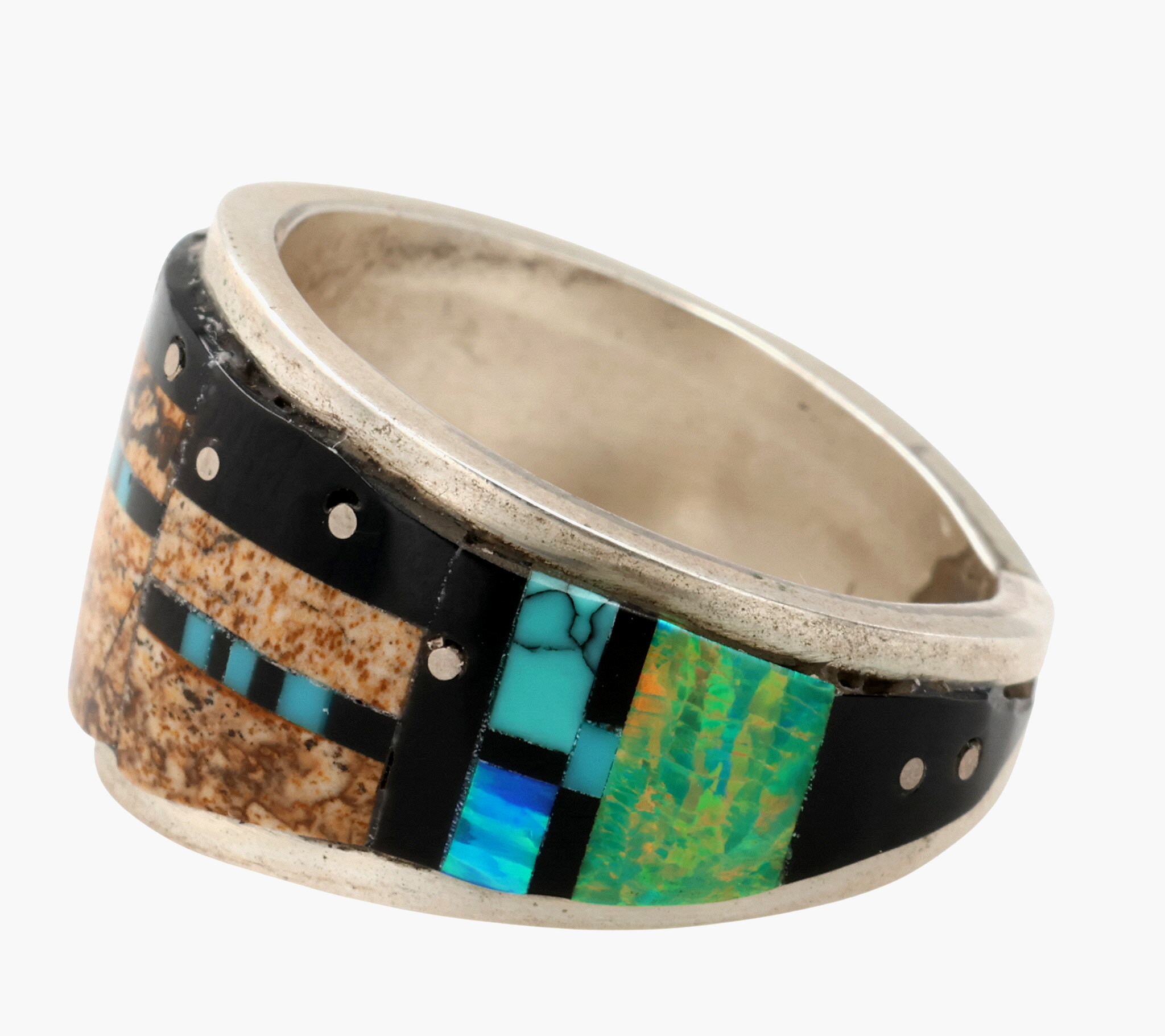 Gilbert Smith Navajo Sterling Multi-Stone Inlay Ring Sz 9, 7g