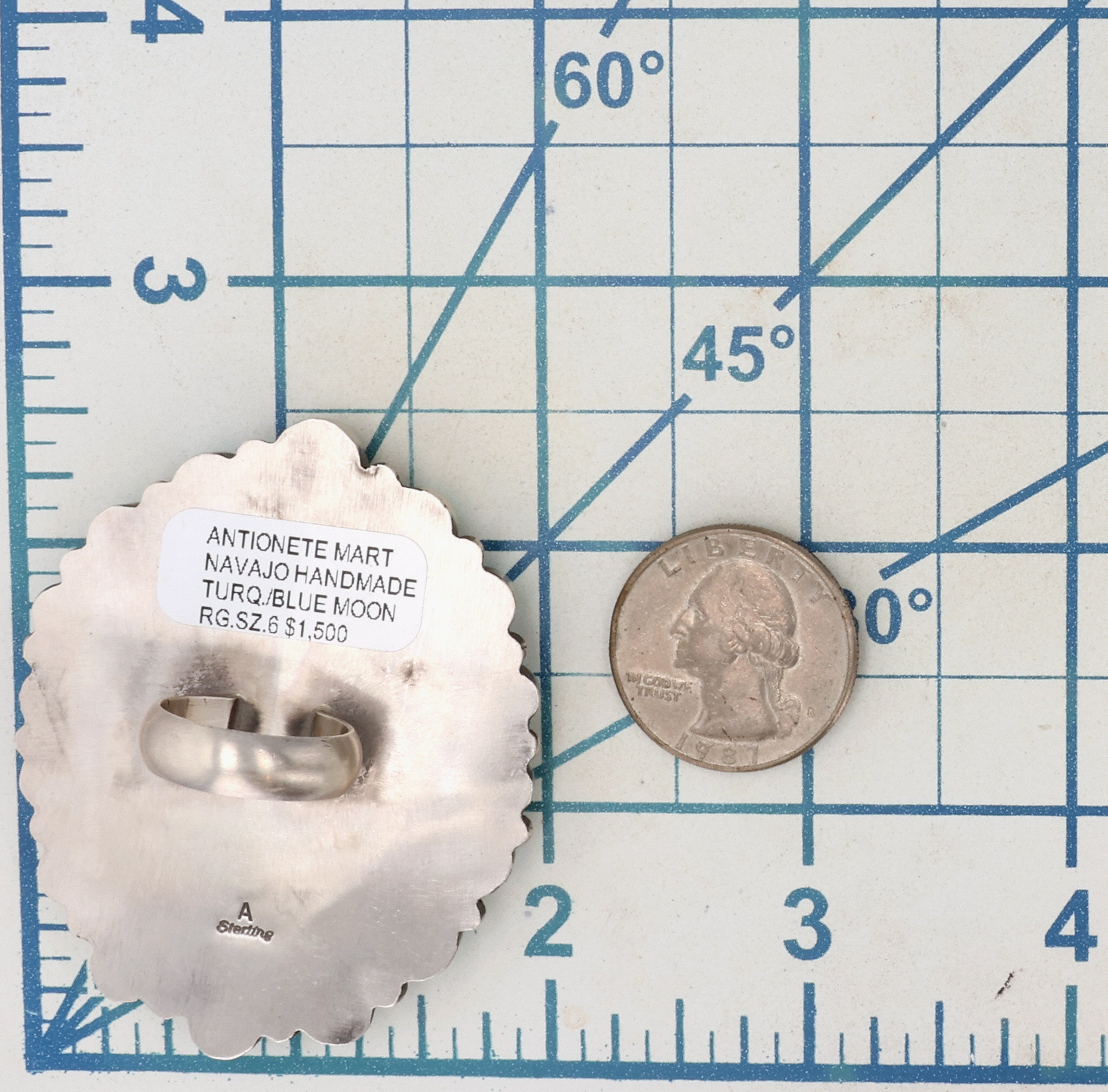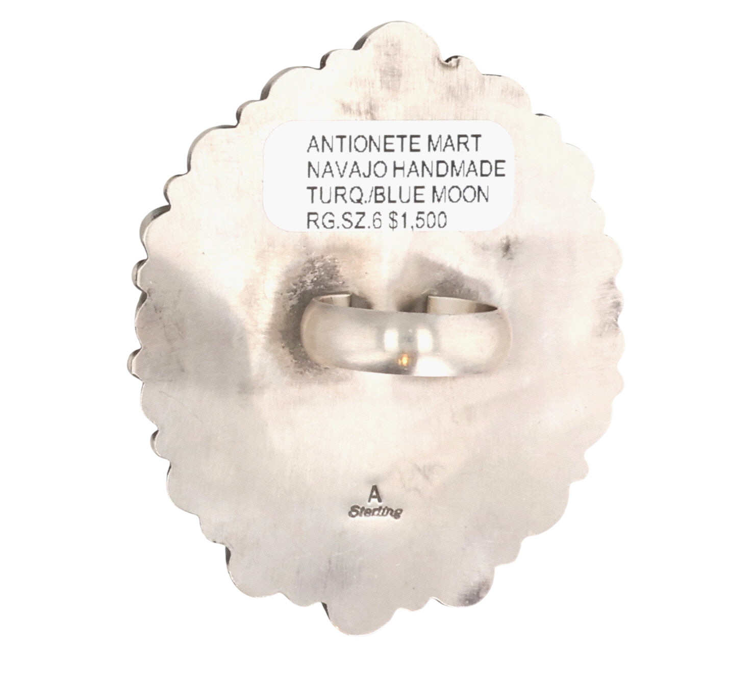 Antoinette Martinez Navajo Sterling Blue Moon Turquoise Ring Sz 6, 44.5g