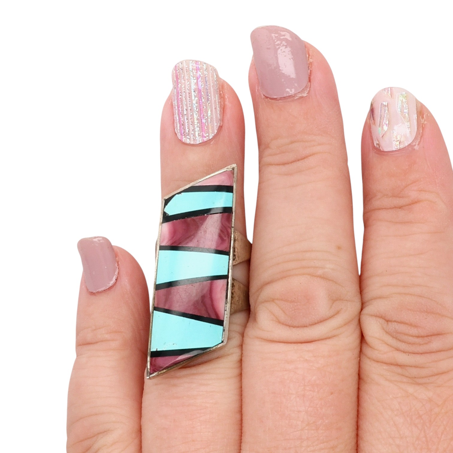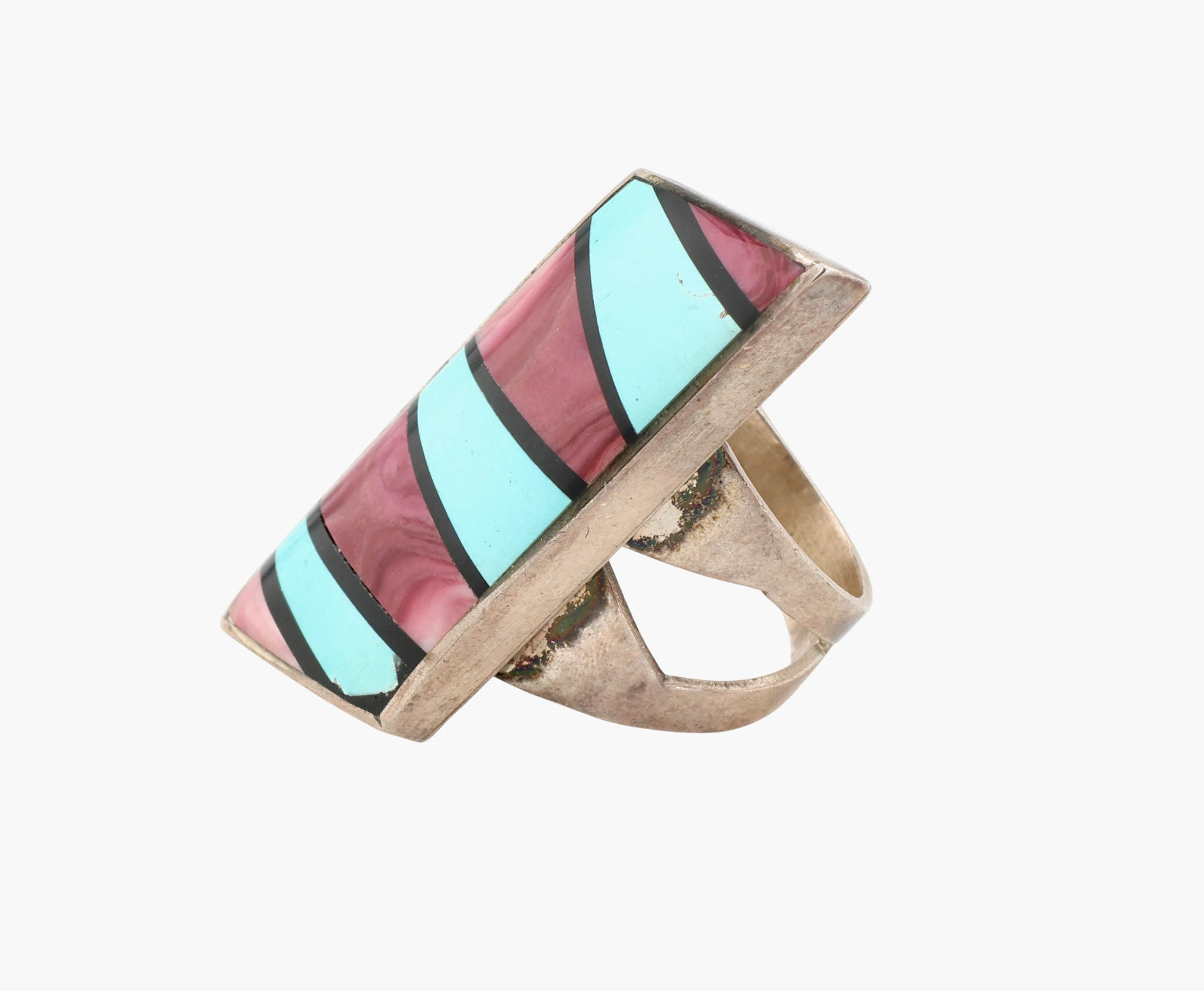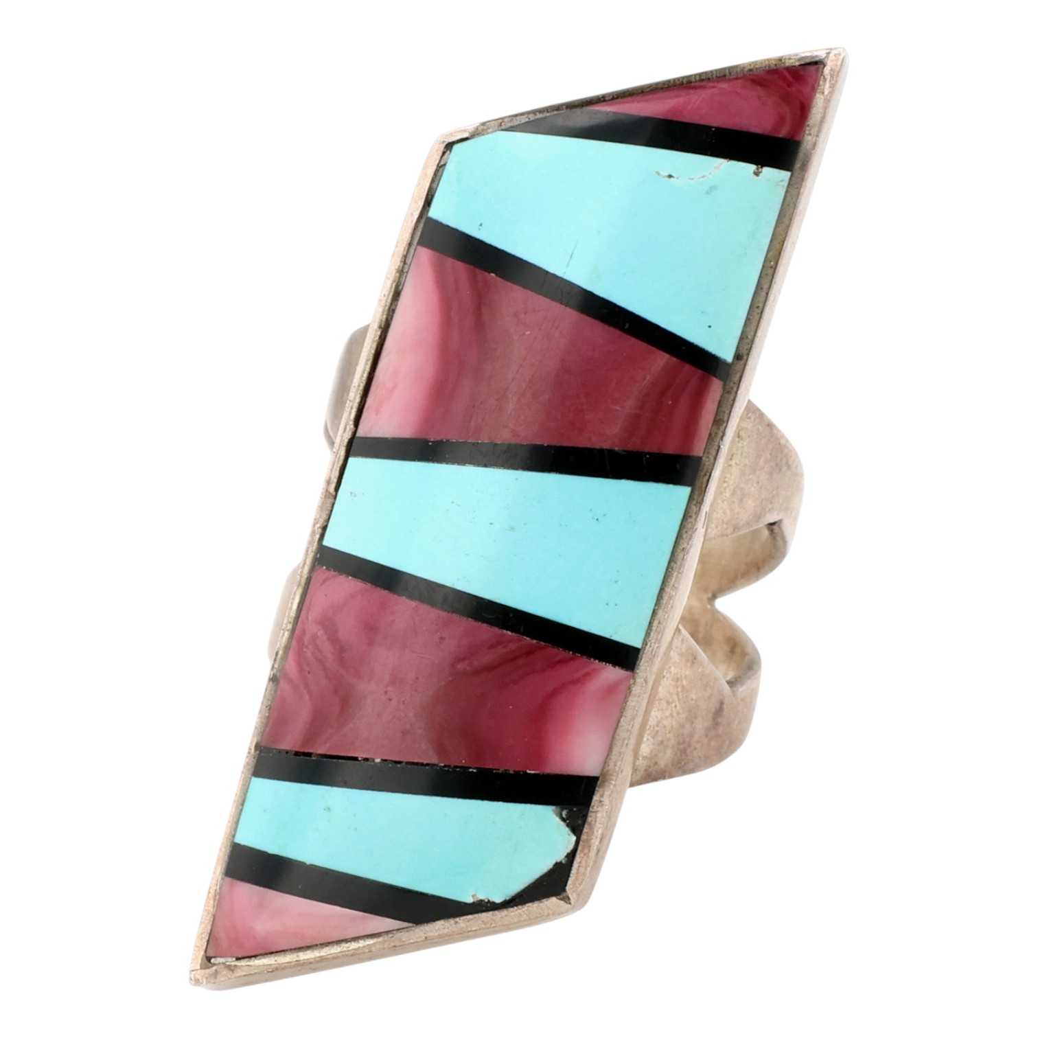 Frank Yazzie Navajo Sterling Multi-Stone Ring Sz 5.25, 10g