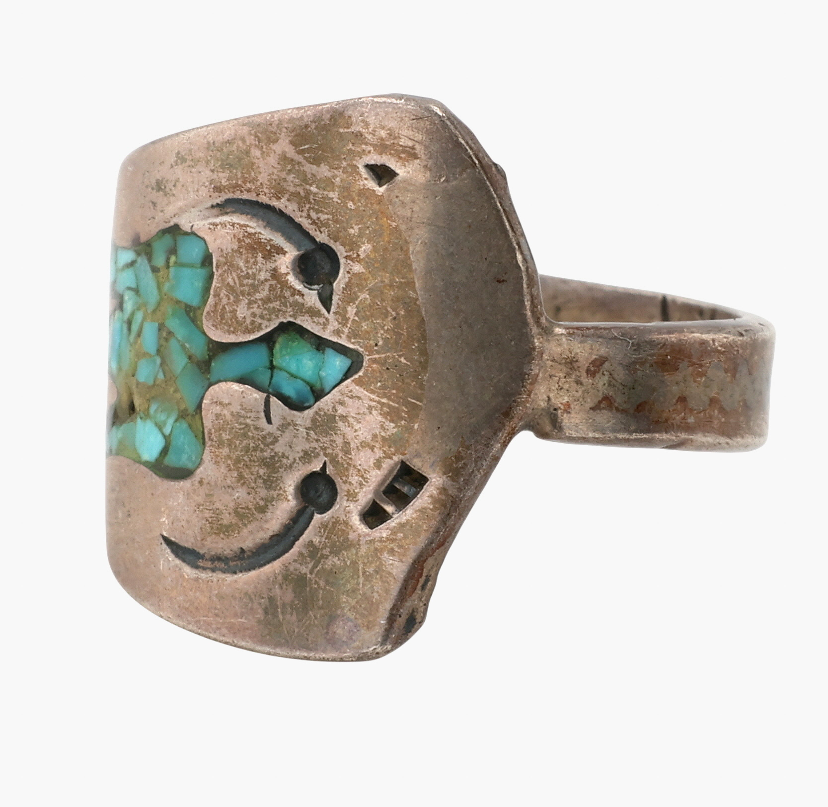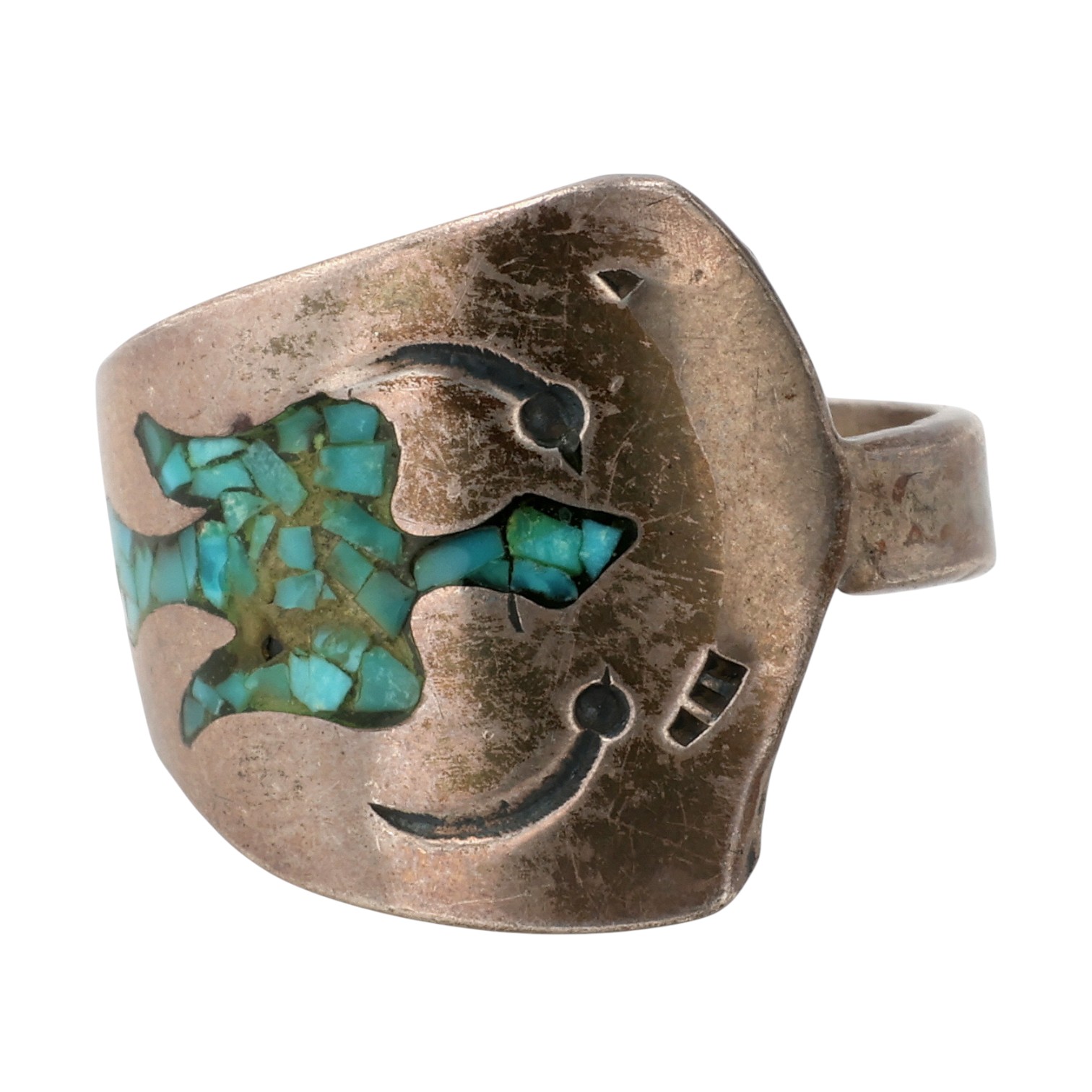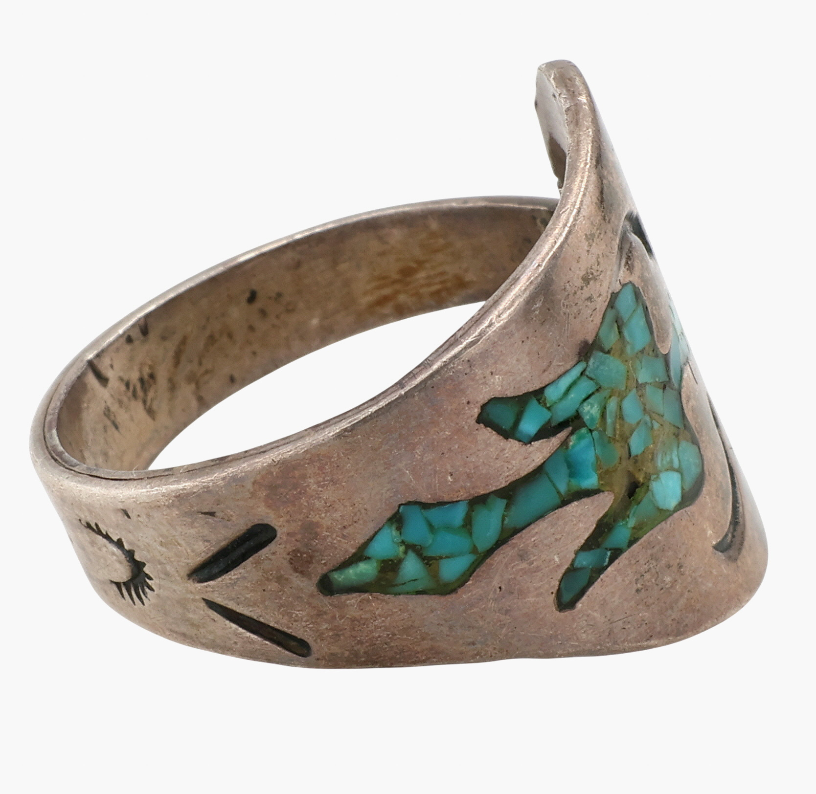 Vintage Navajo Sterling Crushed Turquoise Thunderbird Ring Sz 8.75