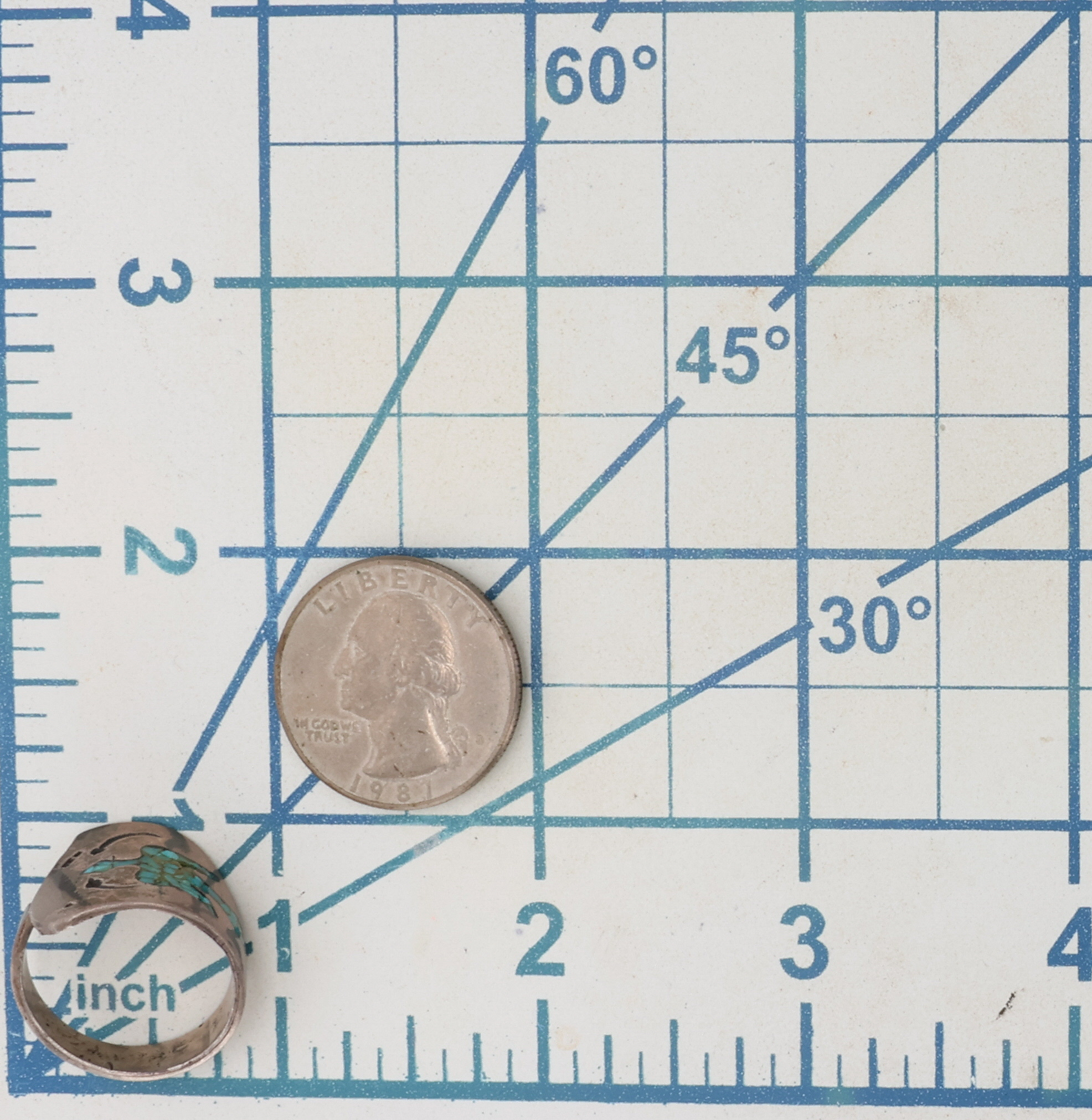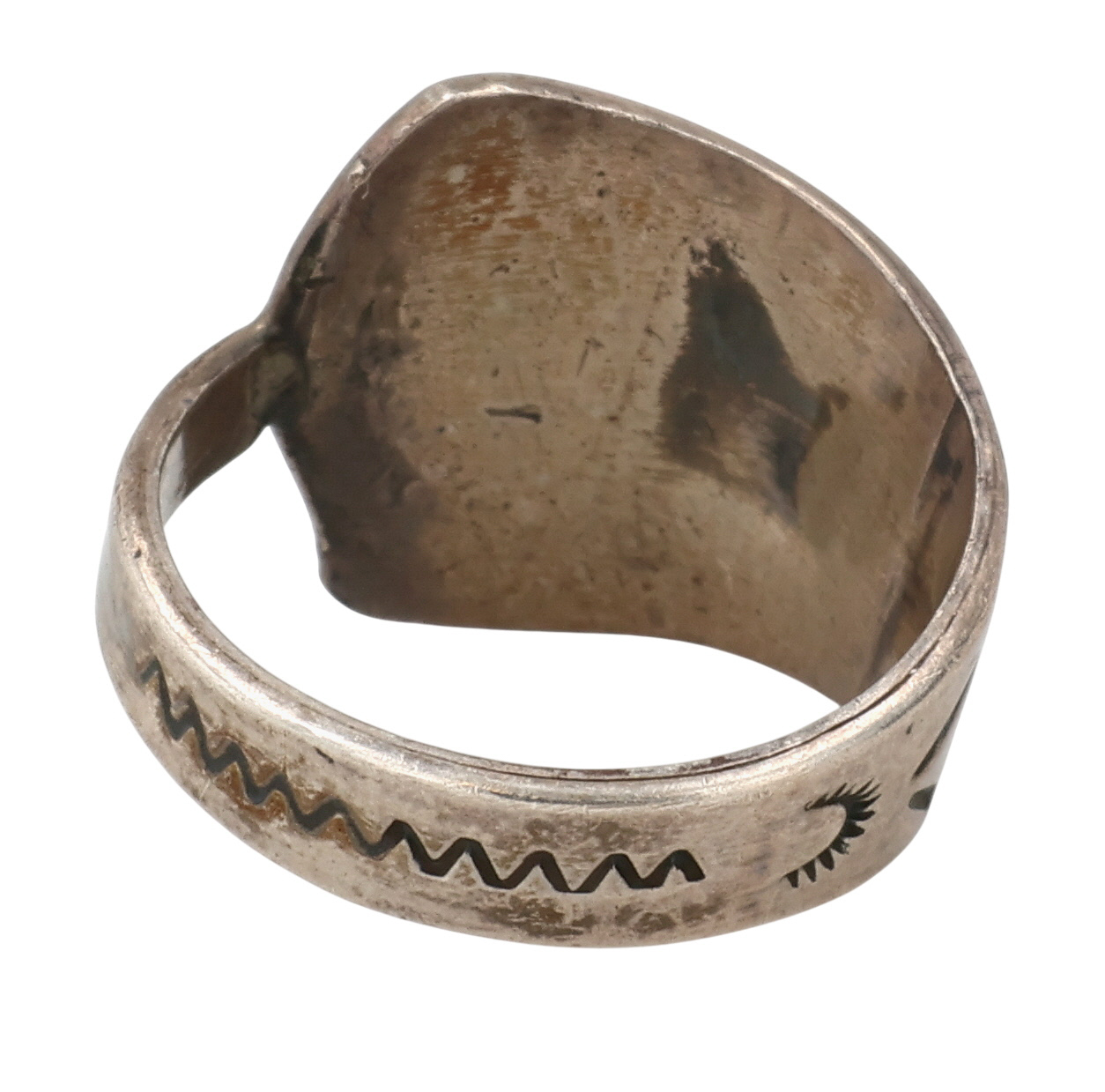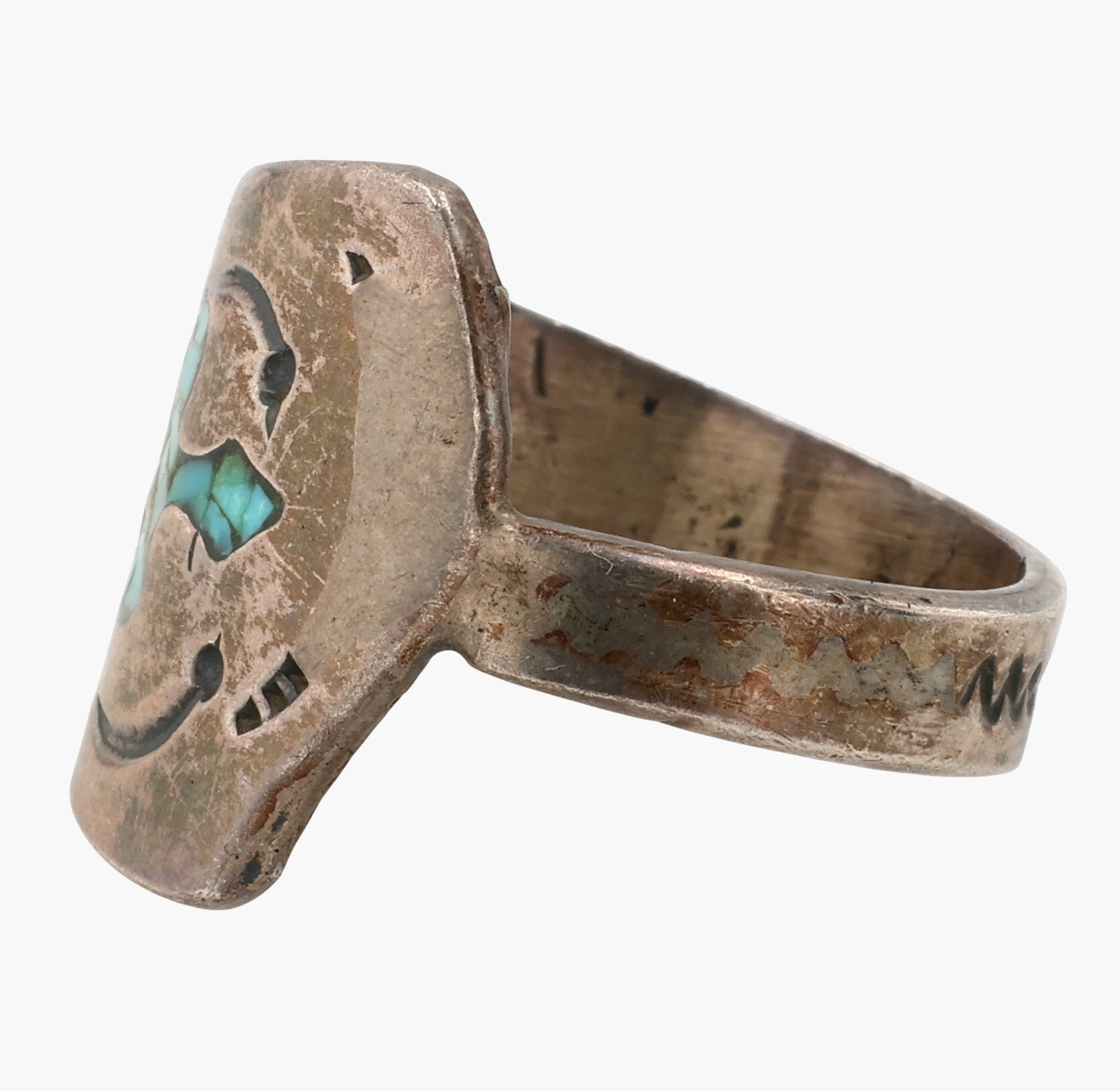 Vintage Navajo Sterling Crushed Turquoise Thunderbird Ring Sz 8.75