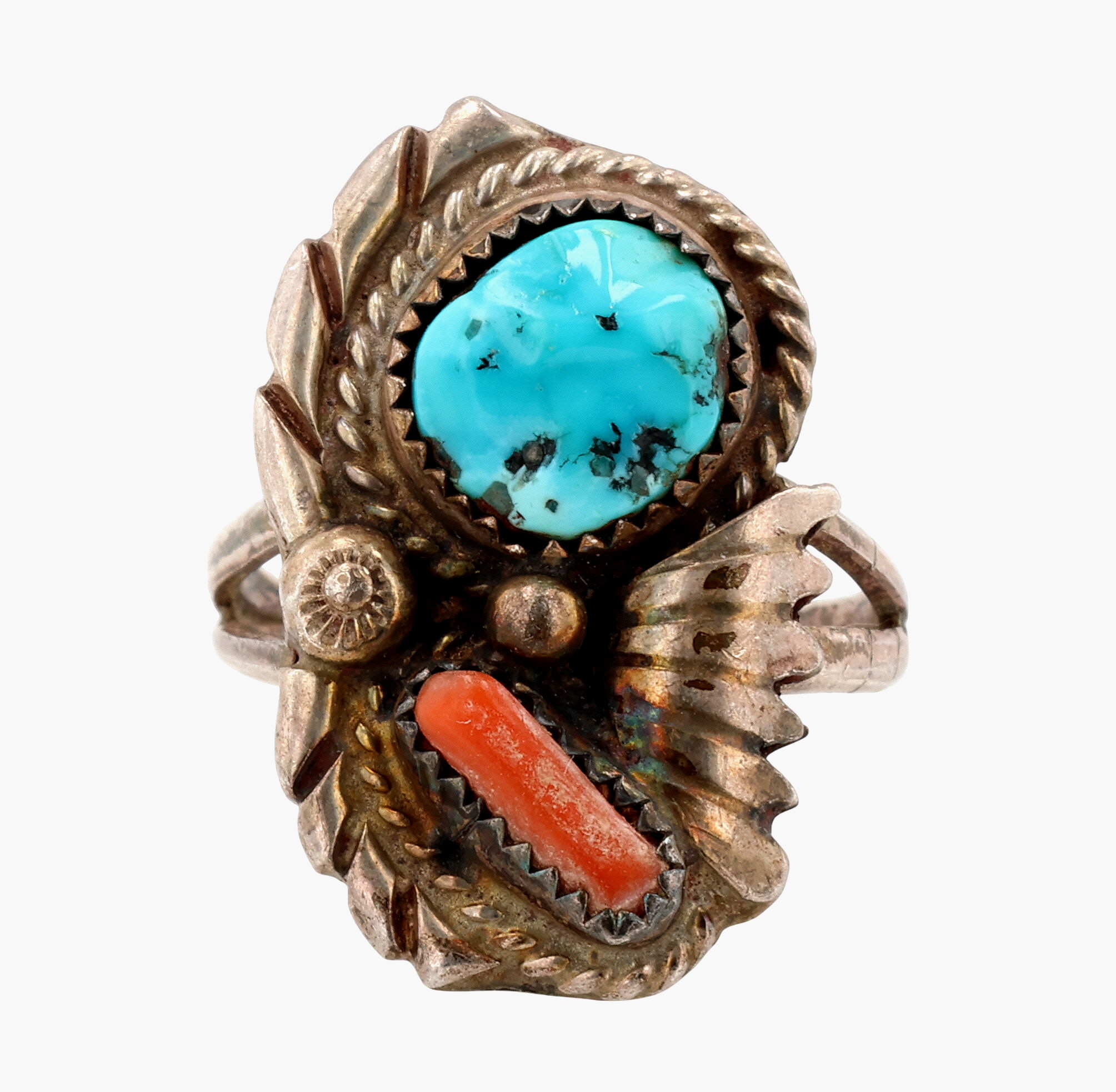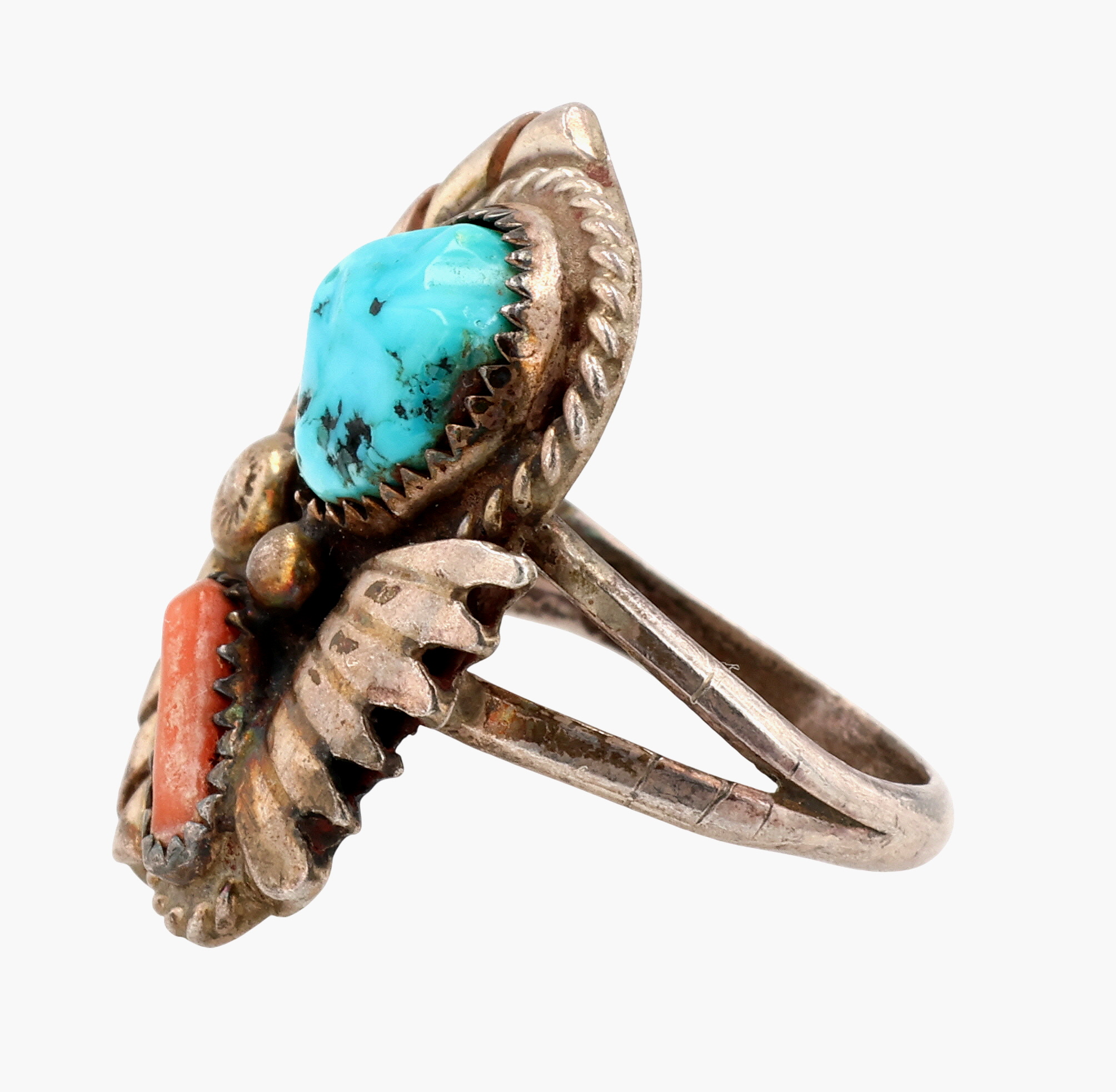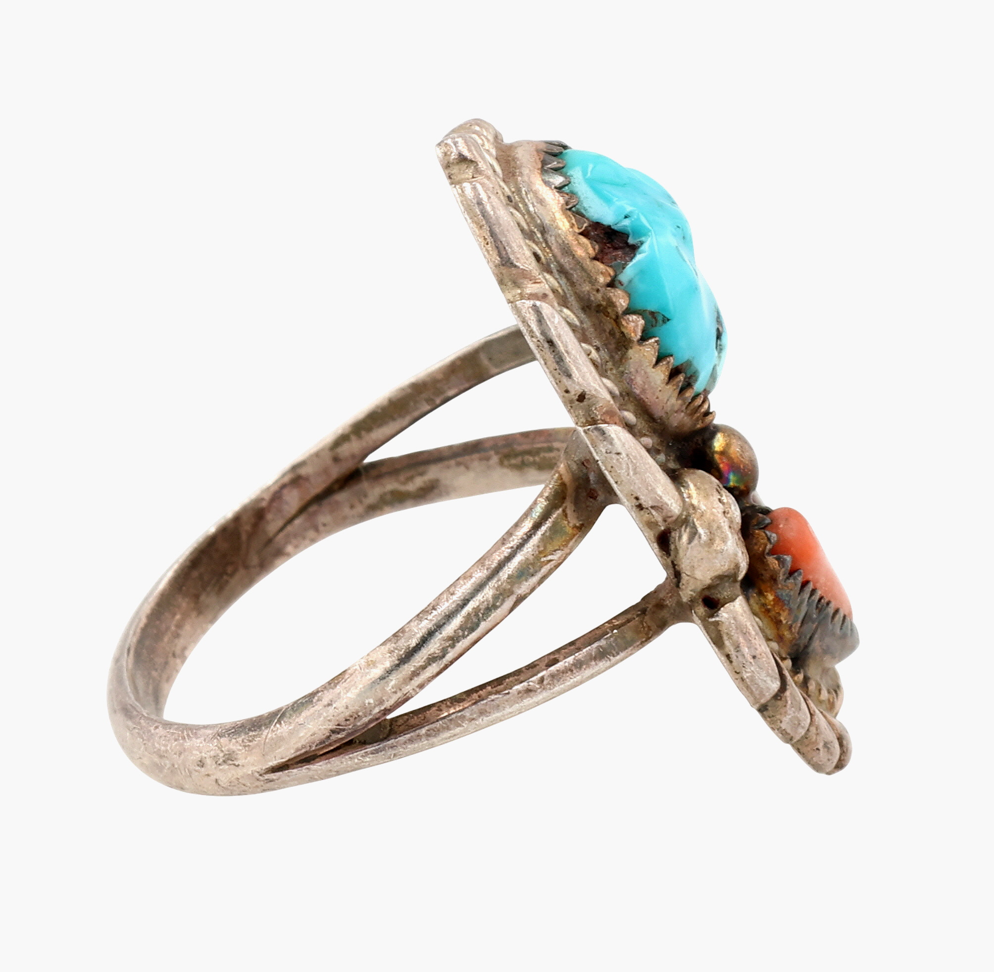 Signed Vintage Navajo Sterling Multi-Stone Ring Sz 6.25, 5g,