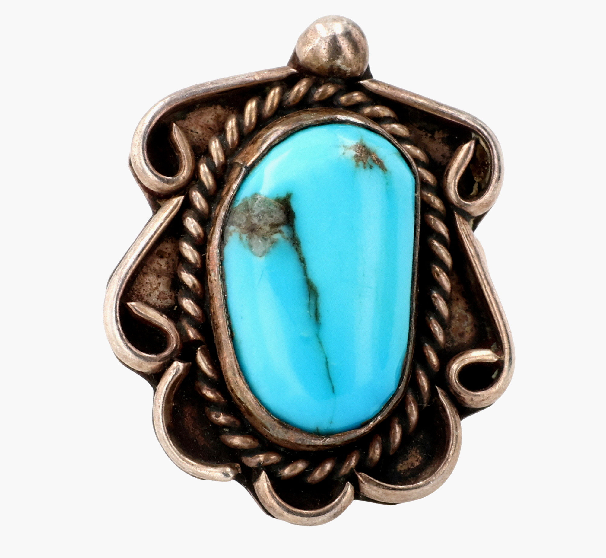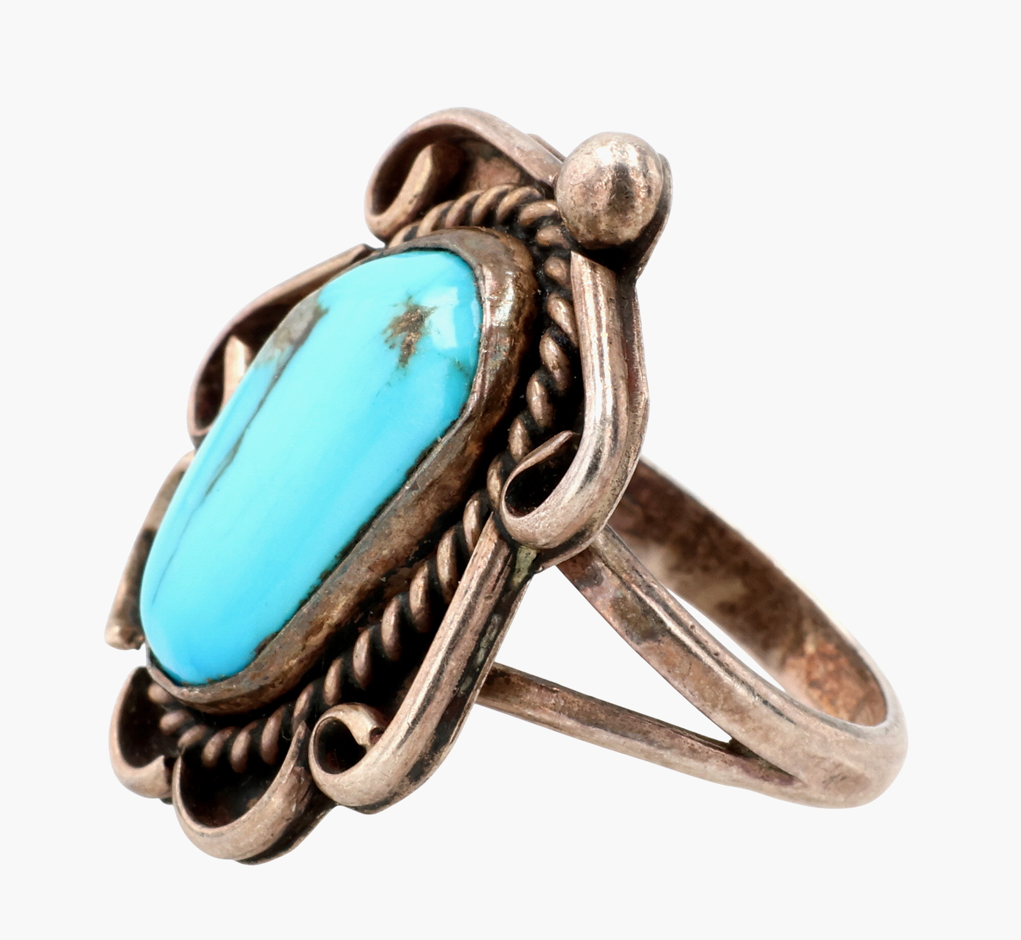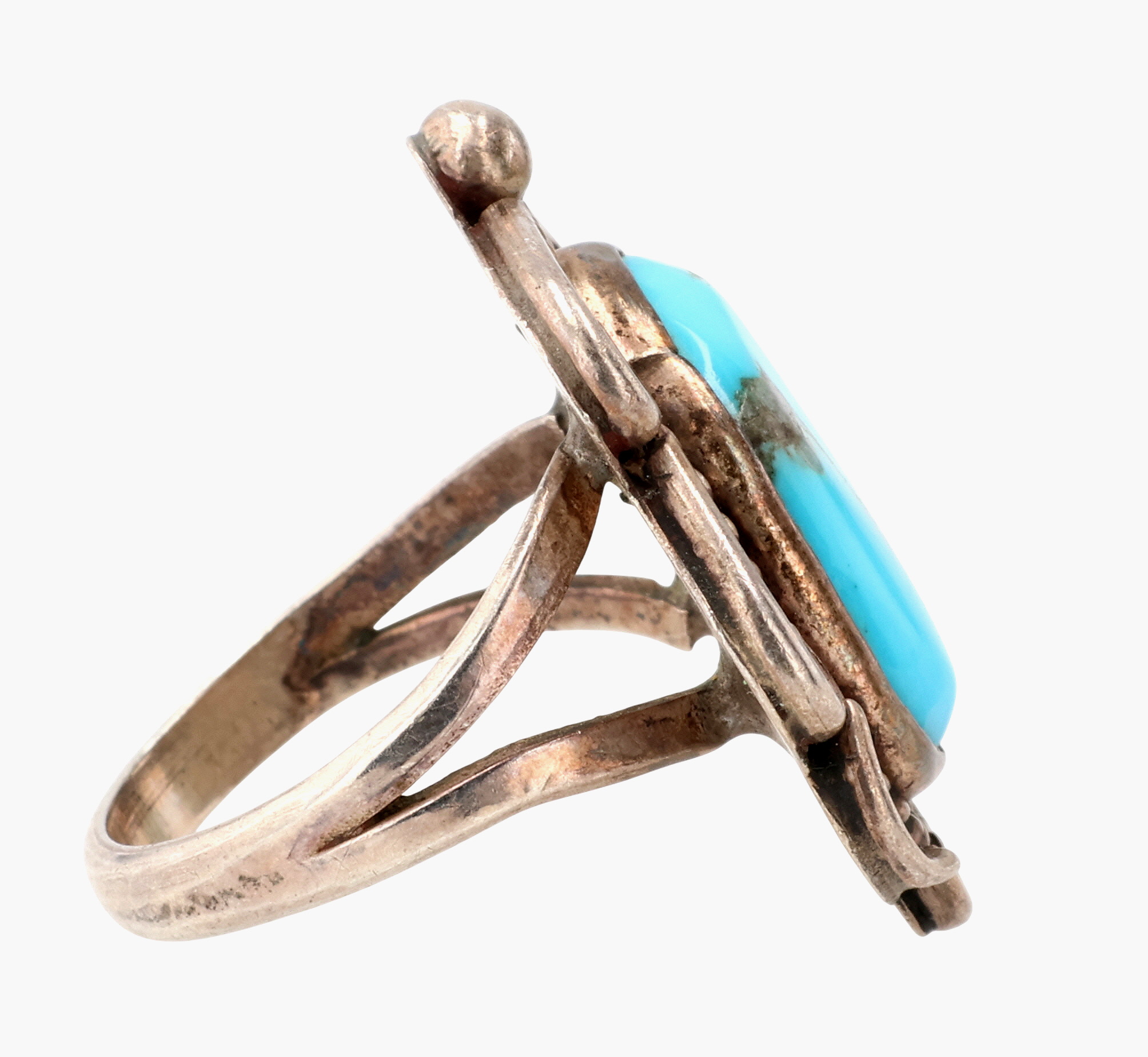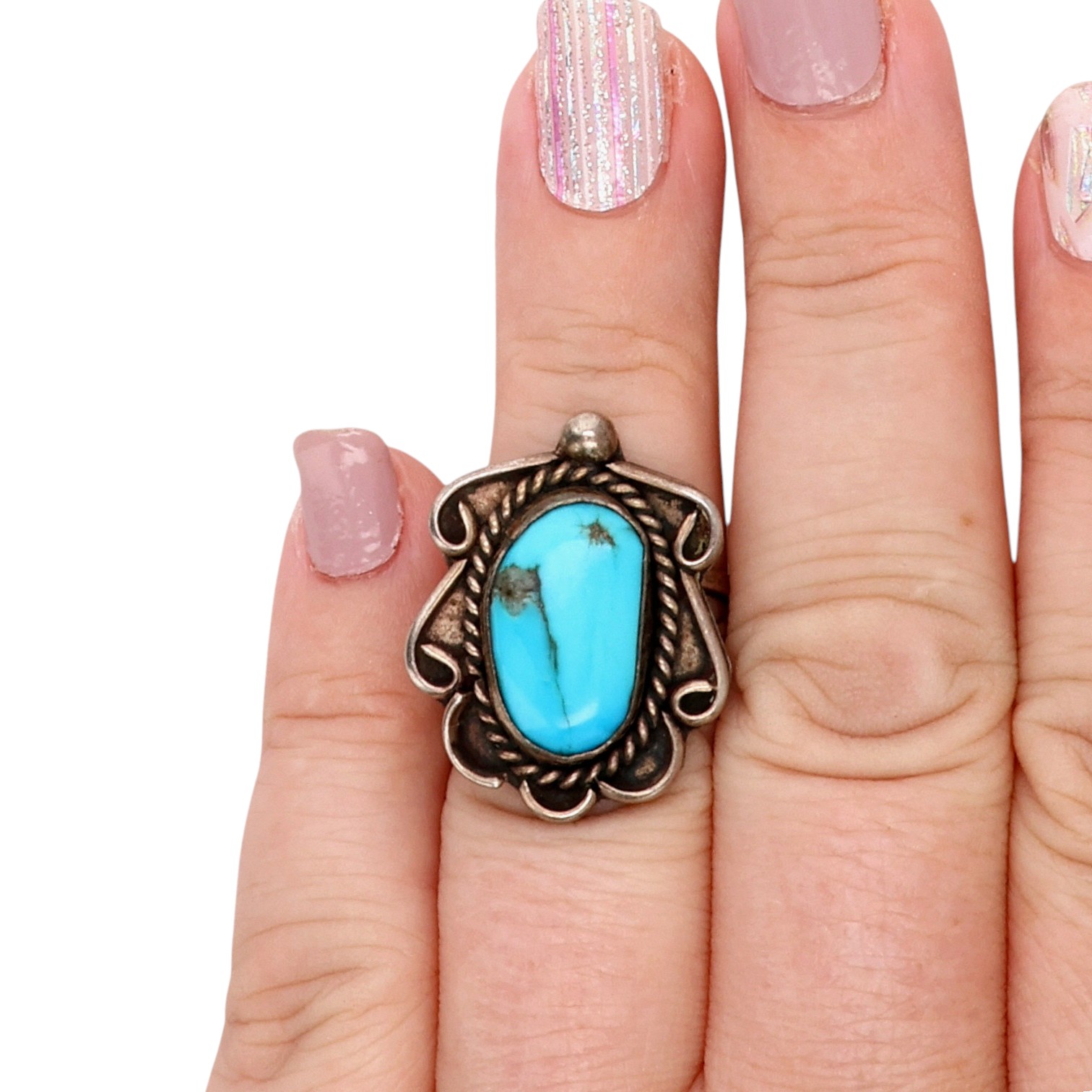 Vintage Navajo Sterling Turquoise Ring Sz 6.75, 7g