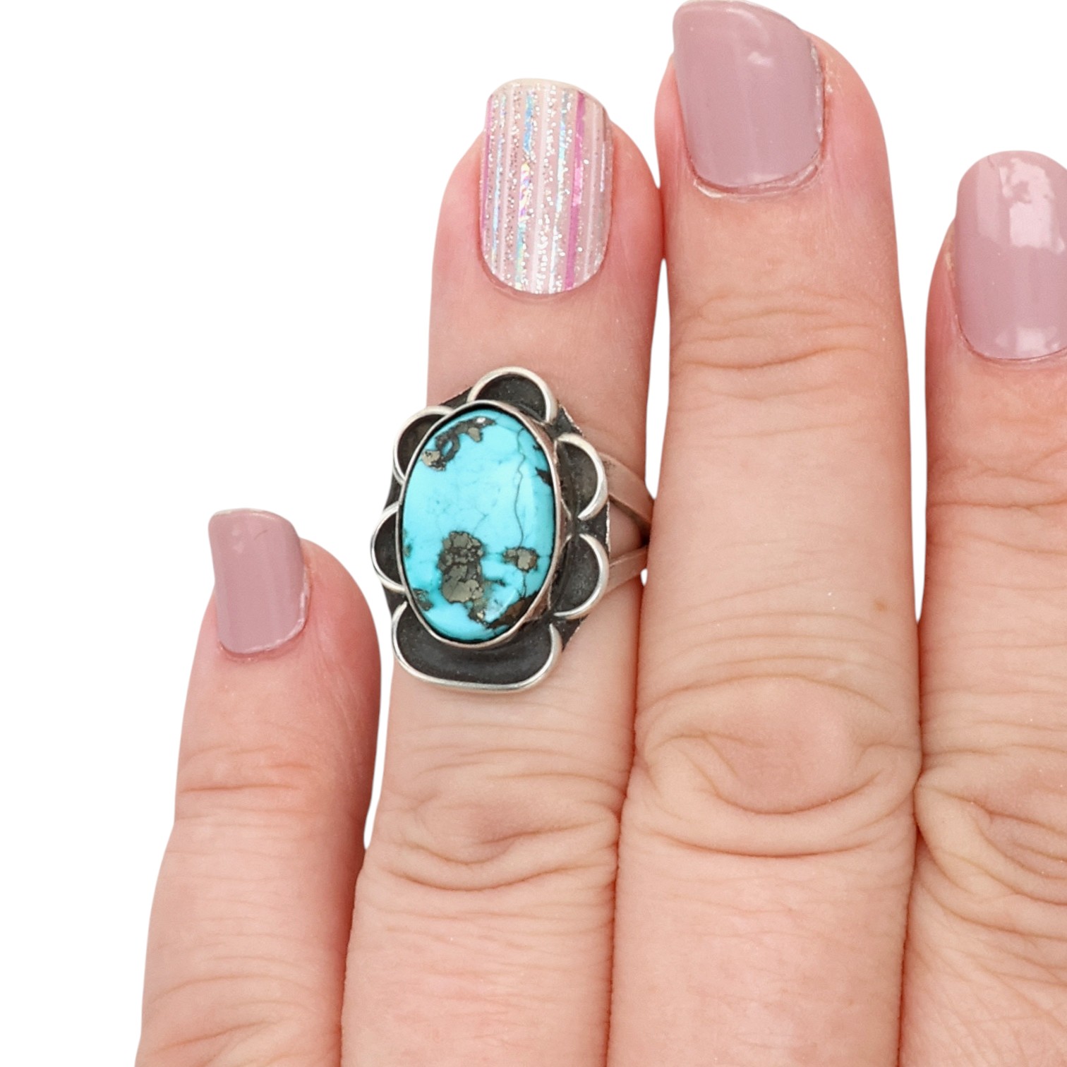 Vintage Navajo Sterling Turquoise Ring Sz 4.25, 5g