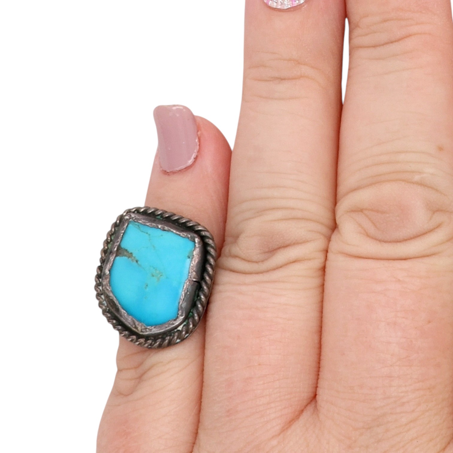 Vintage Navajo Sterling Turquoise Ring Sz 3.75, 4.5g