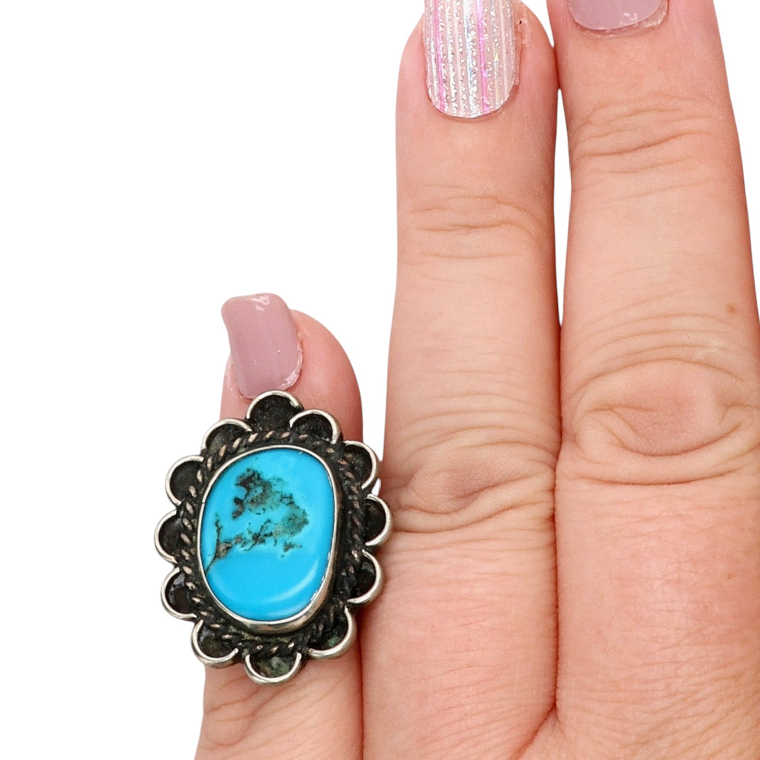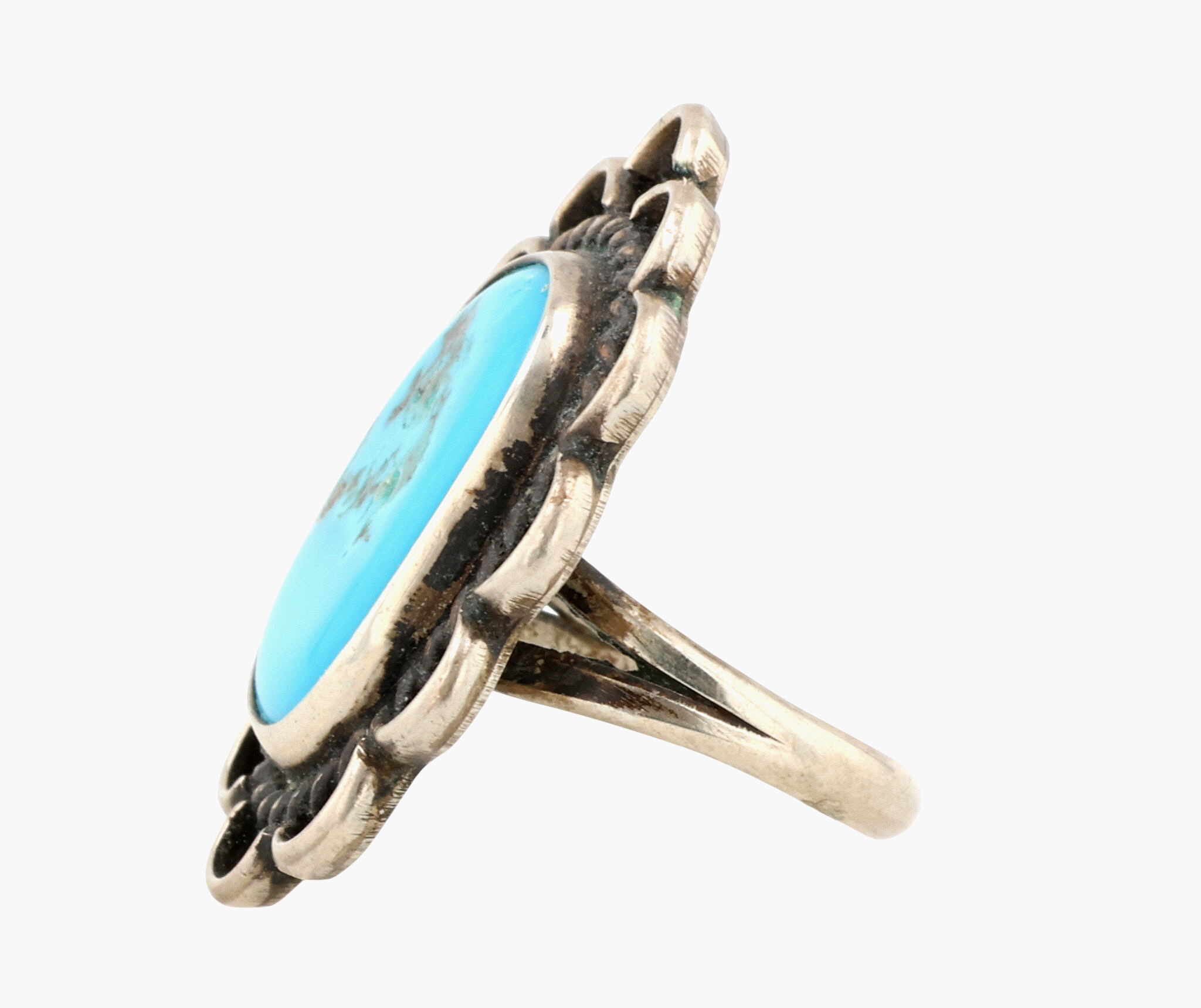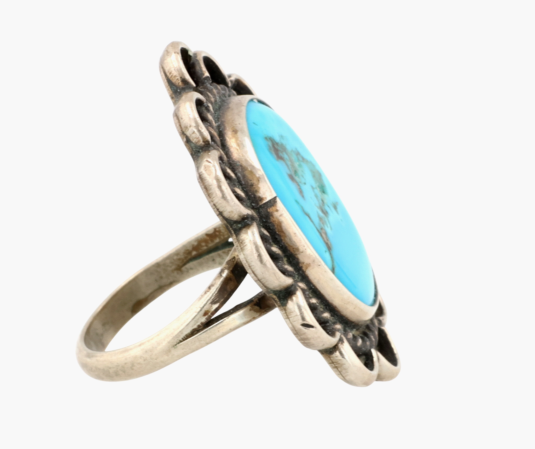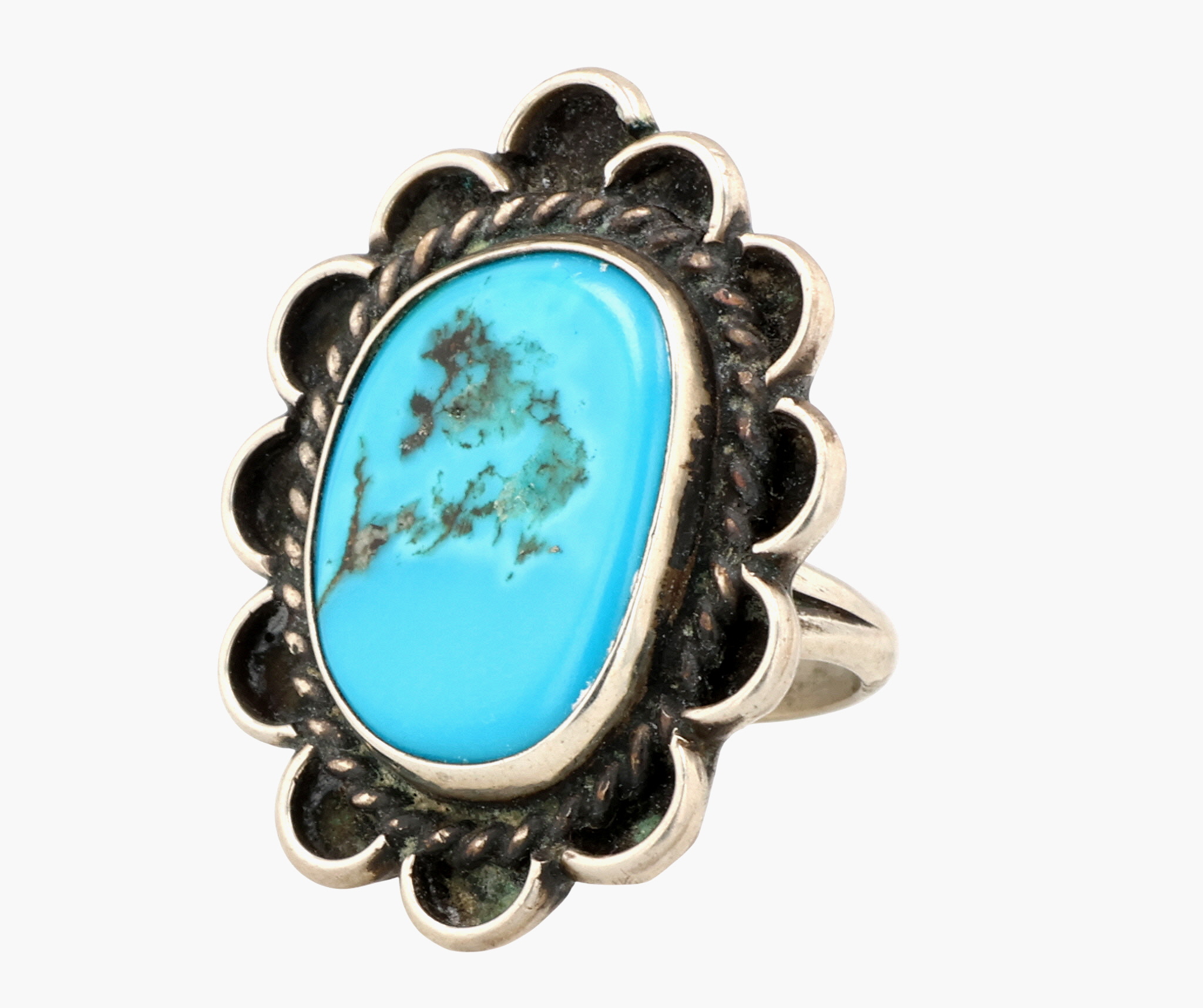 Vintage Navajo Sterling Turquoise Floral Ring Sz 3.25