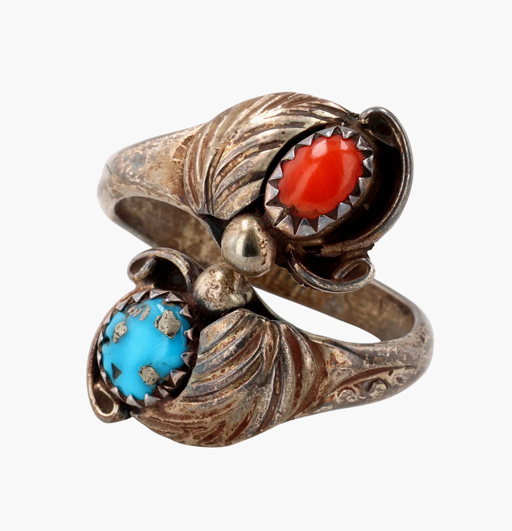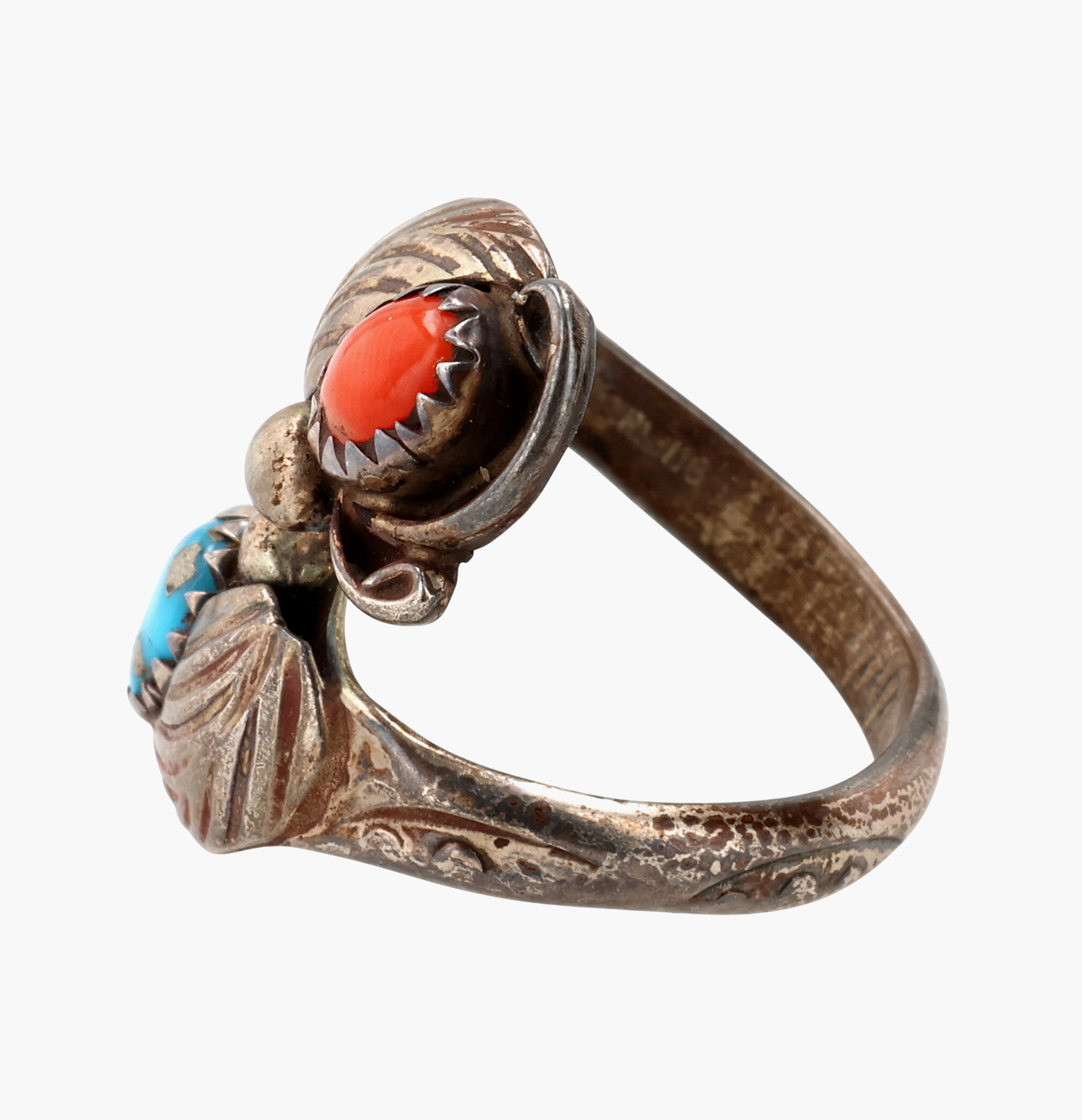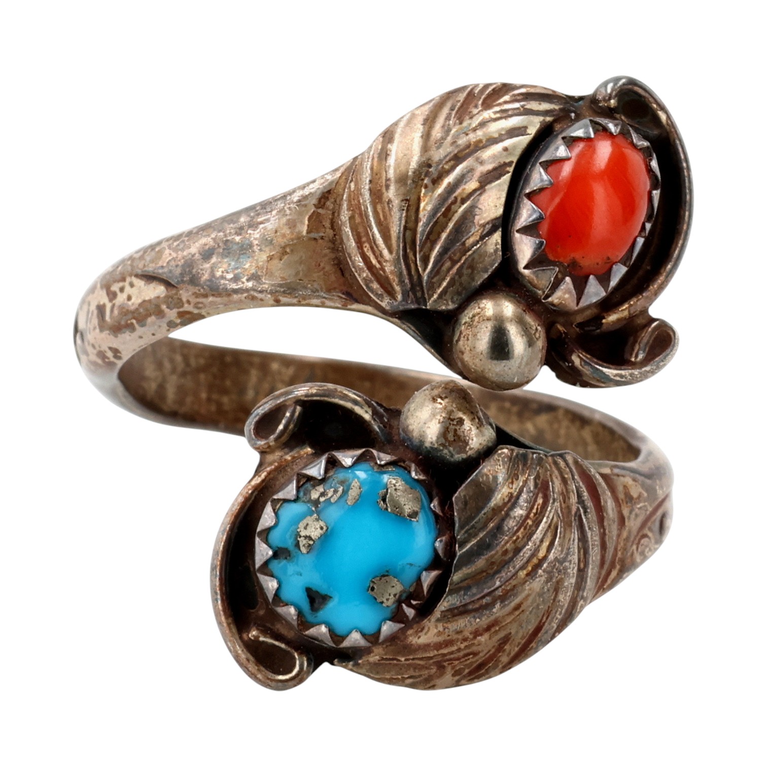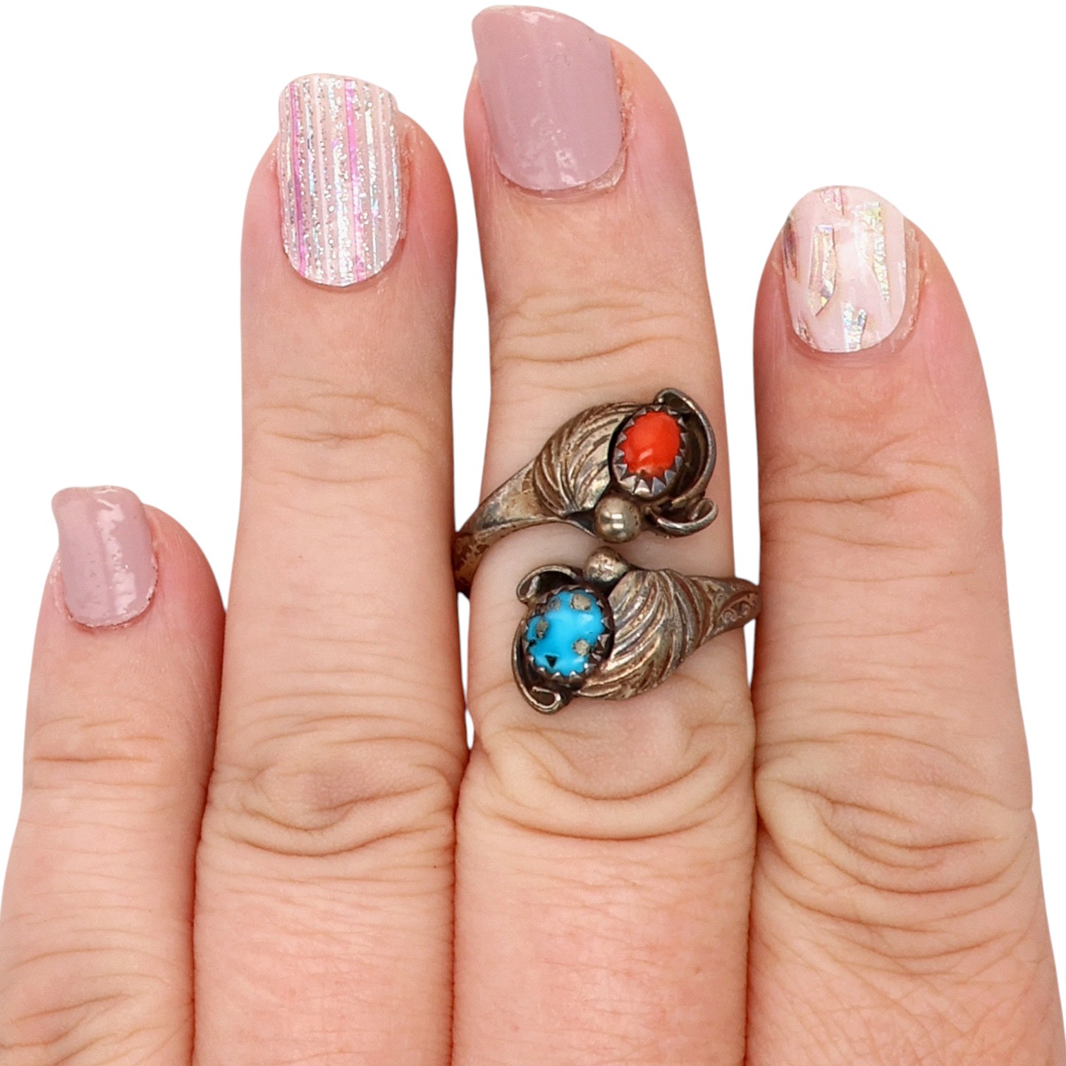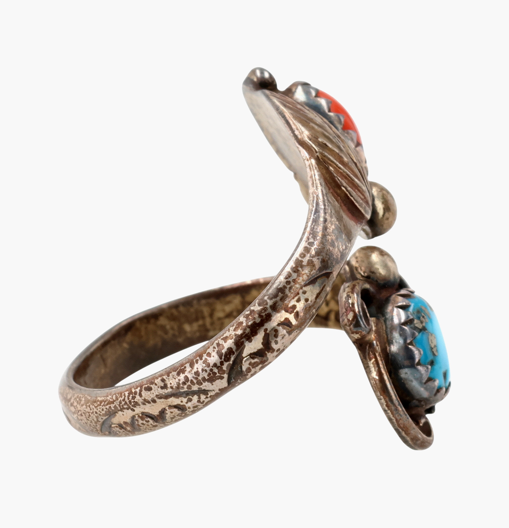 Signed Vintage Navajo Sterling Multi-Stone Wrap Ring