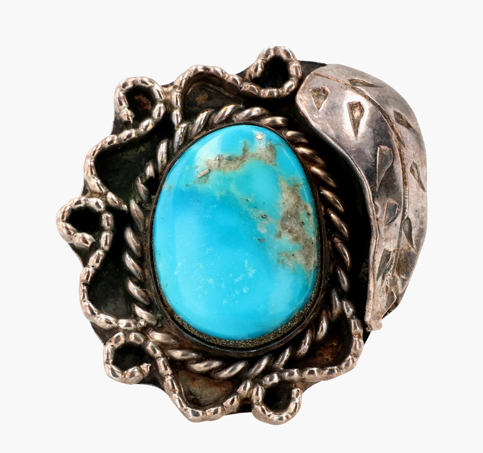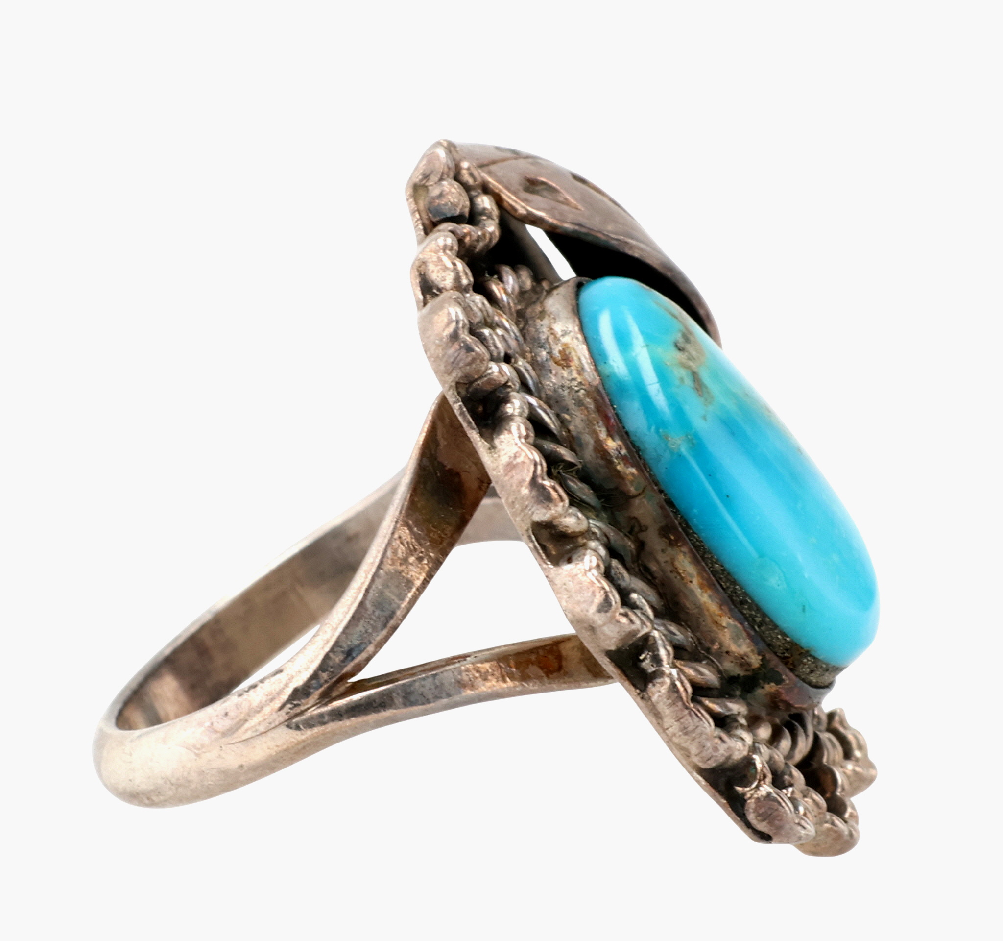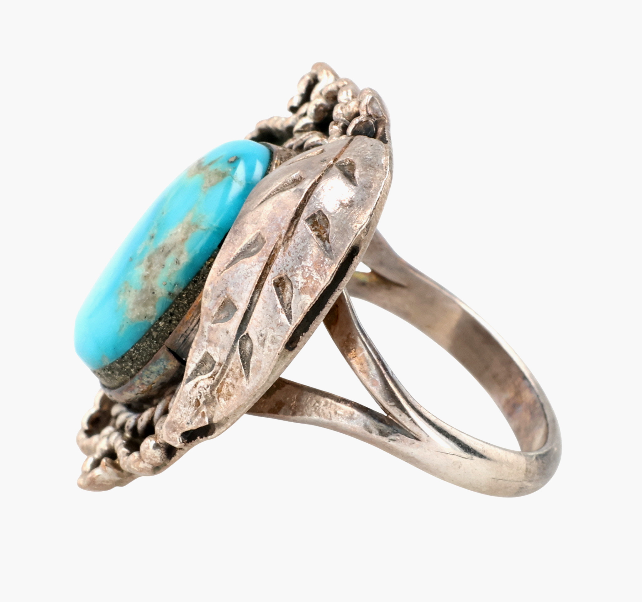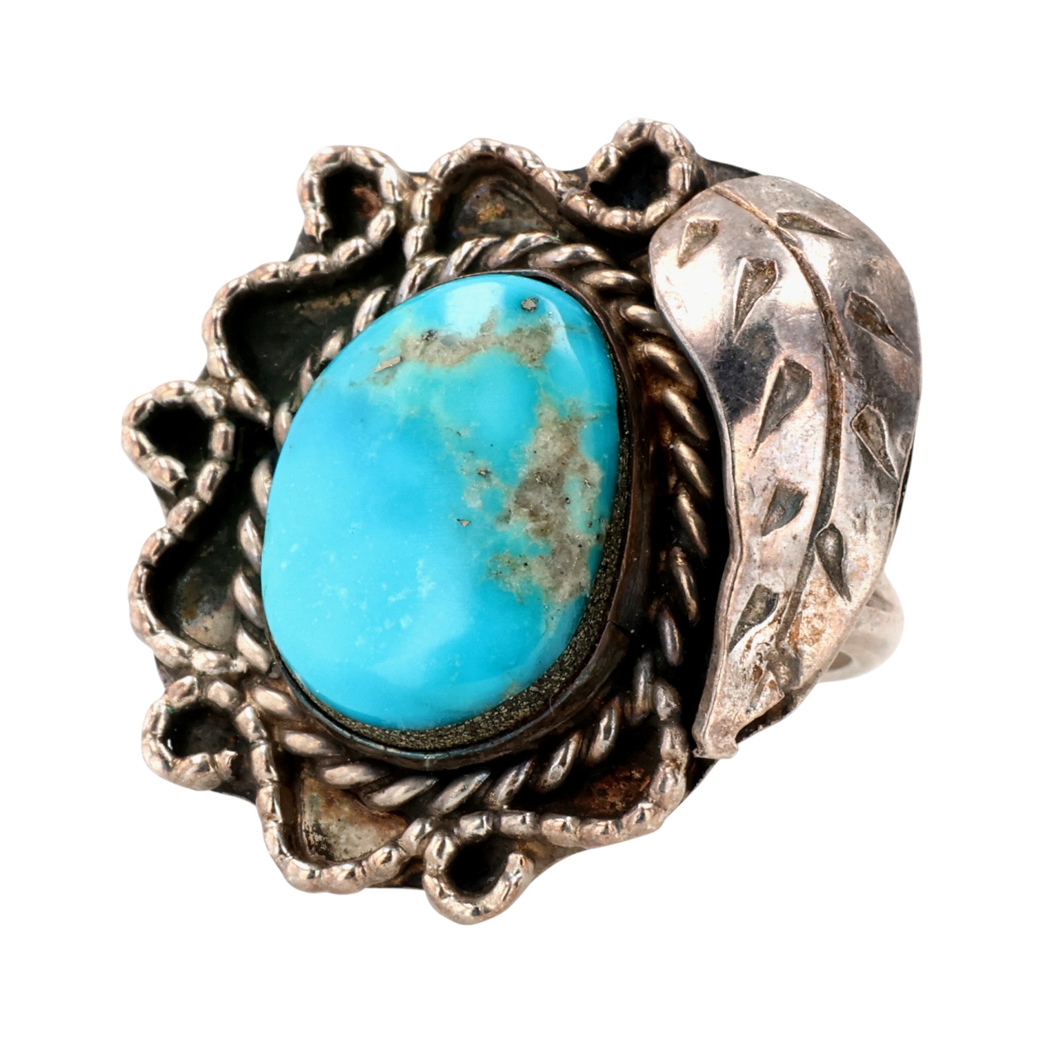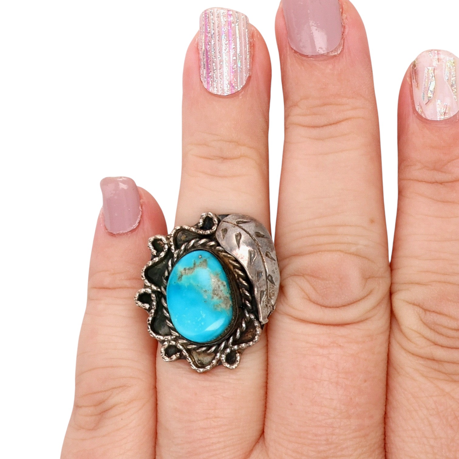 Vintage Navajo Sterling Turquoise Leaf Ring Sz 7.25, 8g