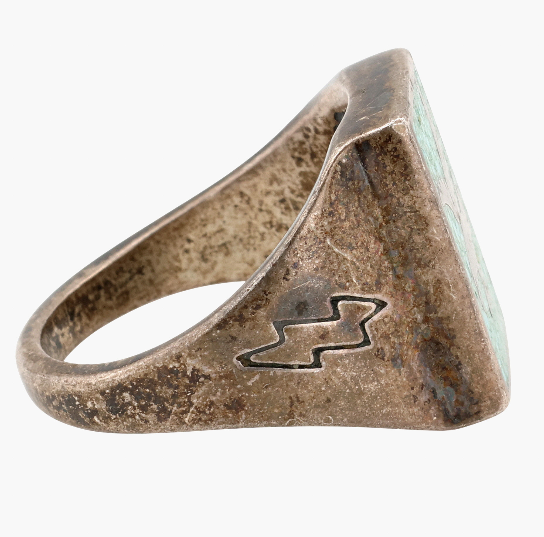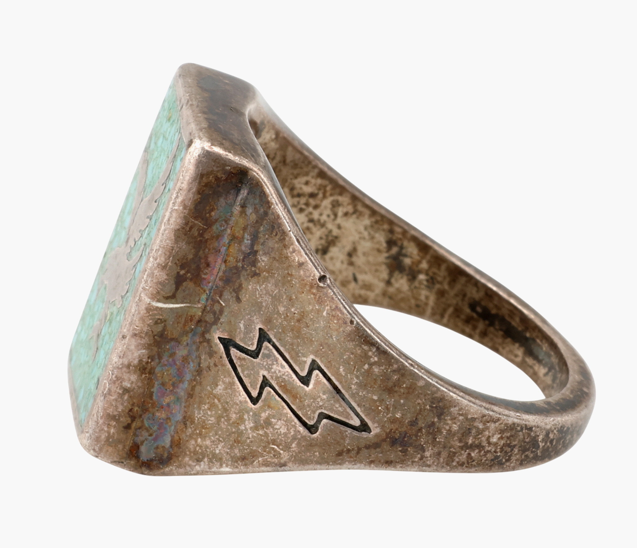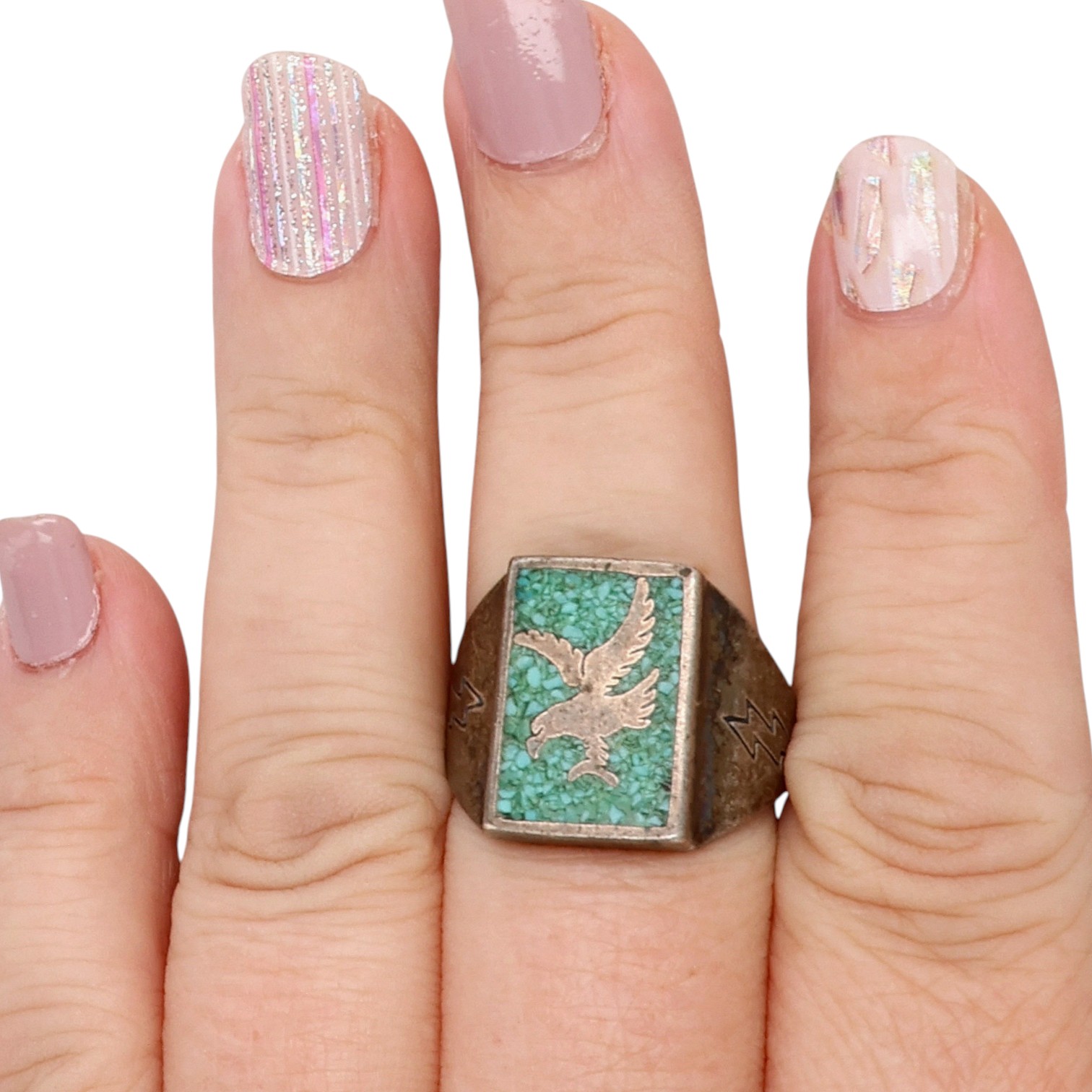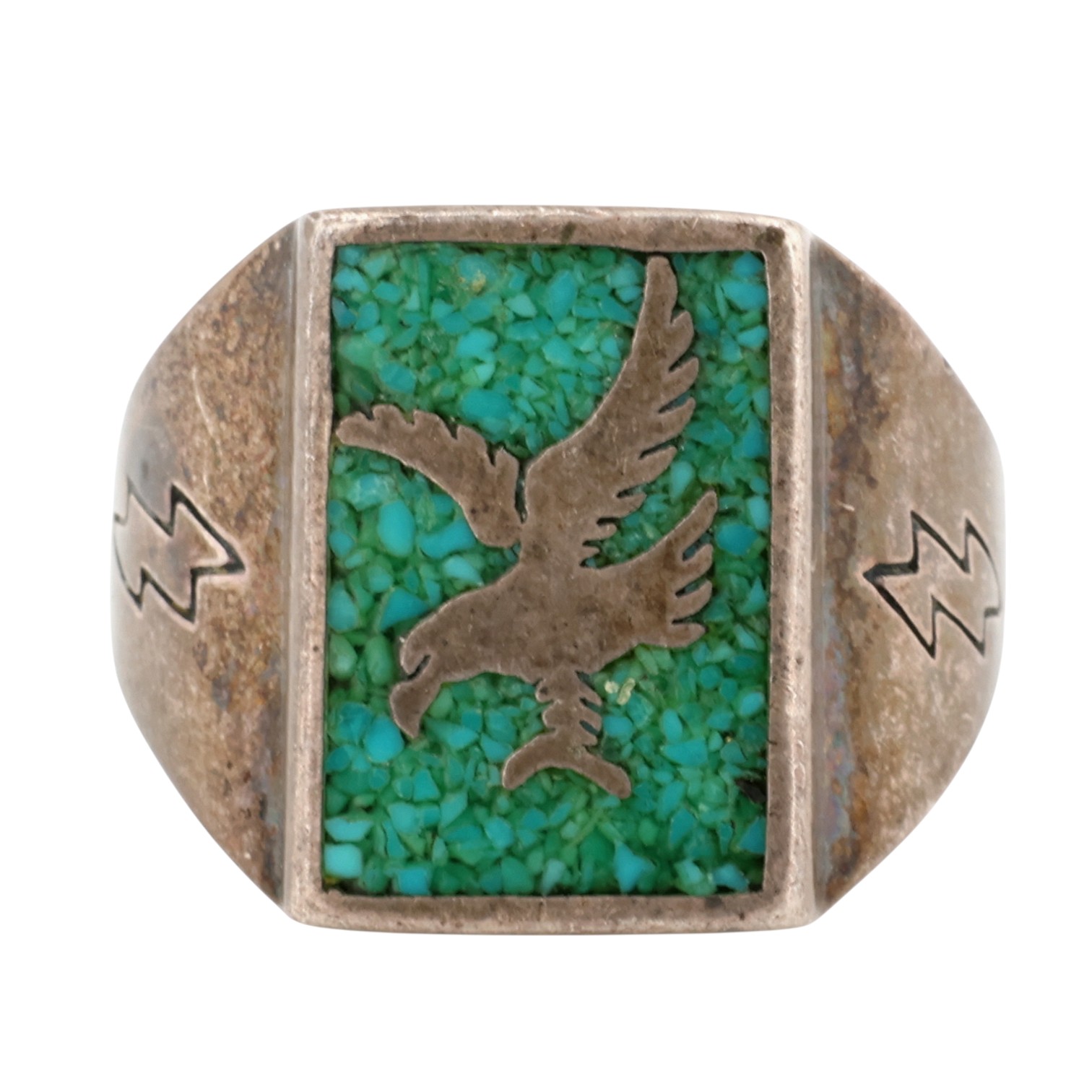 Old Carlisle Jewelry Sterling Crushed Turquoise Eagle Inlay Ring Sz 9.5, 12.5g