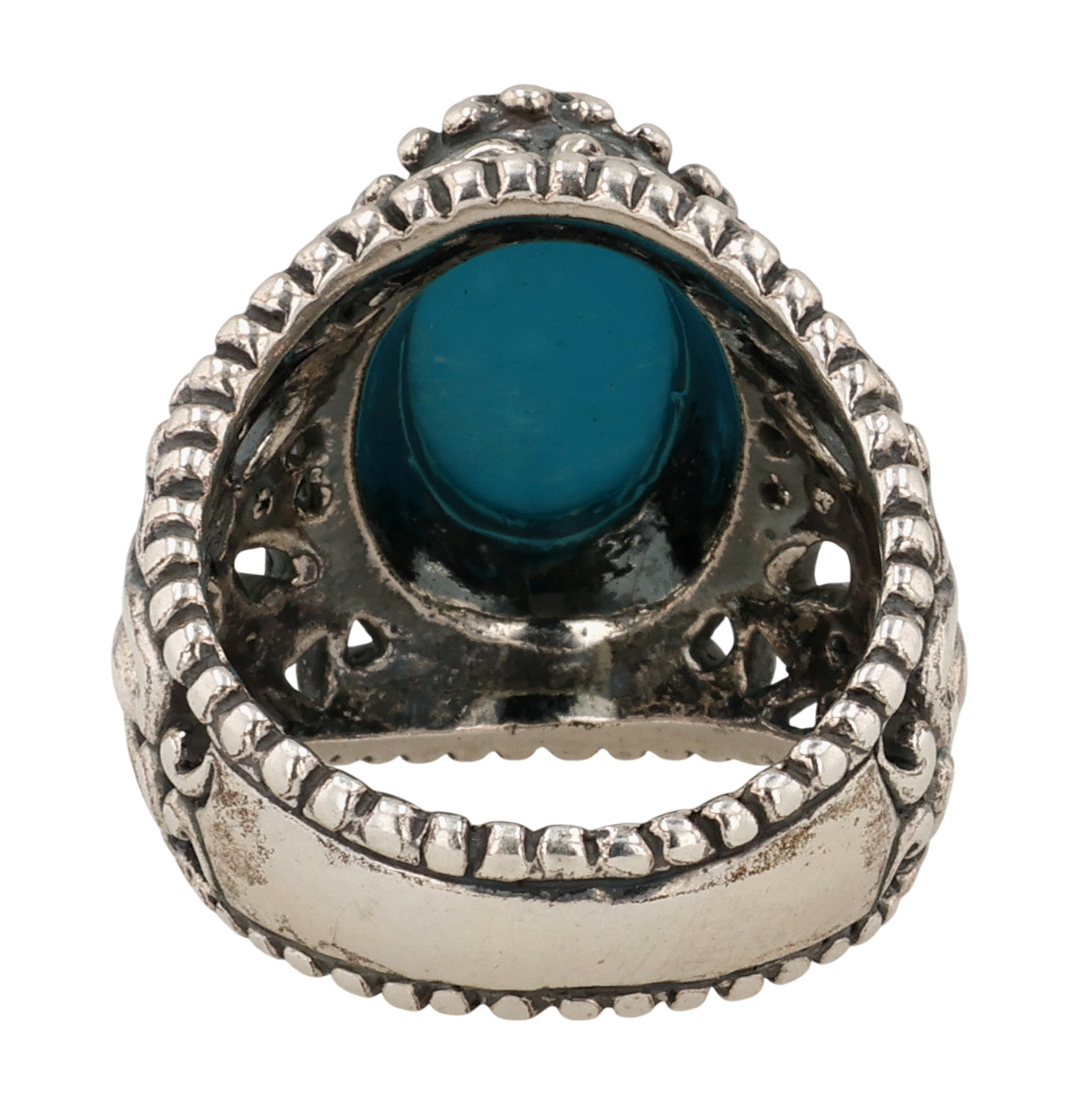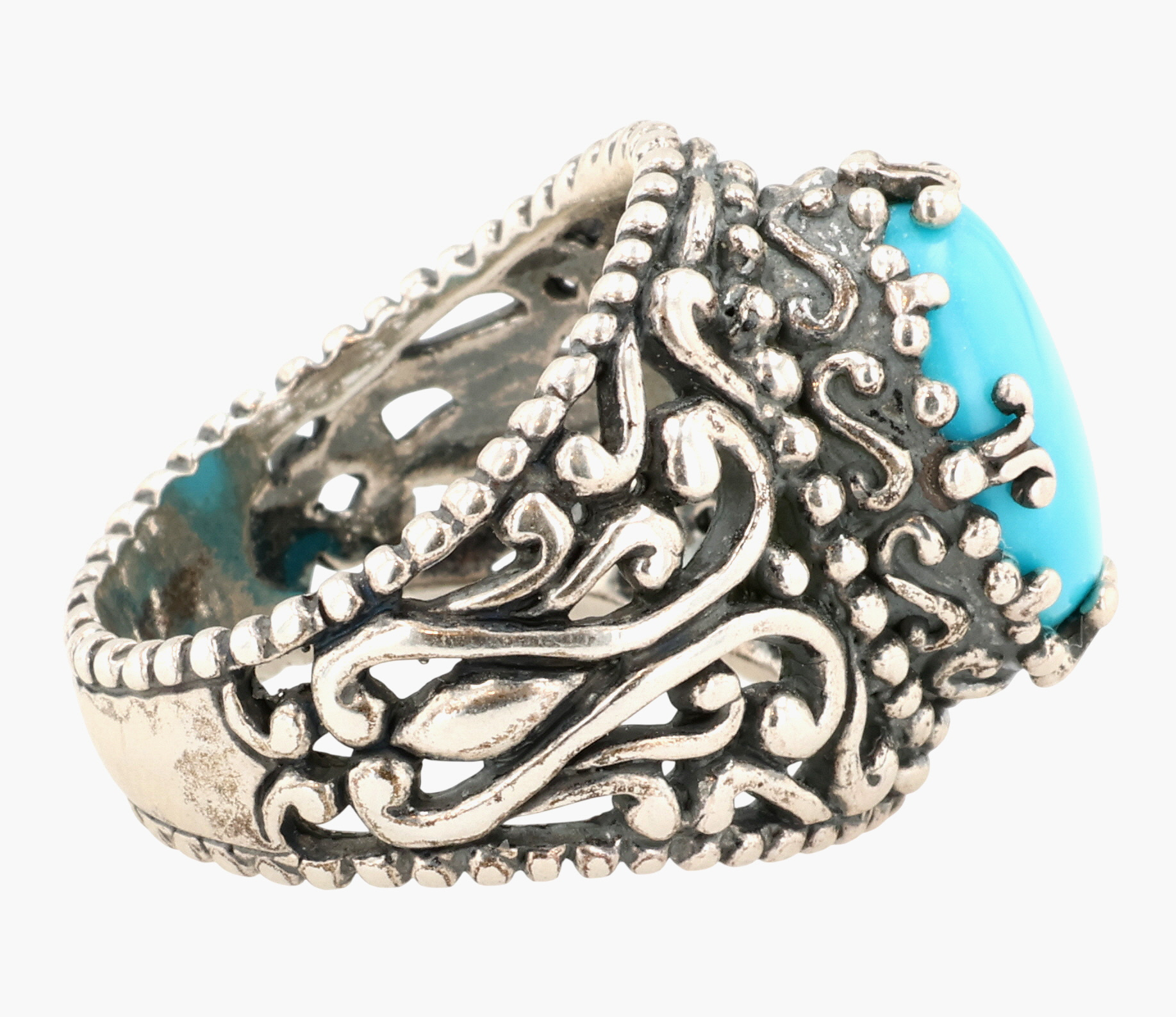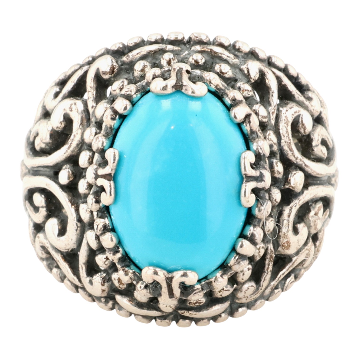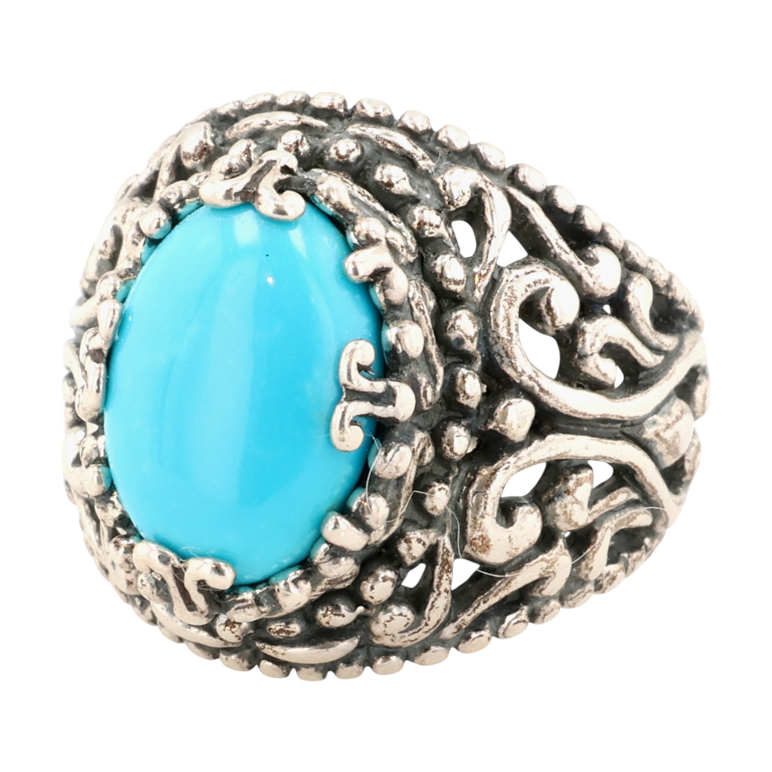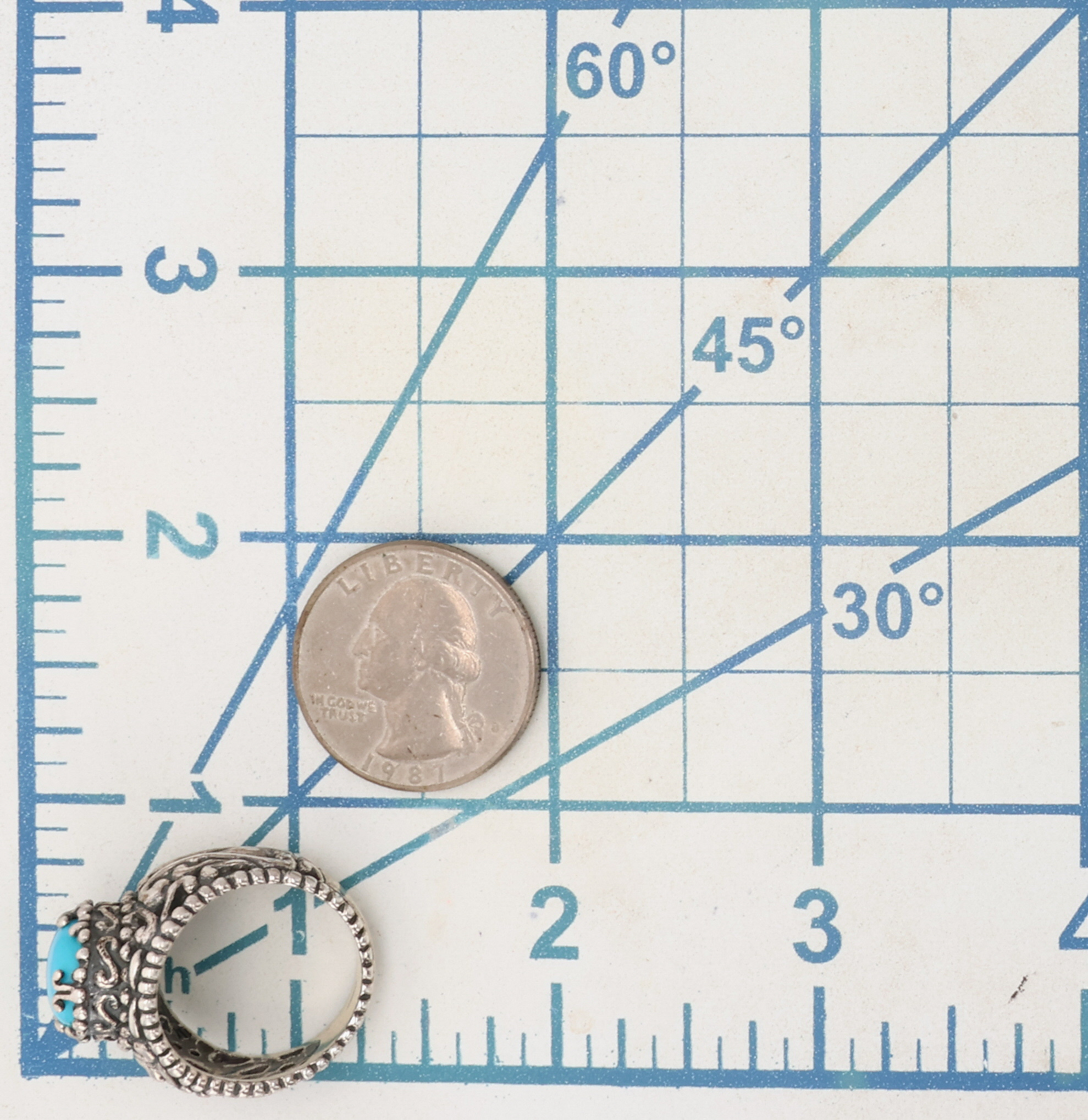 Carolyn Pollack Relios Southwestern Sterling Scrollwork Turquoise Ring Sz 7.25, 13.5g