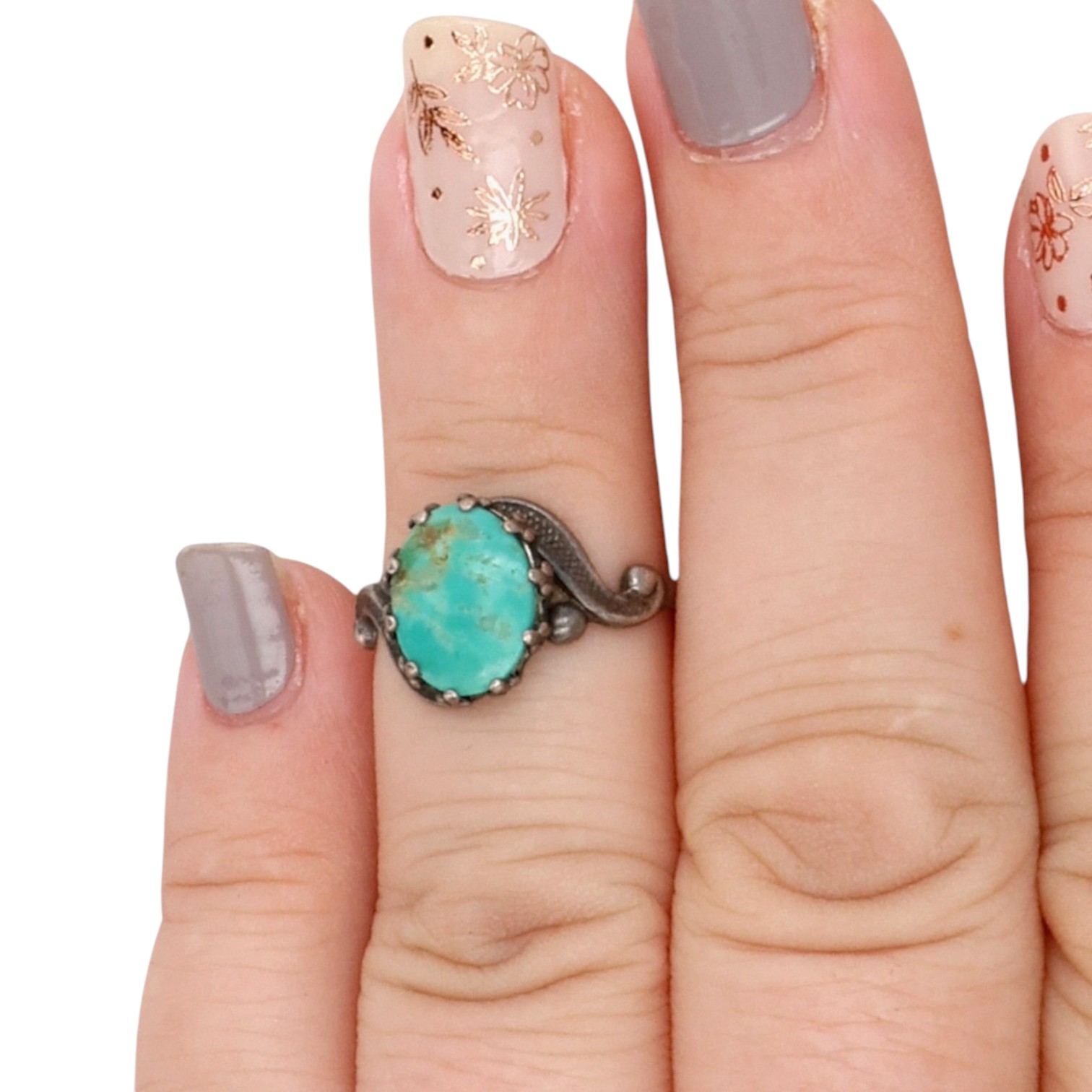 Signed Southwestern Sterling Turquoise Ring Sz 5.5, 3g
