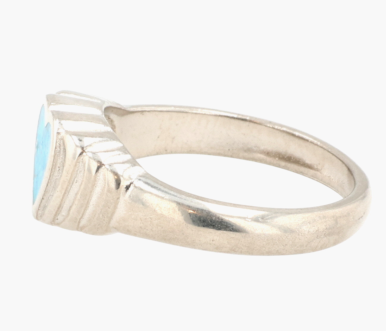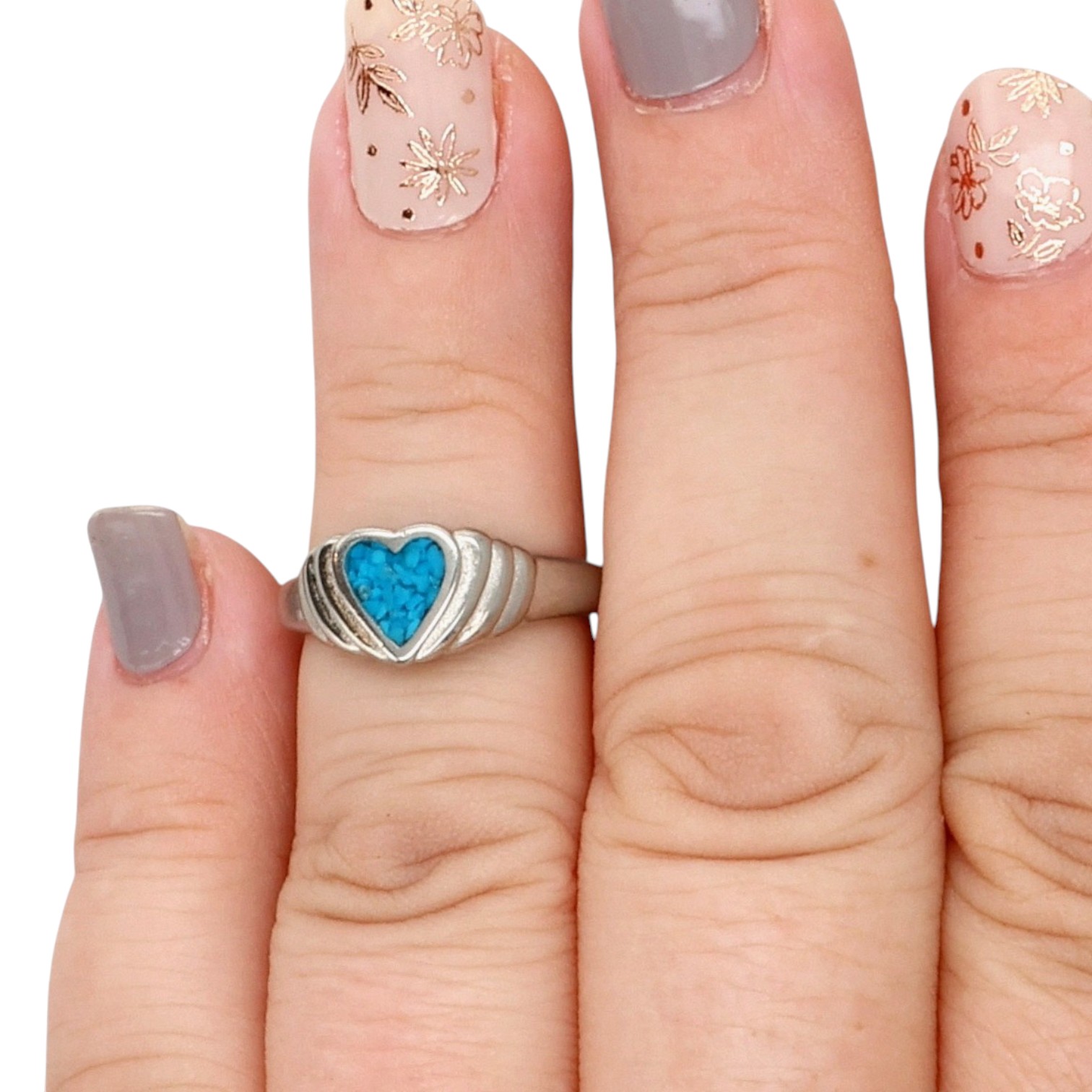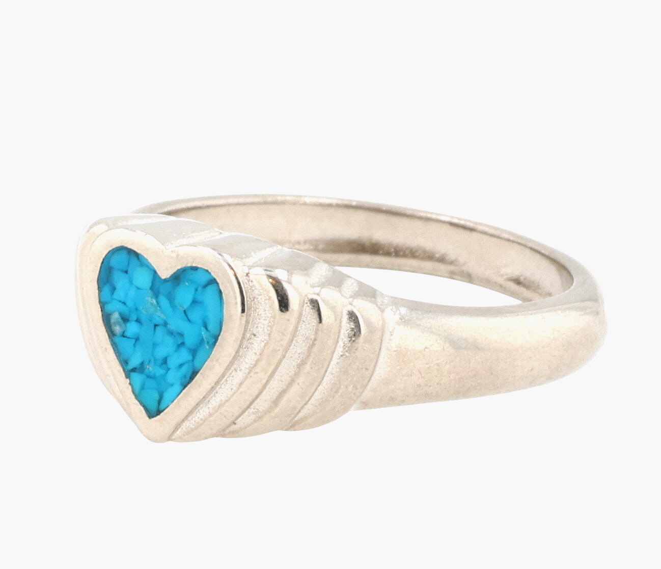 Southwestern Inspired Sterling Crushed Turquoise Heart Ring Sz 5.5, 3.5g