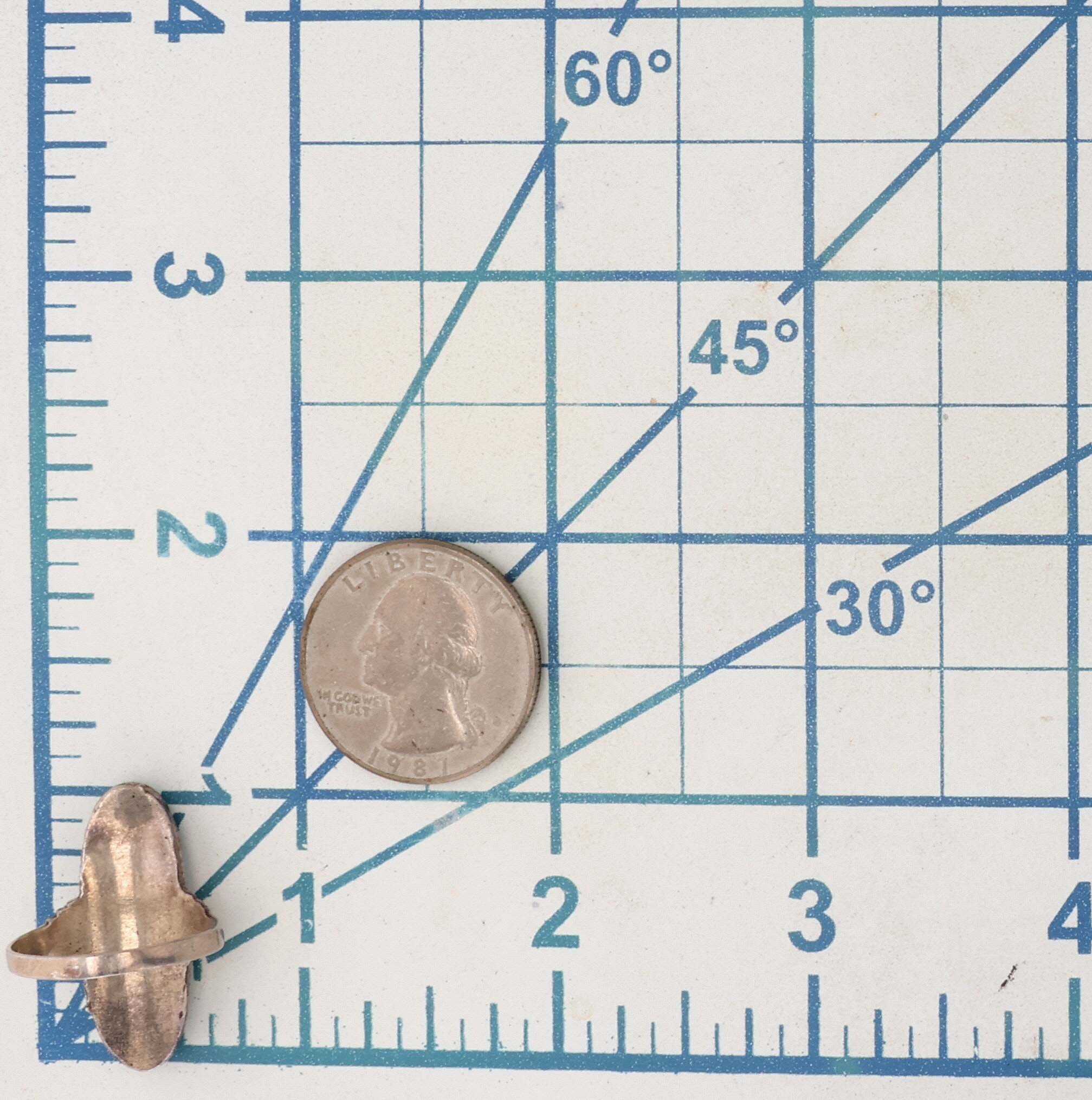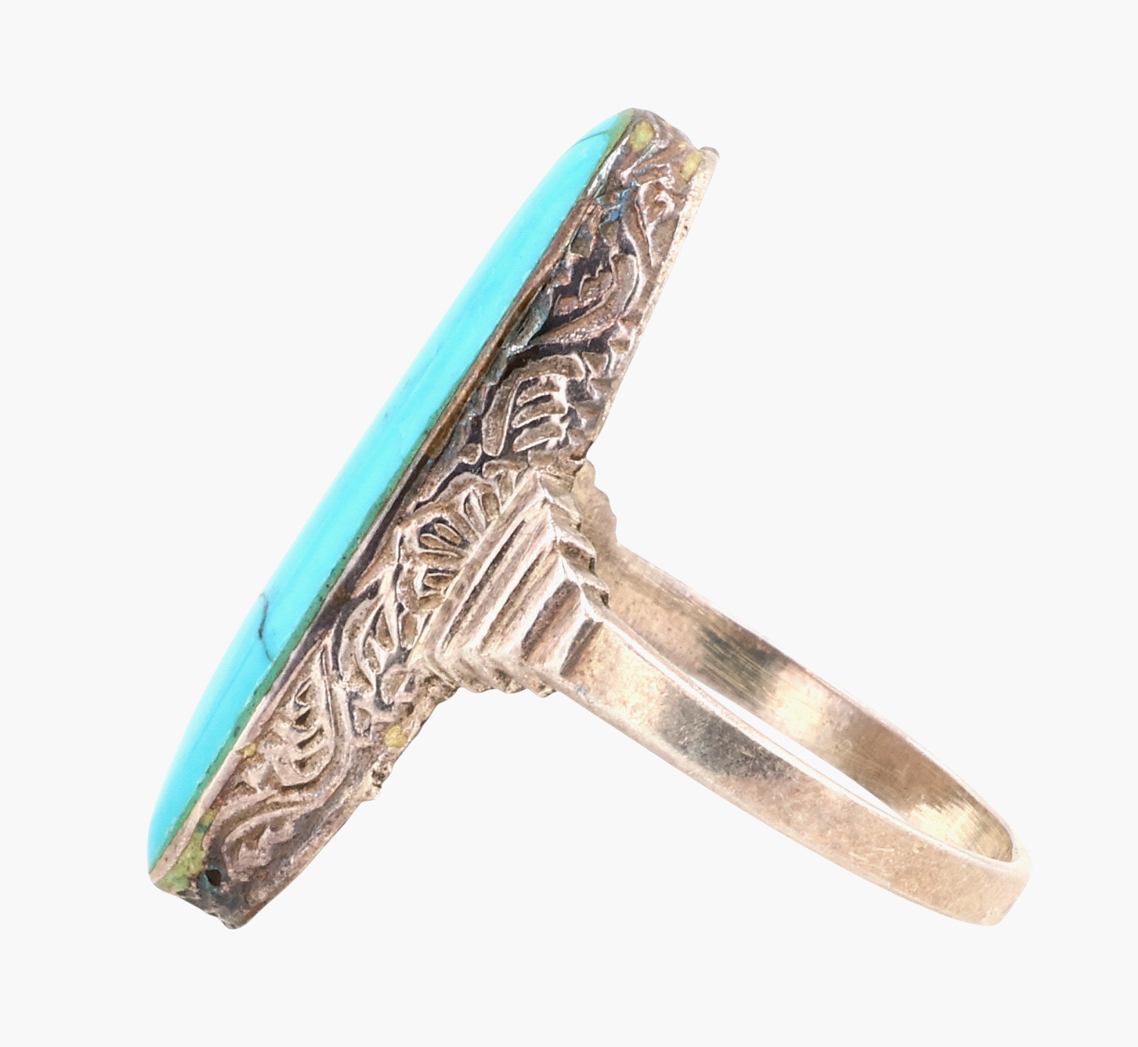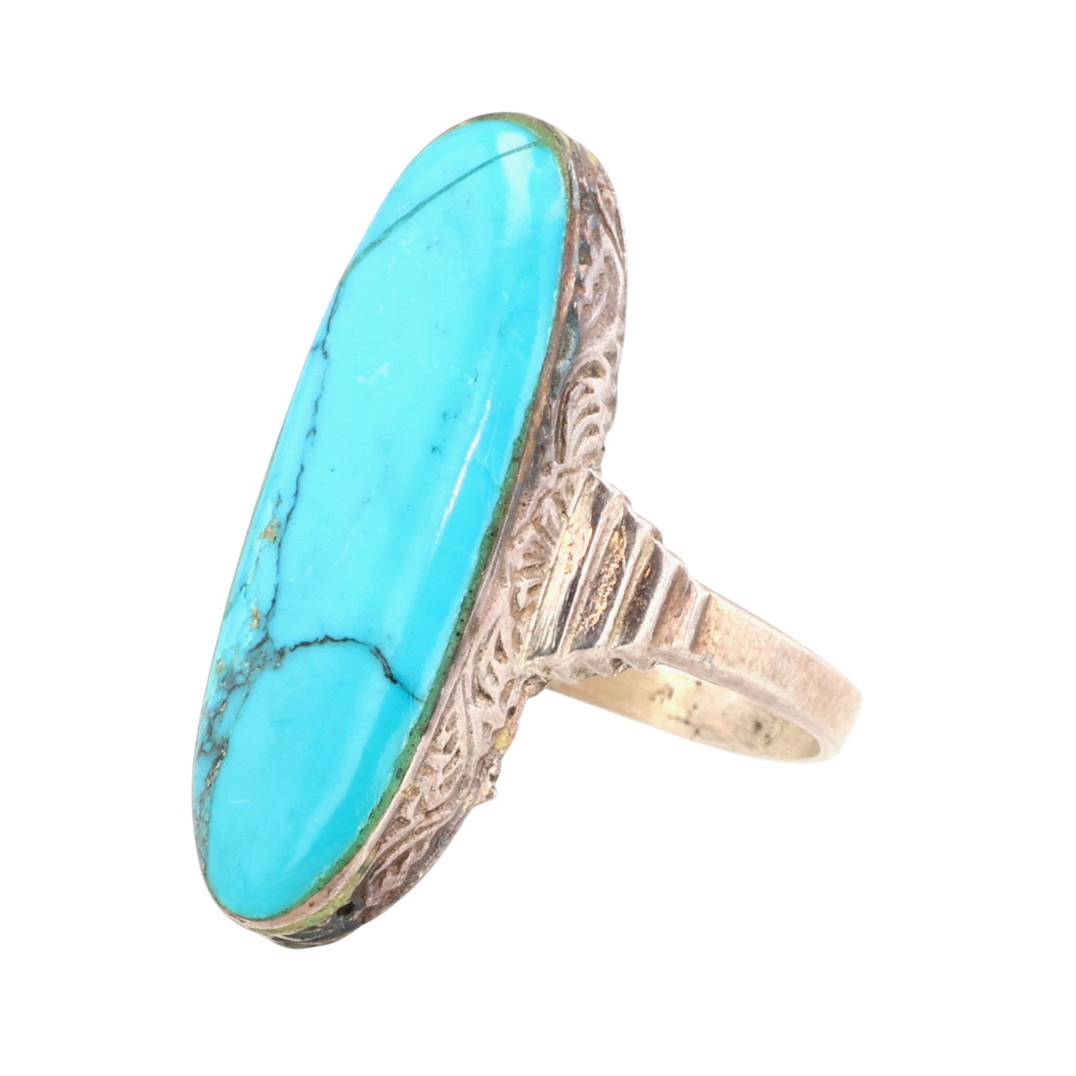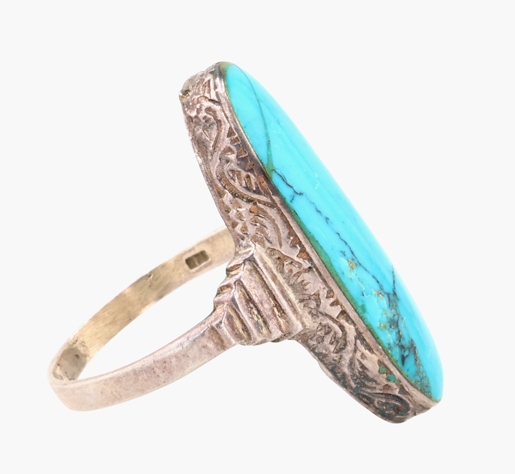 Vintage Sterling Turquoise Long Oval Ring Sz 7.25, 5g