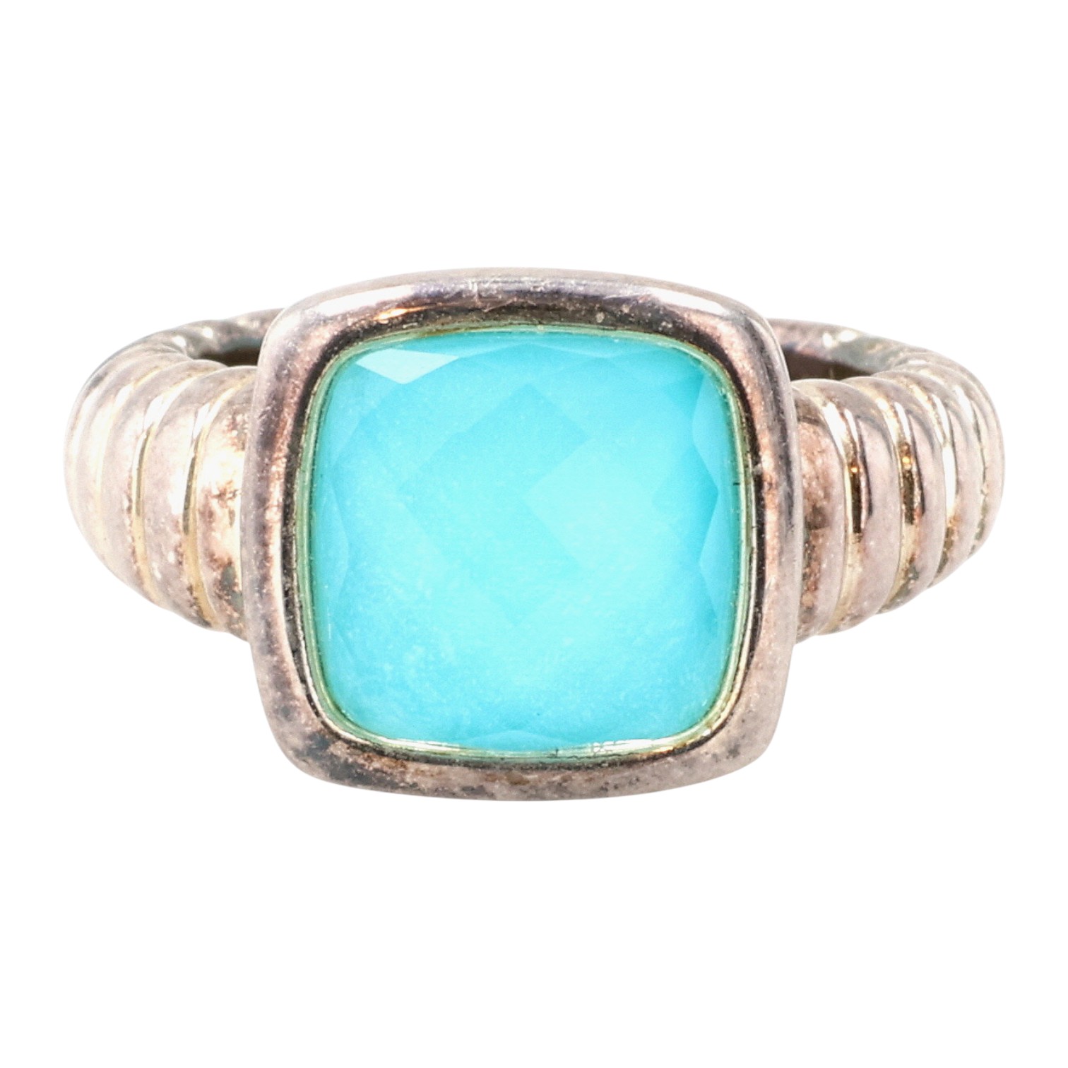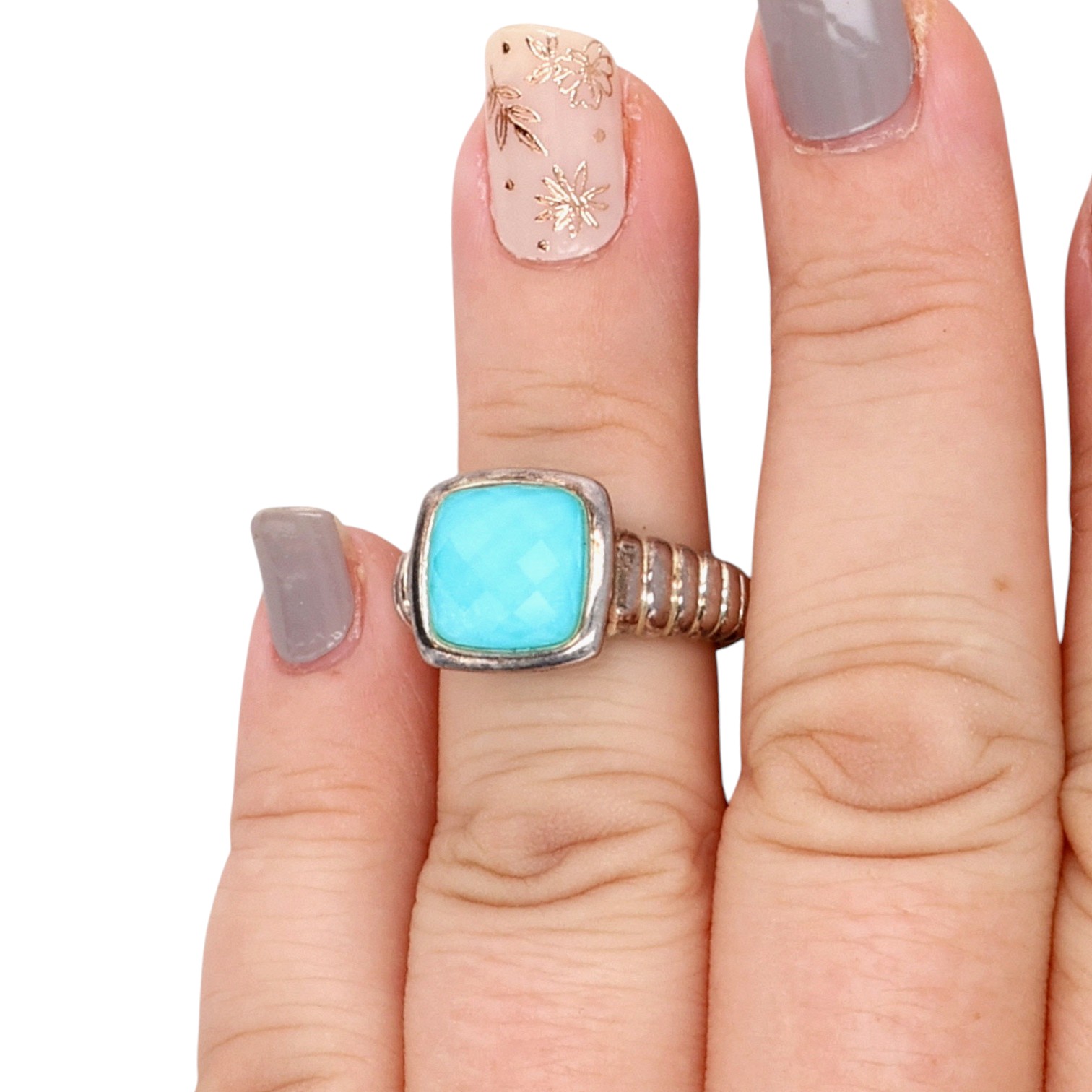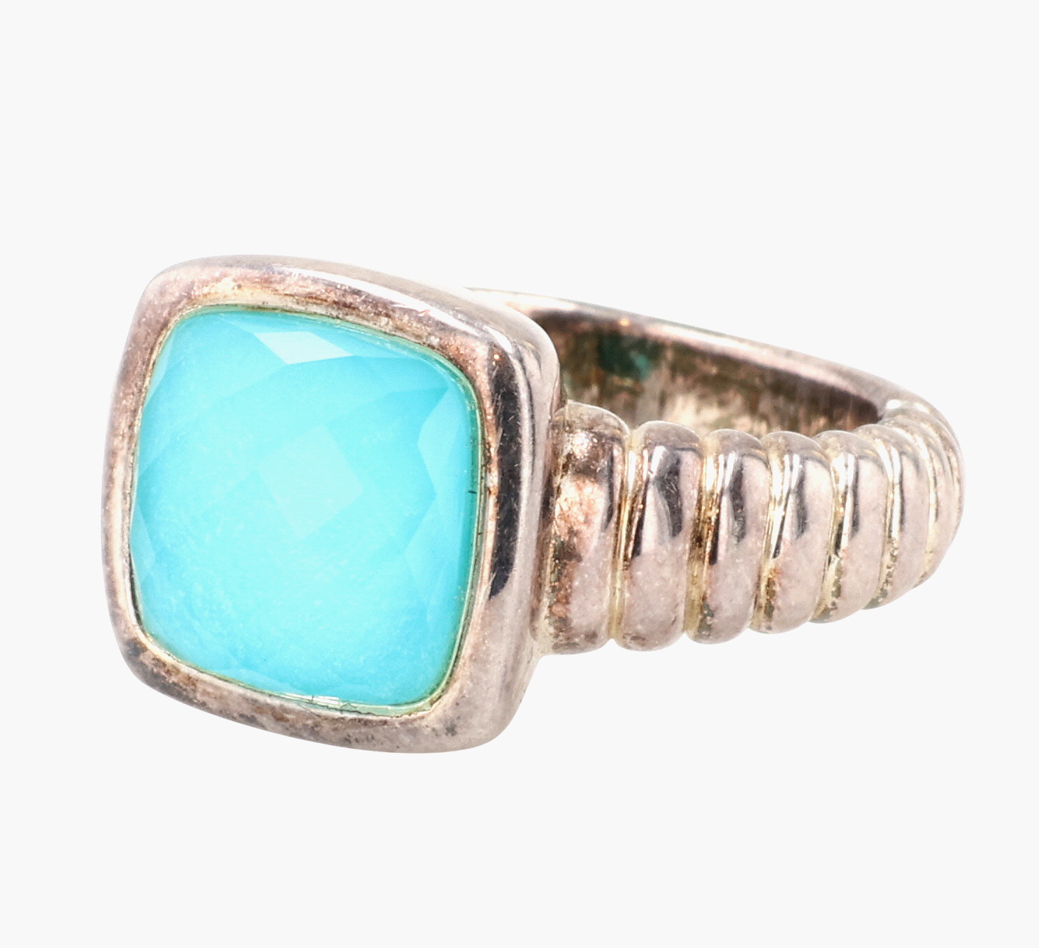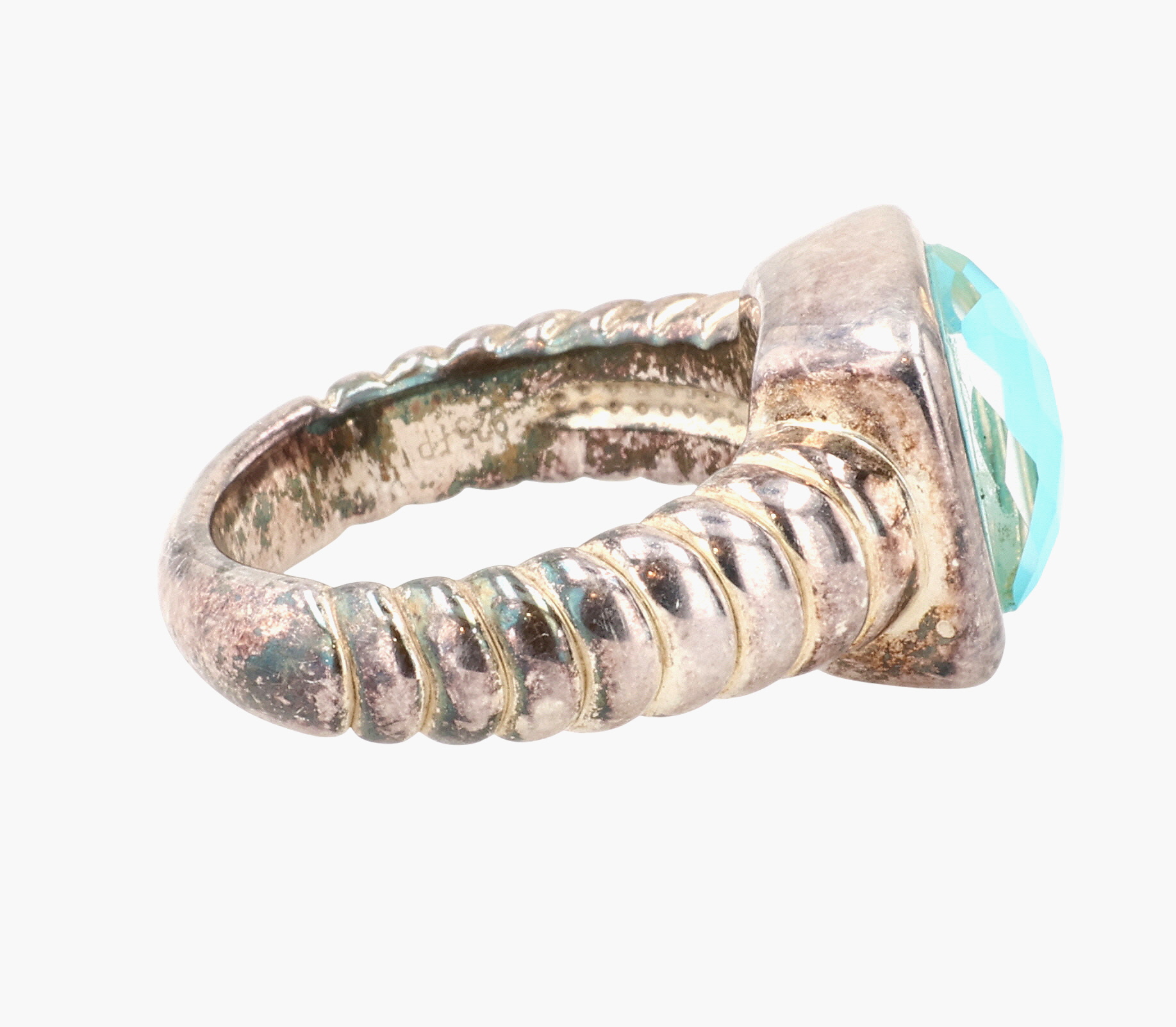 FP China Sterling Light Blue Rhinestone Ring Sz 5.75, 4.5g