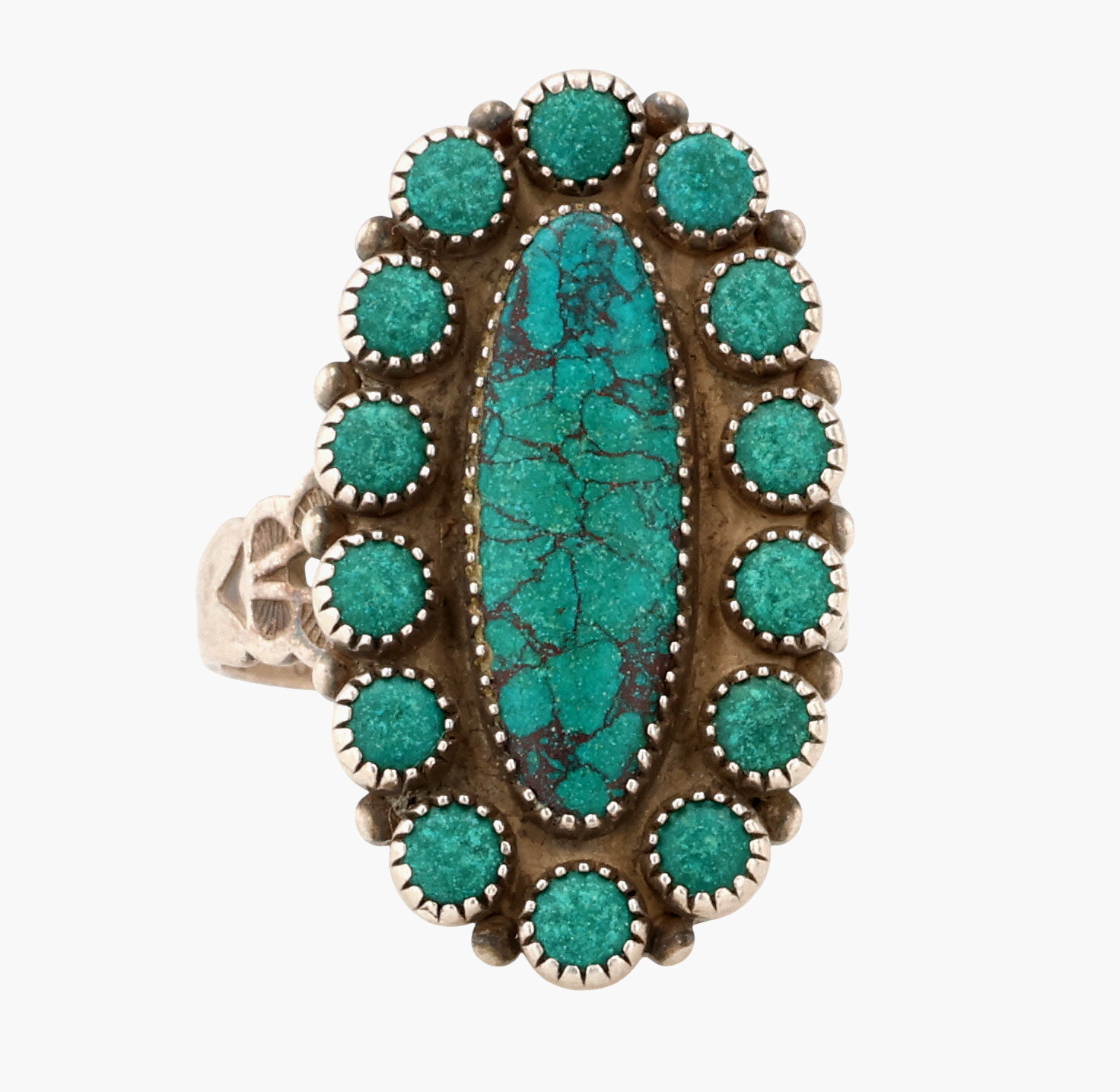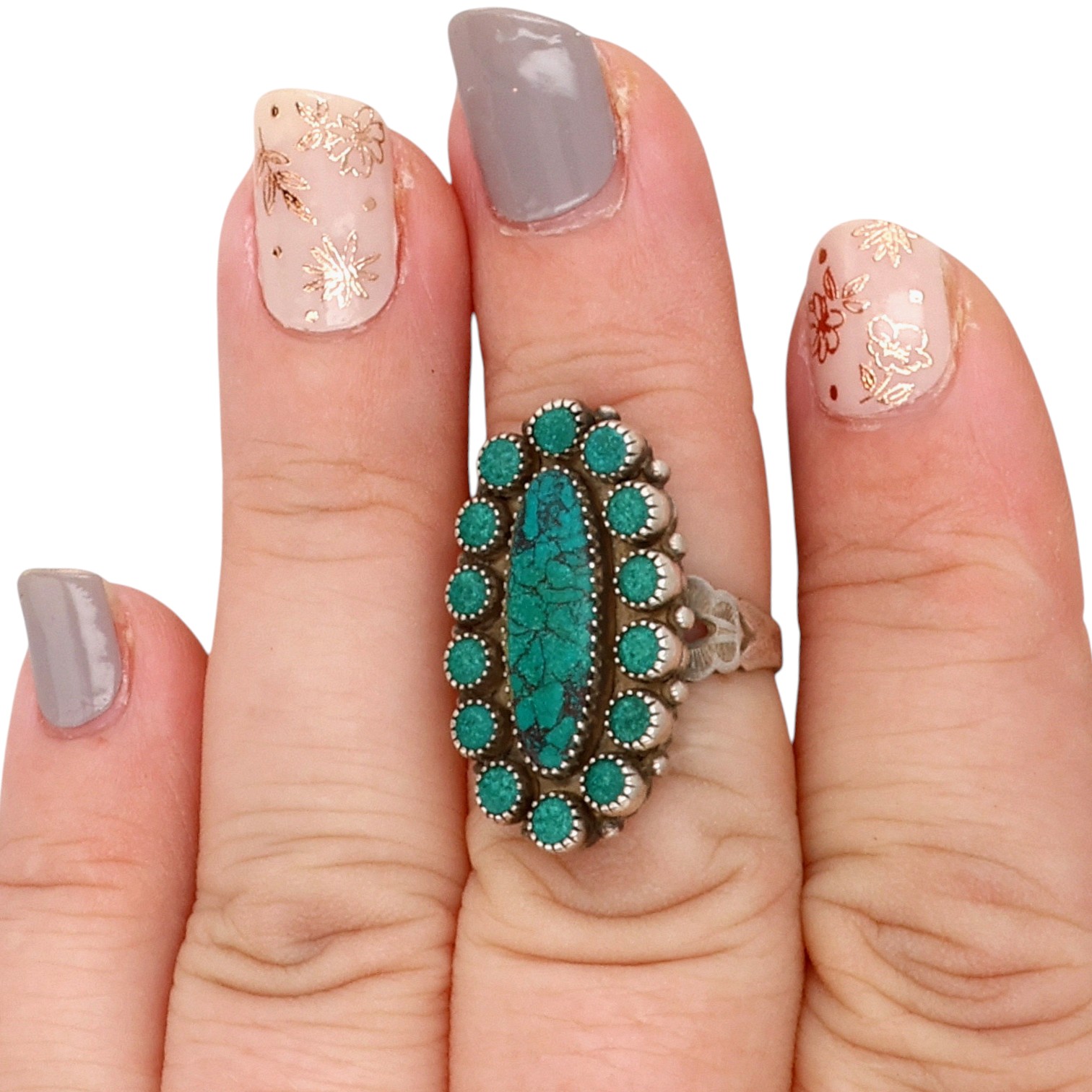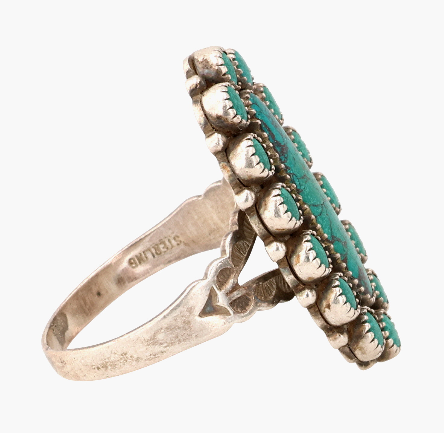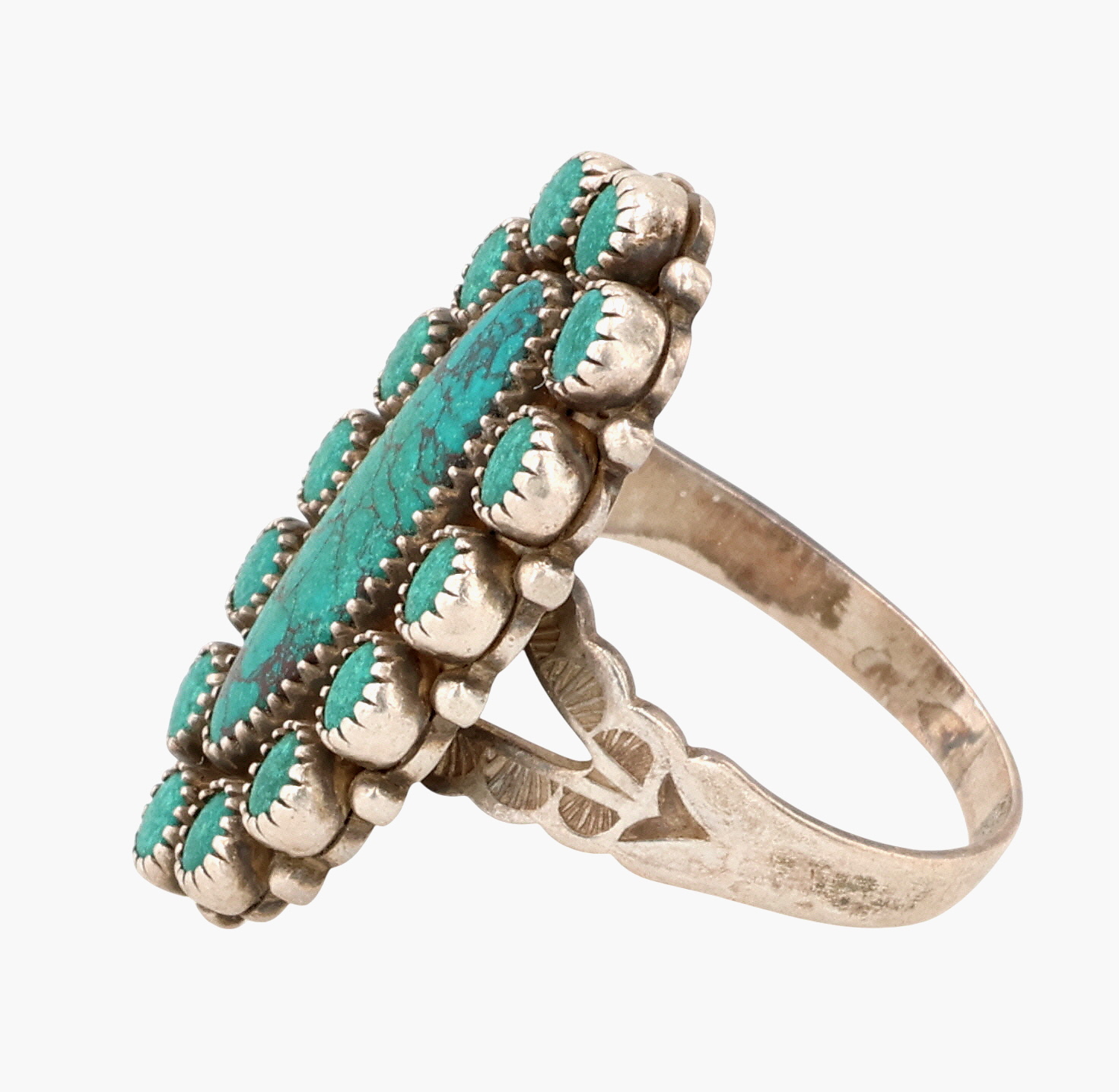 Vintage Native Sterling Turquoise Ring Sz 6.5, 7g