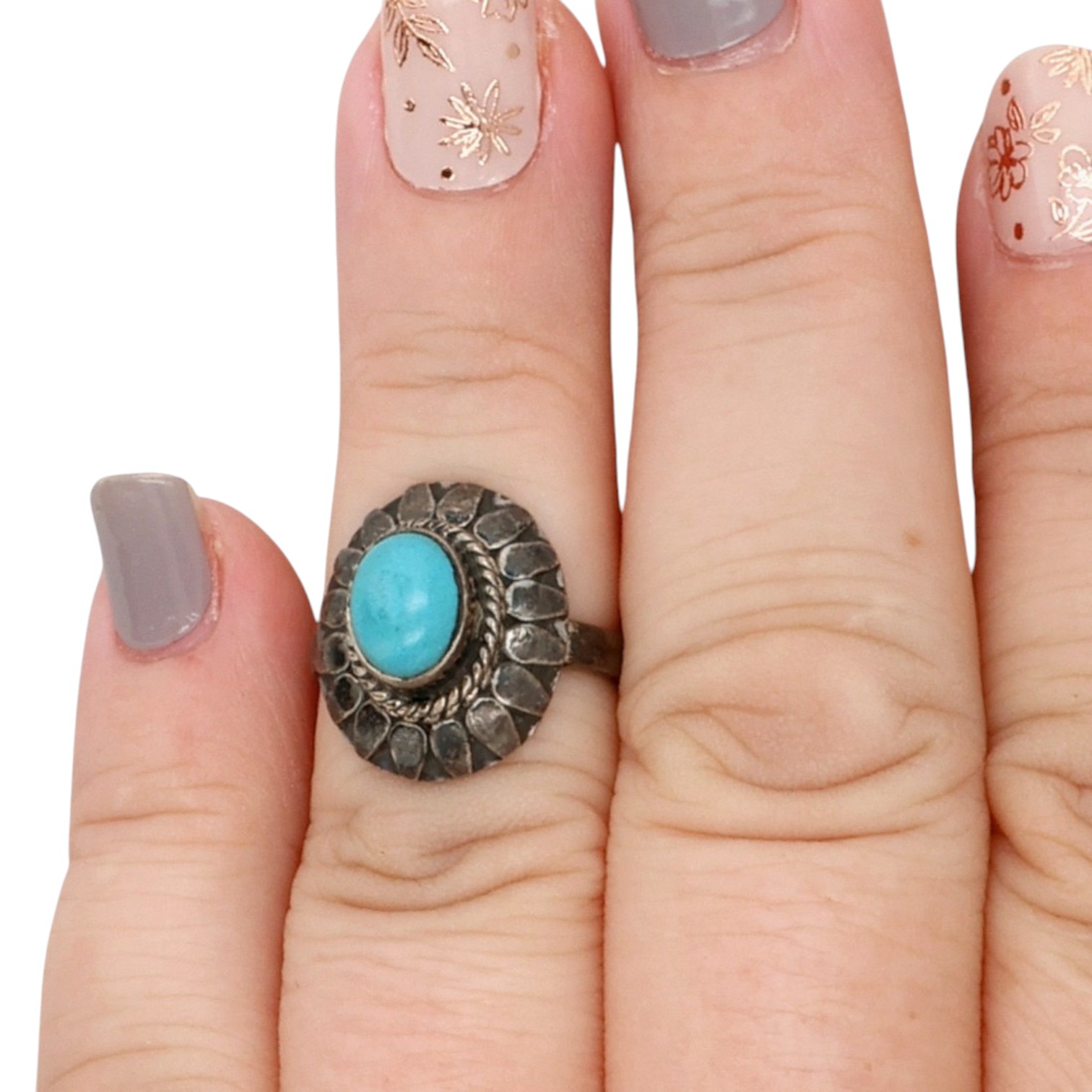 Vintage Southwestern Sterling Turquoise Ring Sz 5.25, 3.5g