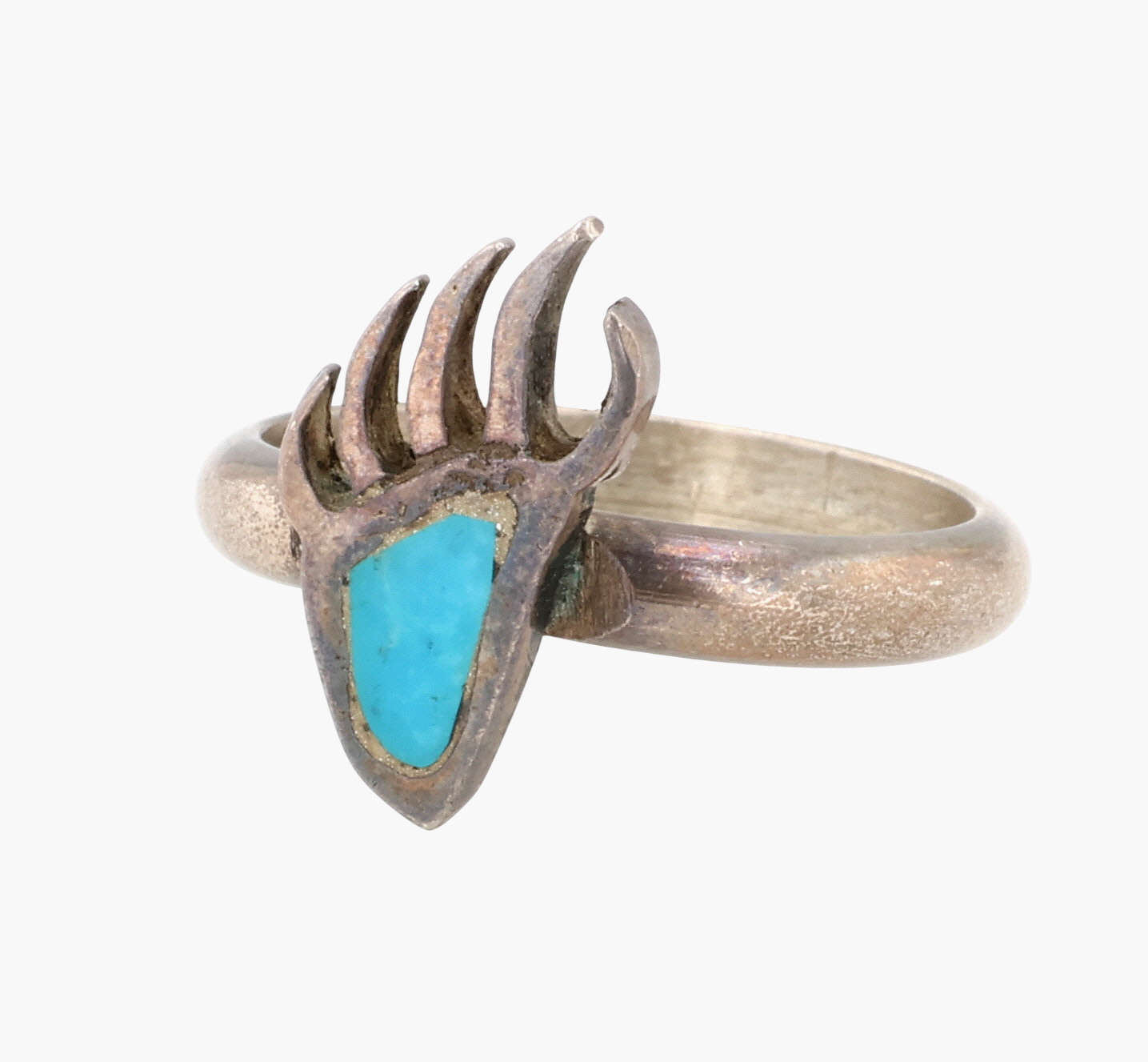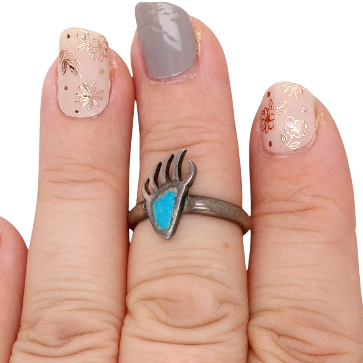 Vintage Navajo Sterling Turquoise Bear Paw Ring Sz 6.5, 3g