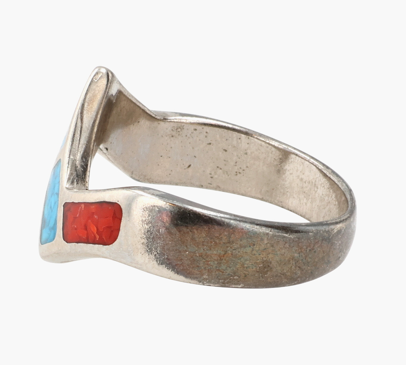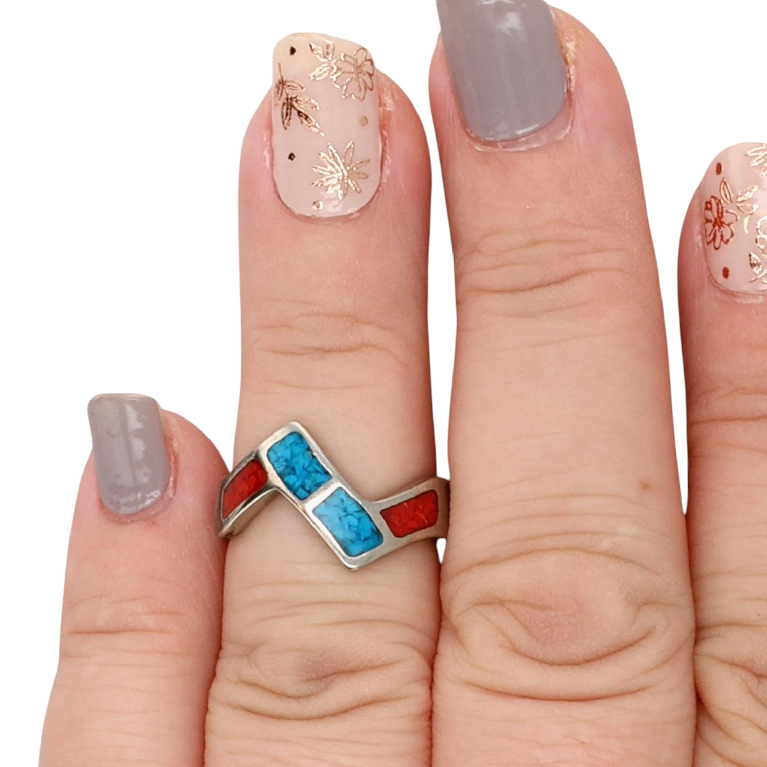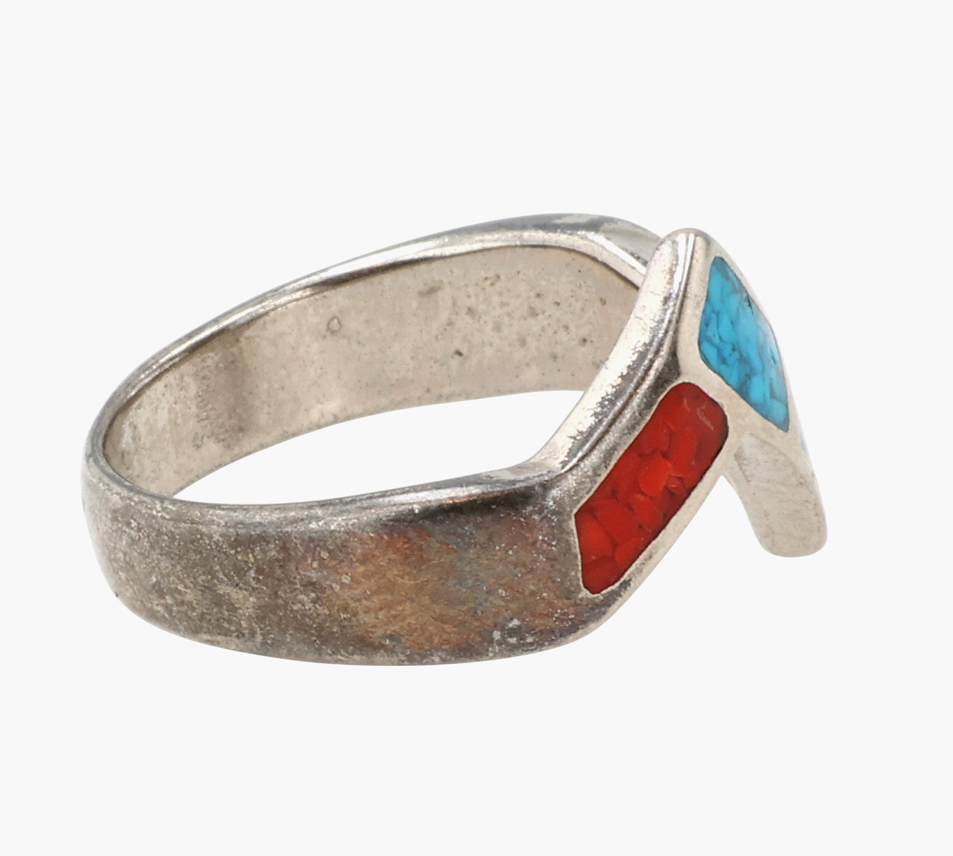 Vintage Navajo Stelring Crushed Multi-Stone Inlay Ring Sz 5.5, 3g