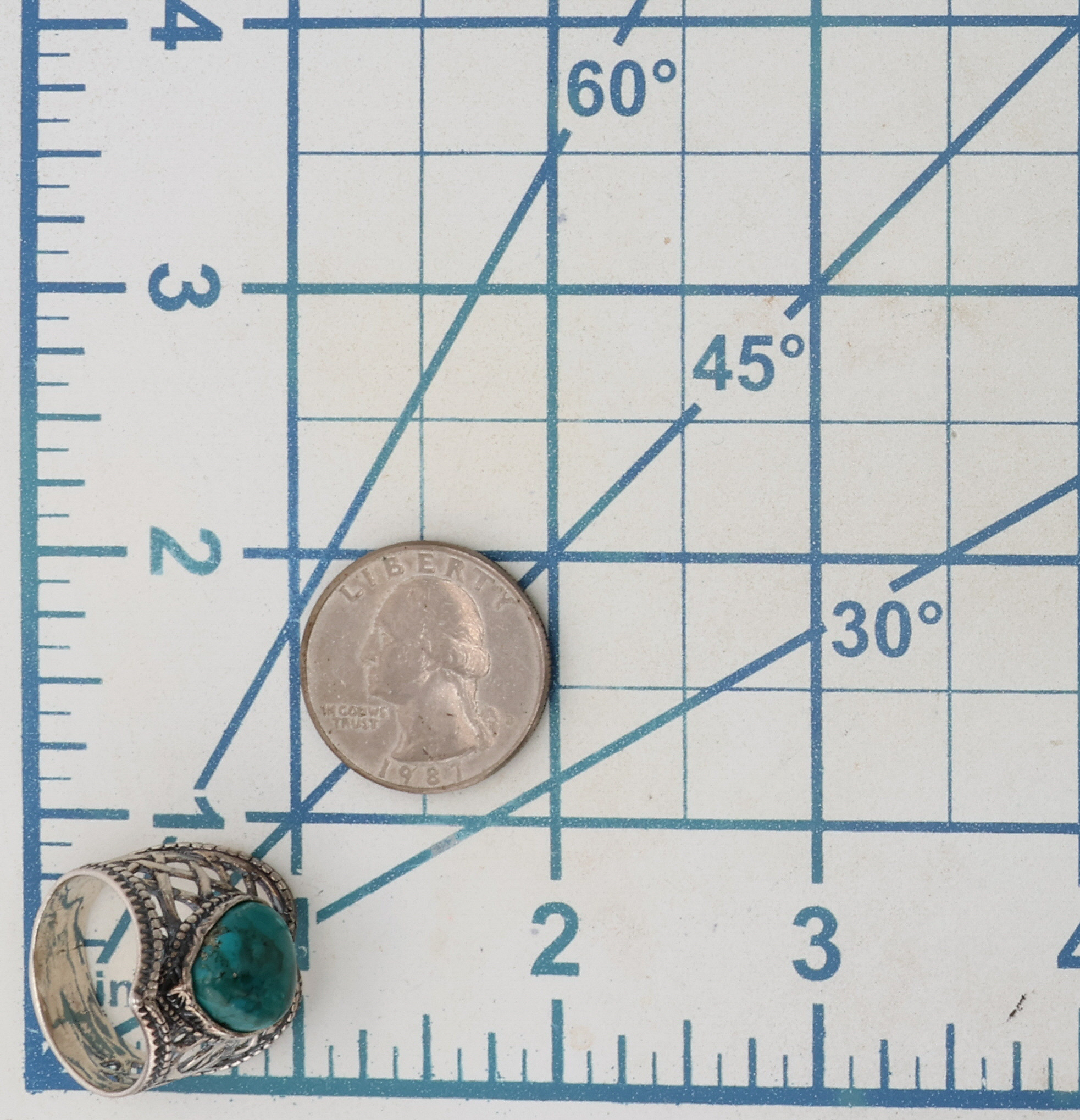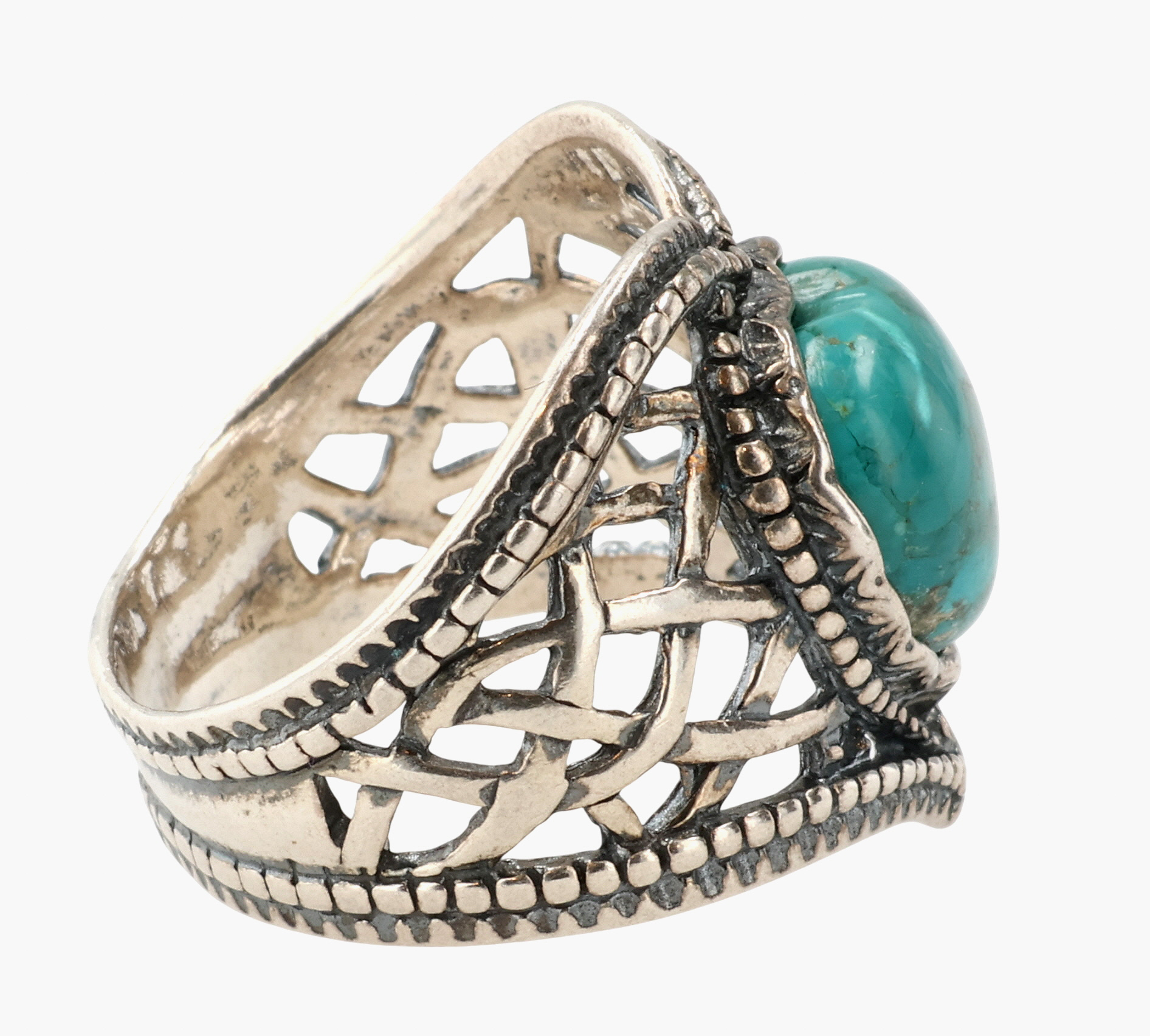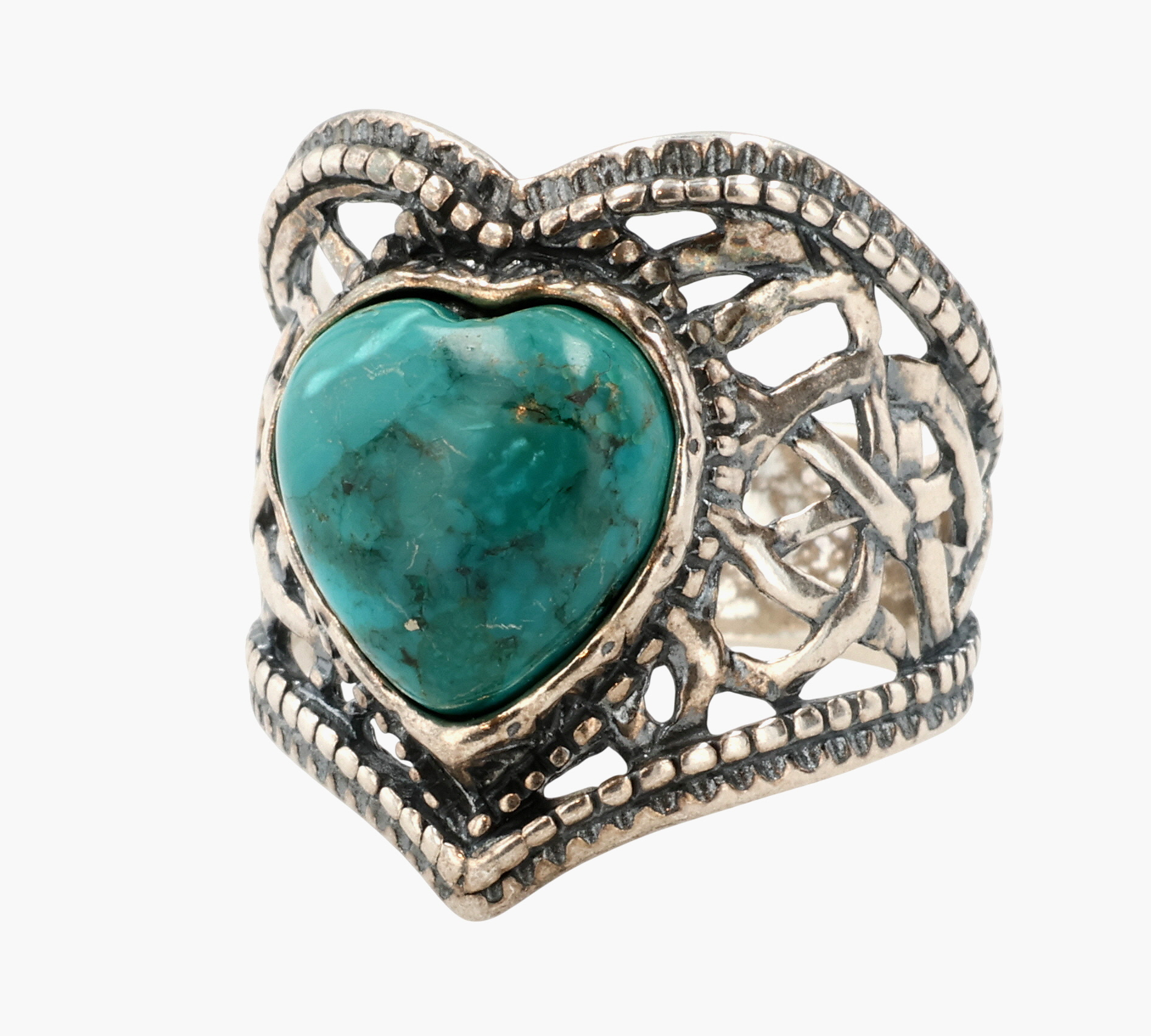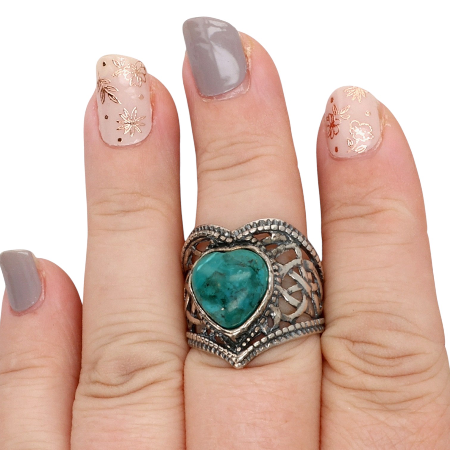 Signed Vintage Israel Woven Sterling Turquoise Heart Ring Sz 9.5, 8g
