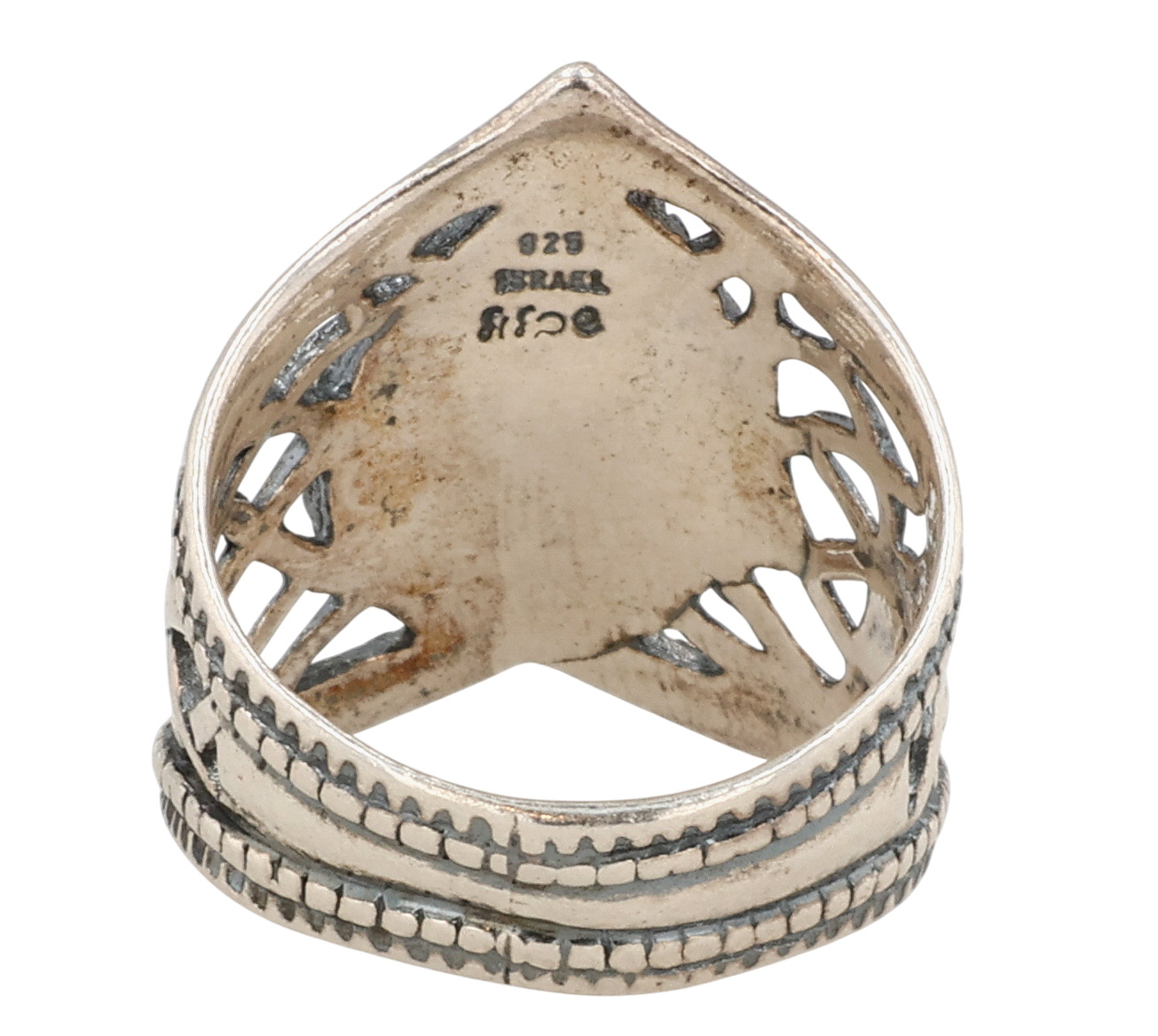 Signed Vintage Israel Woven Sterling Turquoise Heart Ring Sz 9.5