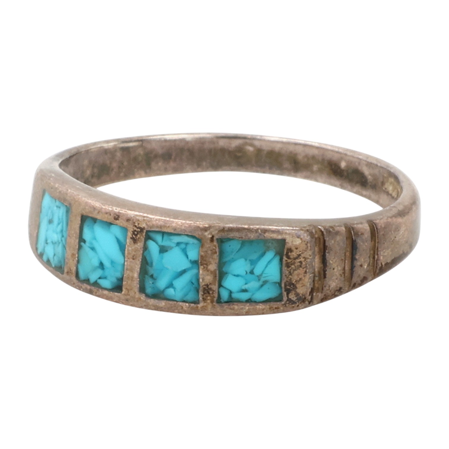 Southwestern Sterling Crushed Turquoise Ring Sz 6.5