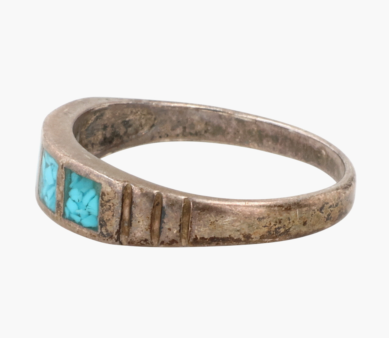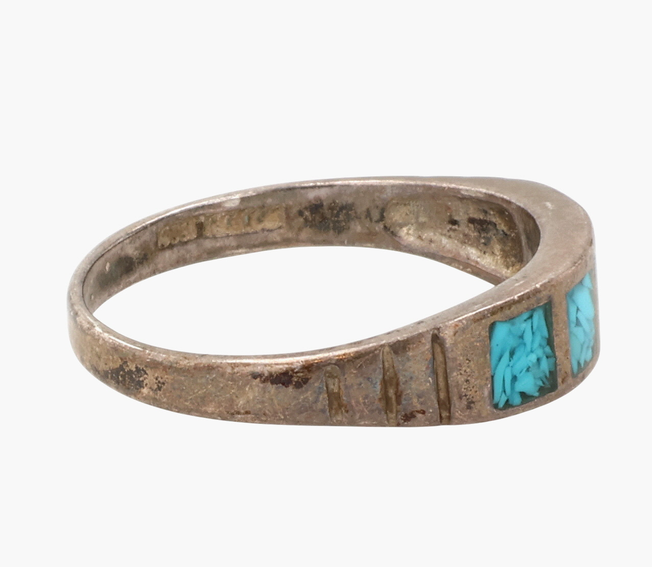 Southwestern Sterling Crushed Turquoise Ring Sz 6.5, 2g