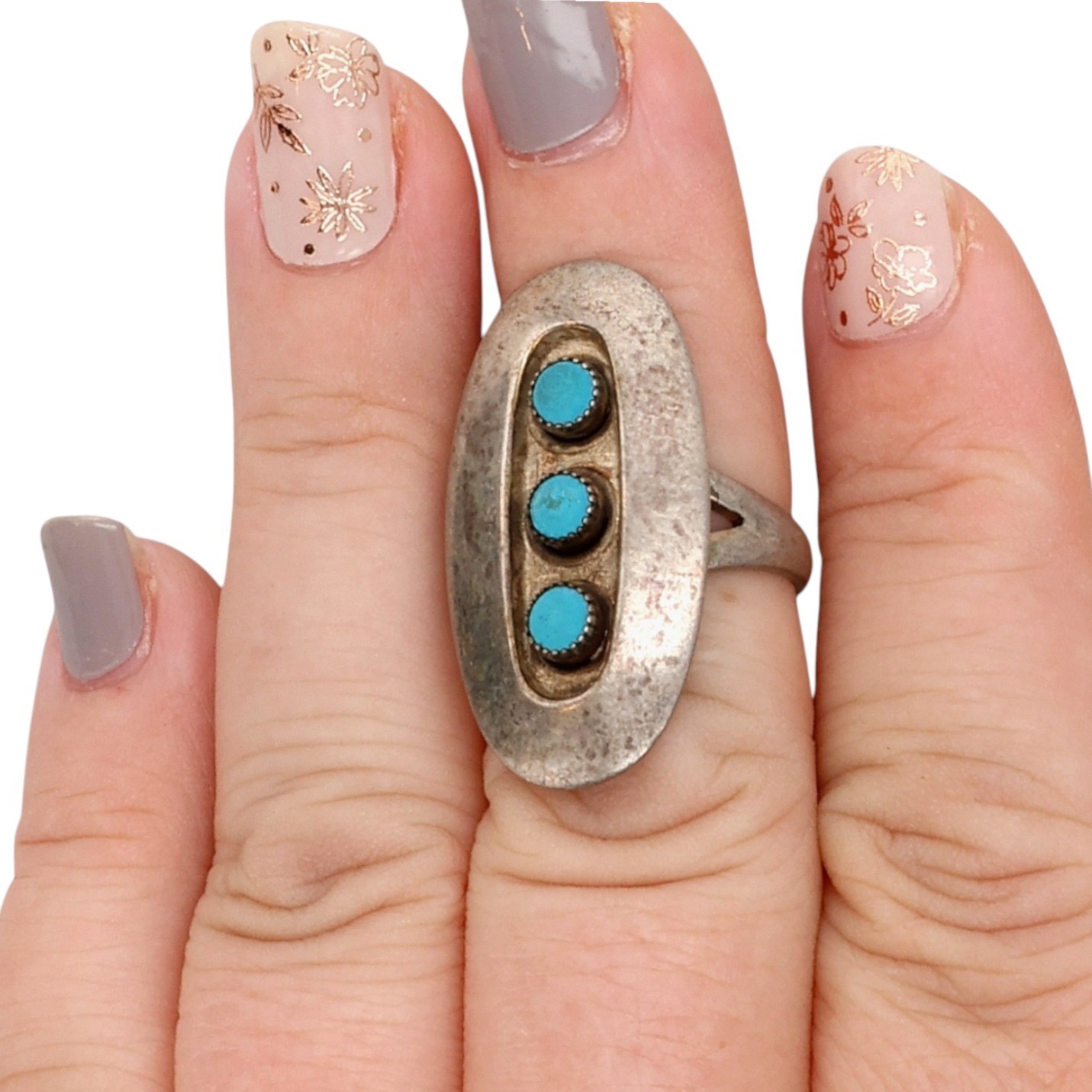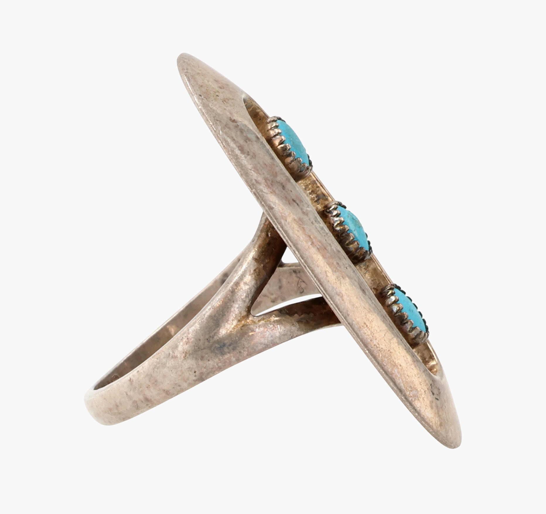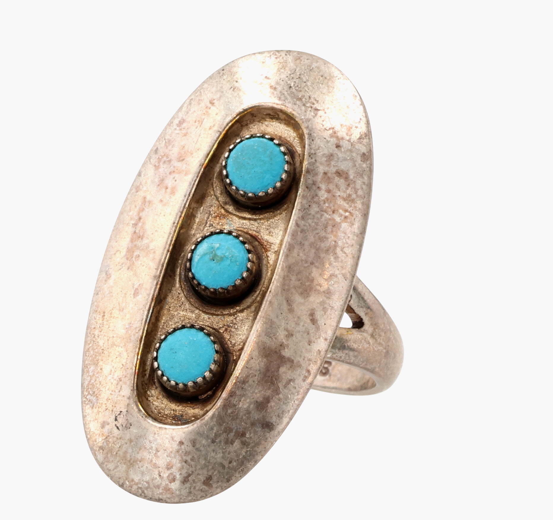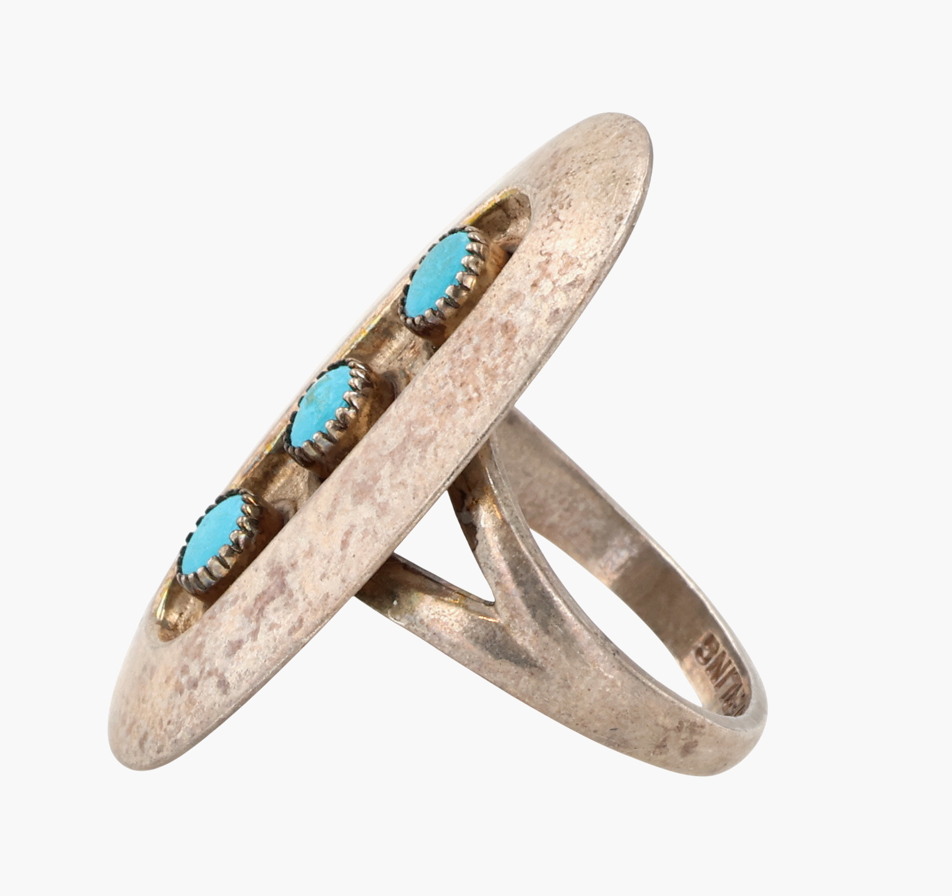 Southwestern Sterling Turquoise Shadow Box Ring Sz 6.75, 5g