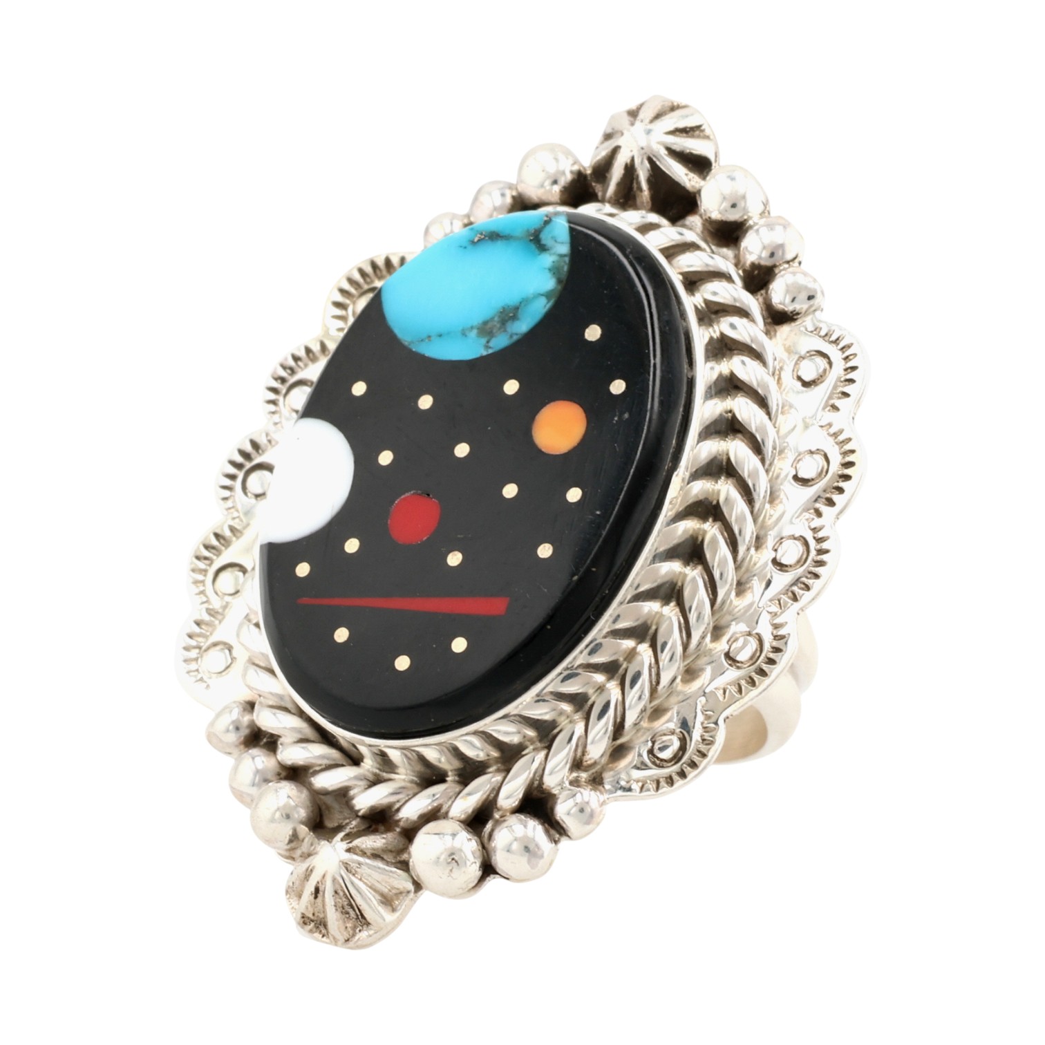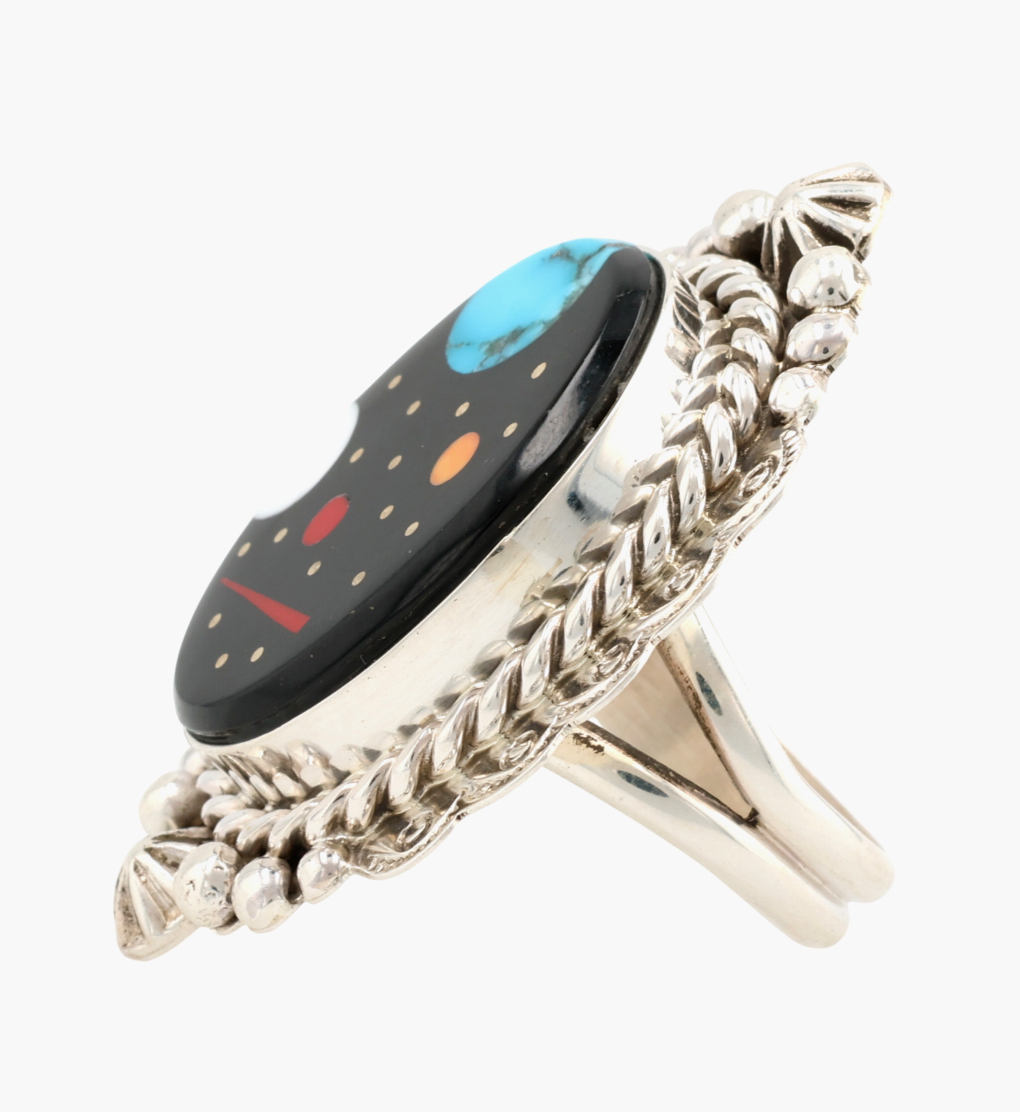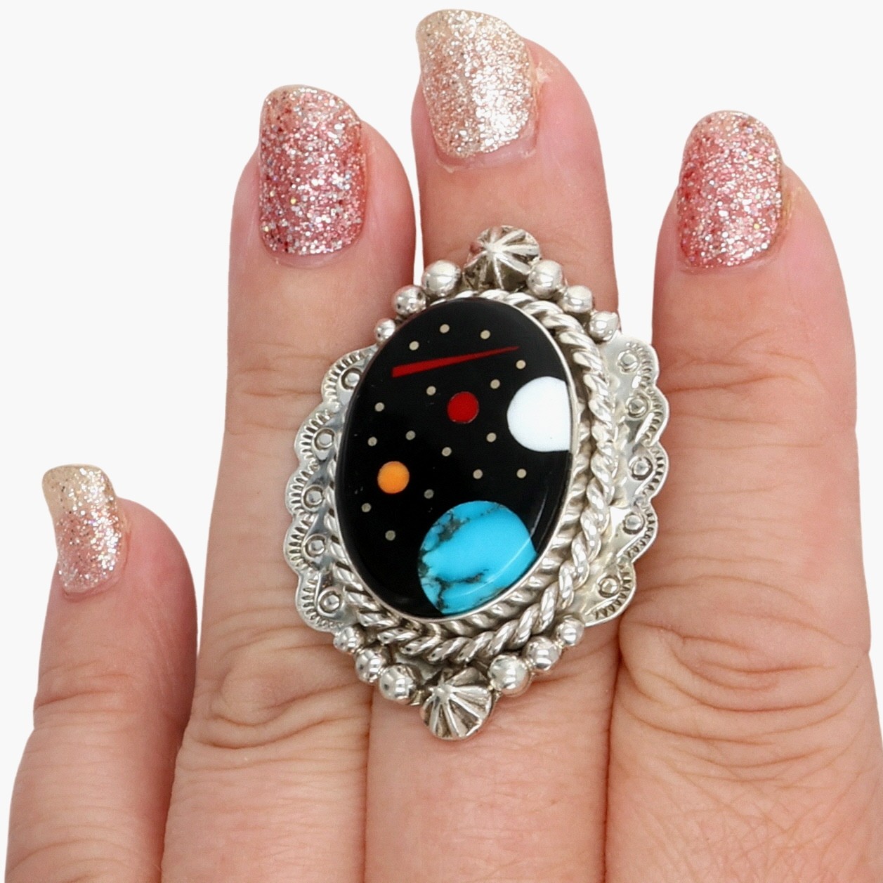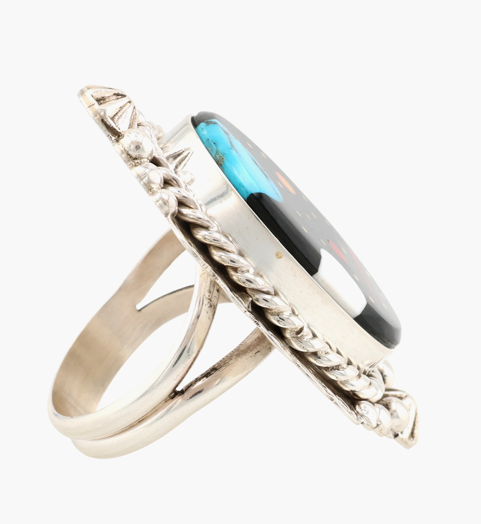 Calvin Desson Navajo Sterling Multi-Stone Night Sky Inlay Ring Sz 7.5, 17.5g