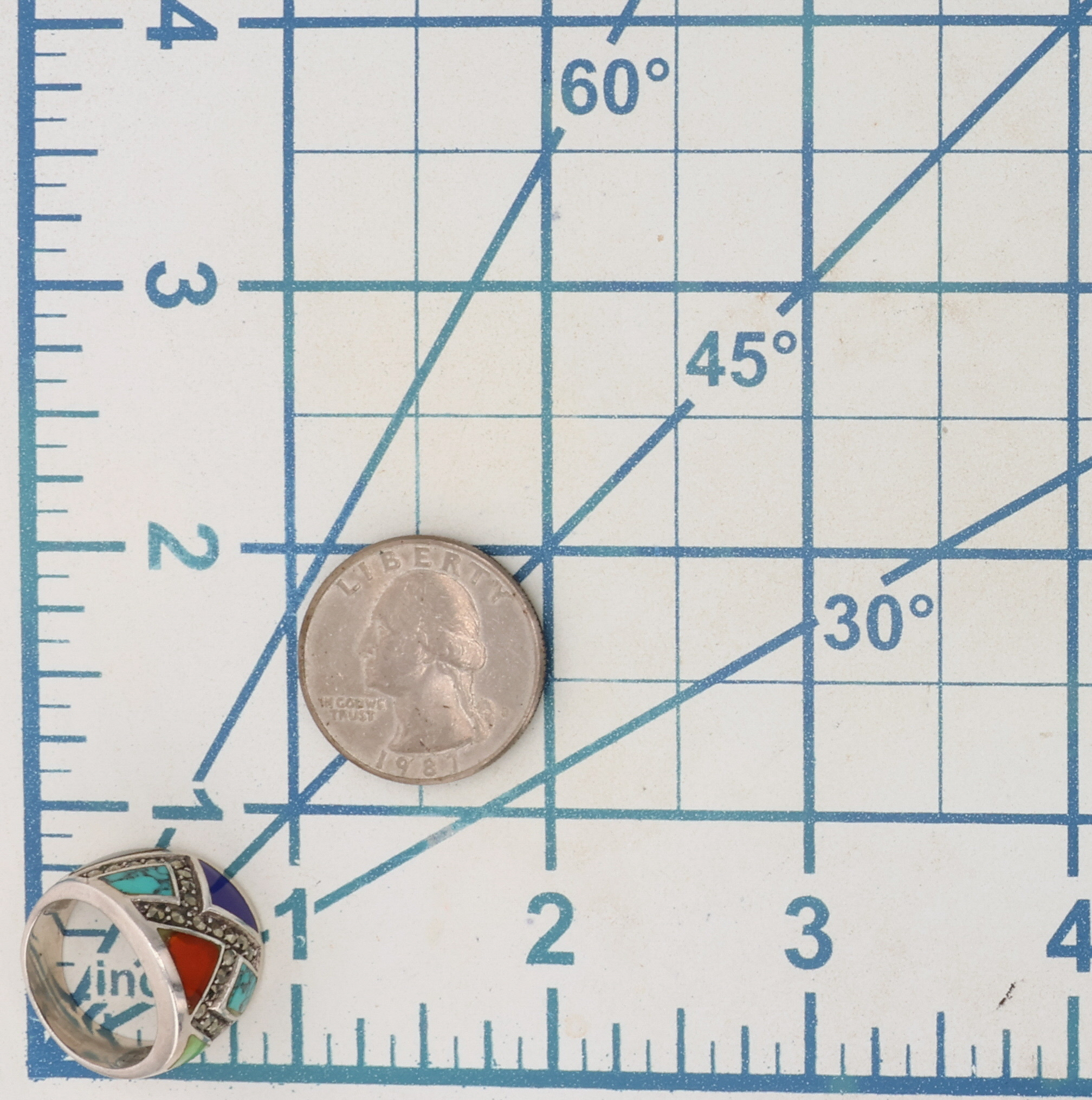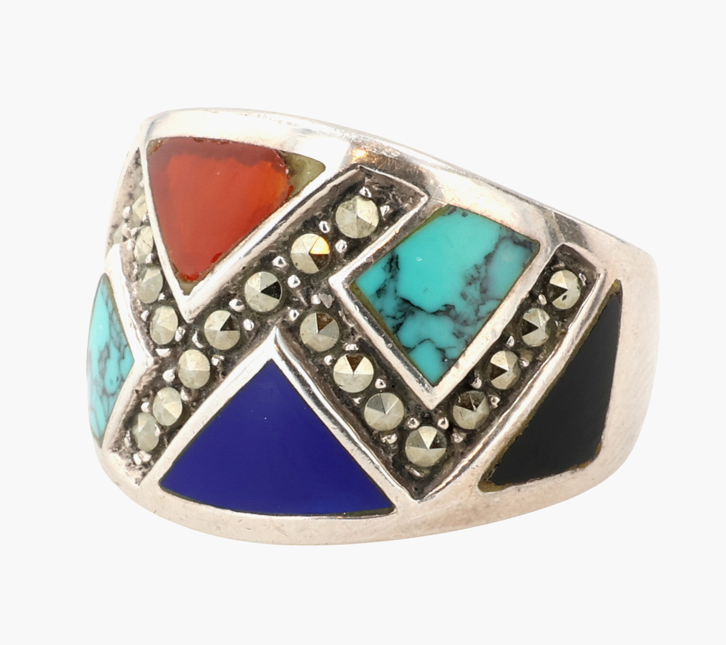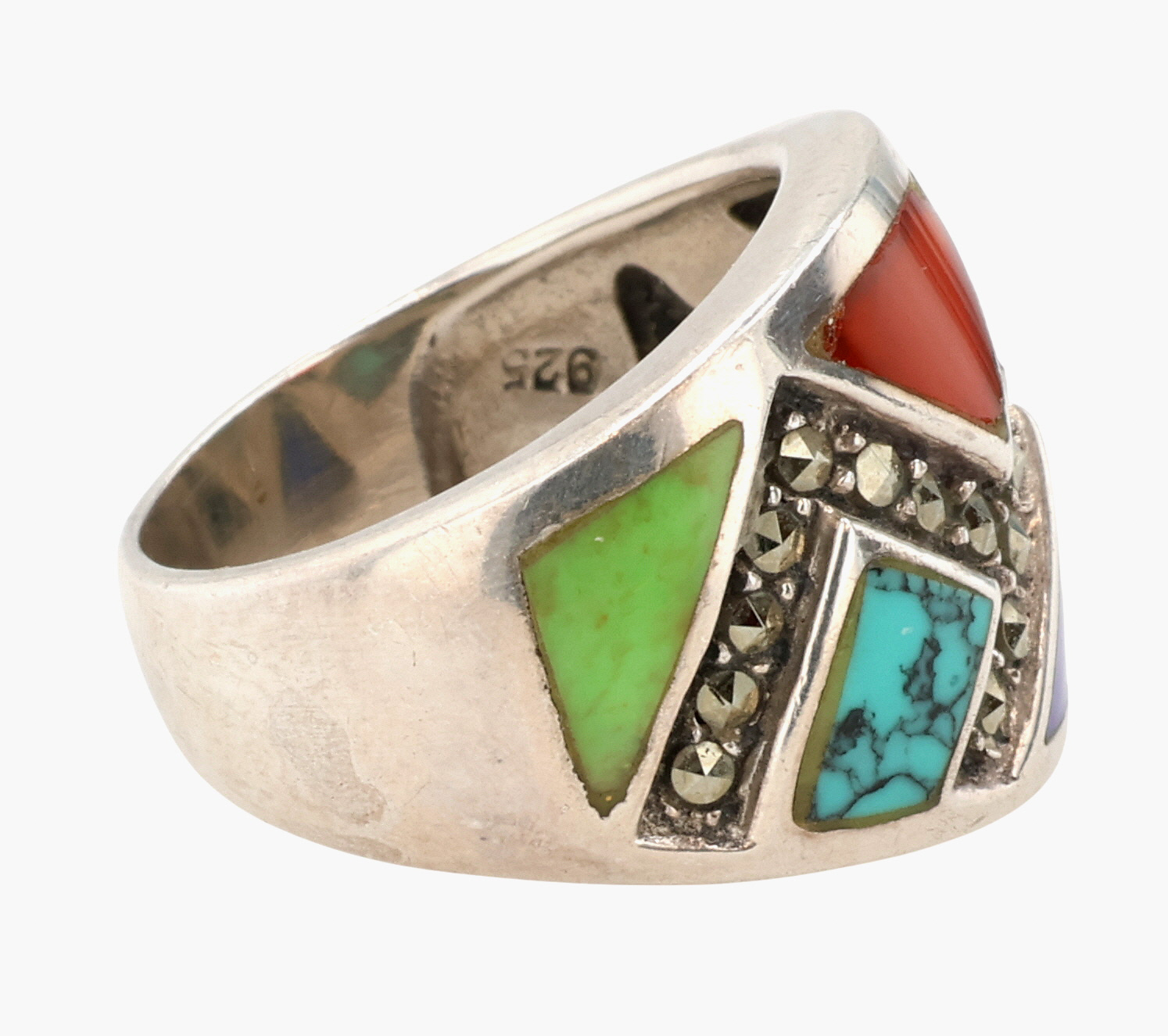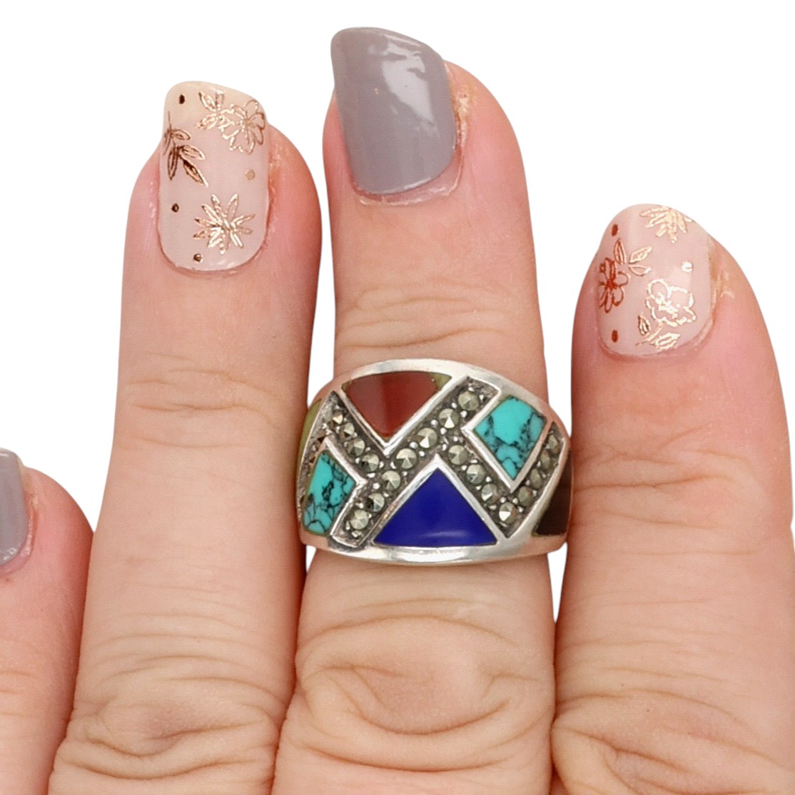 CW Southwestern Sterling Multi-Stone Inlay Ring Sz 6, 6.5g