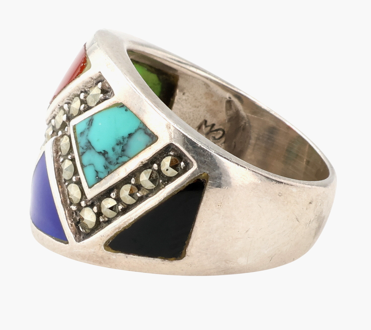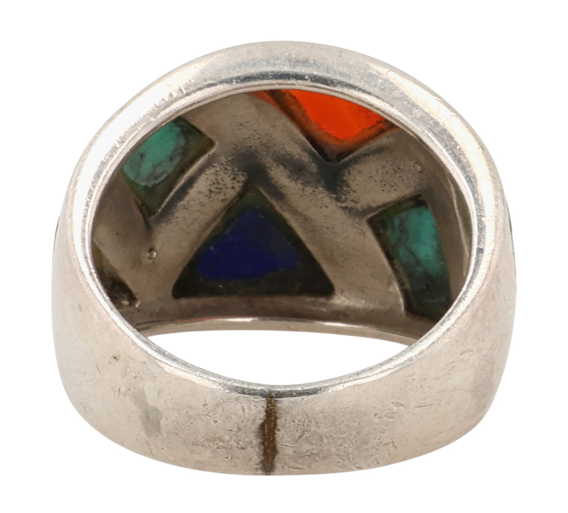 CW Southwestern Sterling Multi-Stone Inlay Ring Sz 6