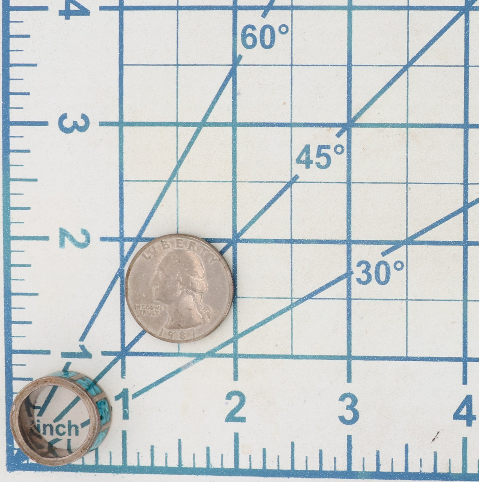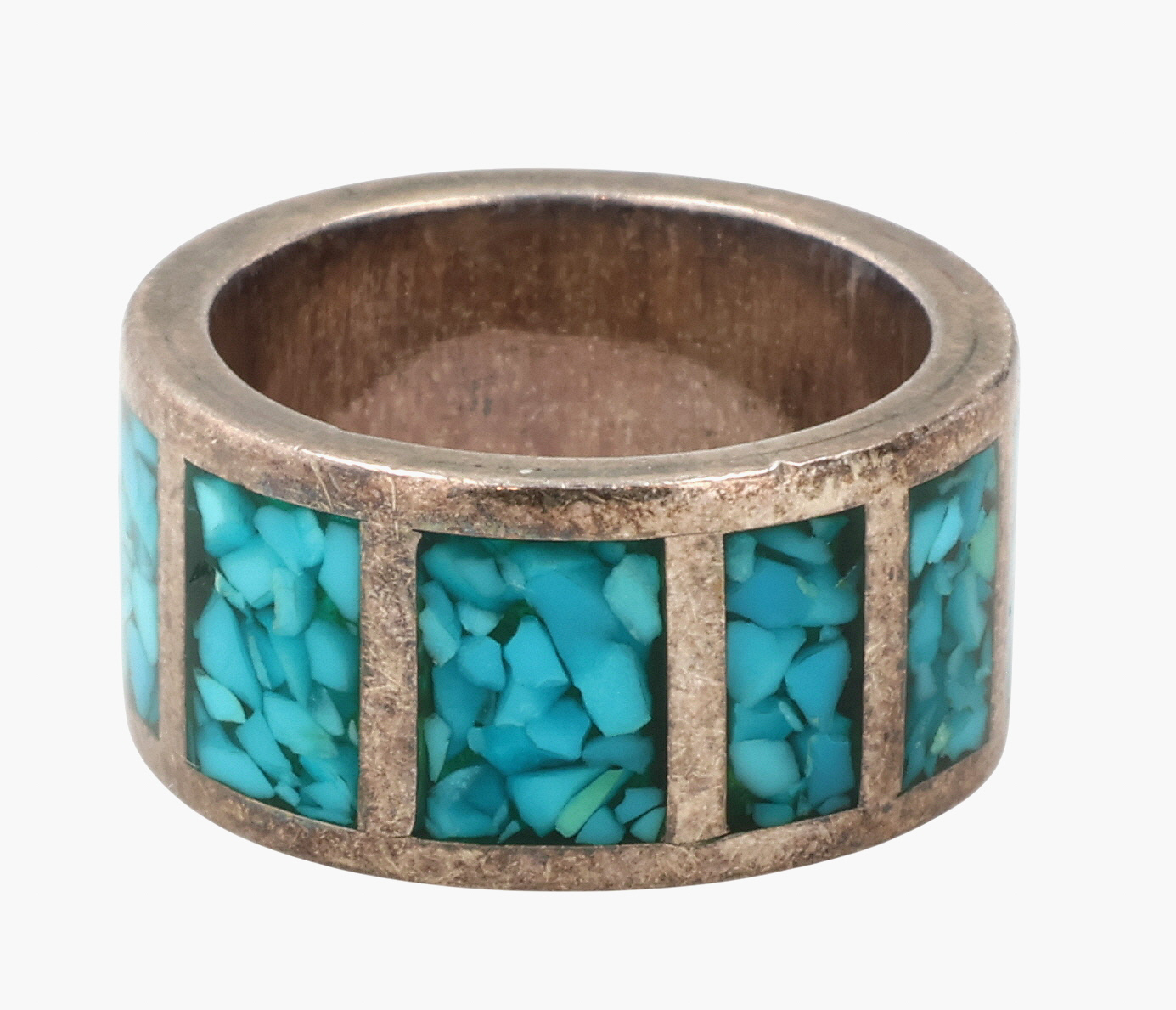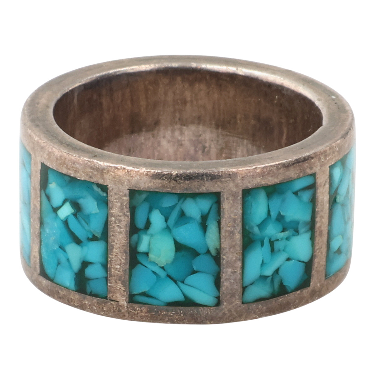 Southwestern Sterling Crushed Turquoise Ring Sz 4.5, 8g
