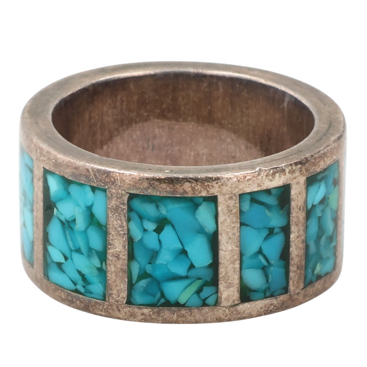 Southwestern Sterling Crushed Turquoise Ring Sz 4.5