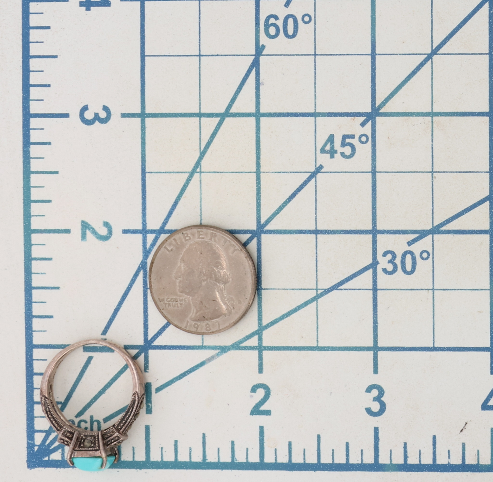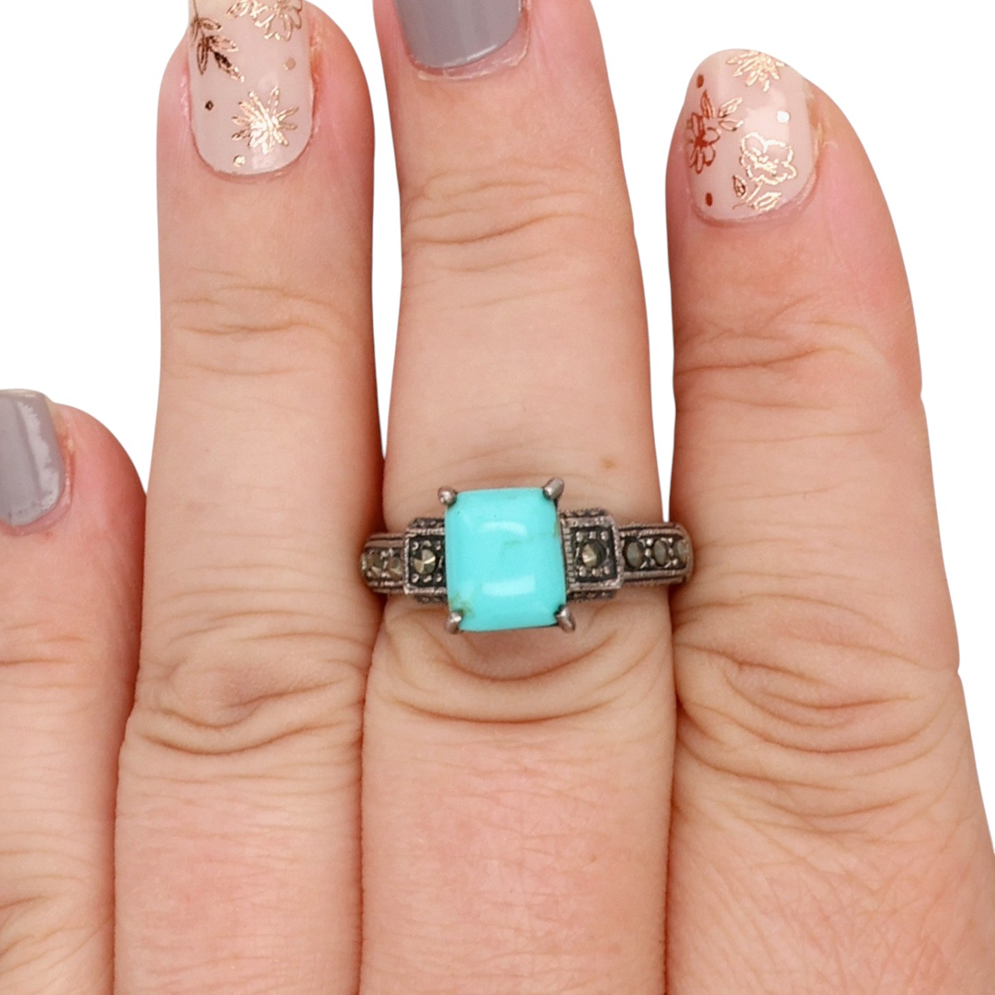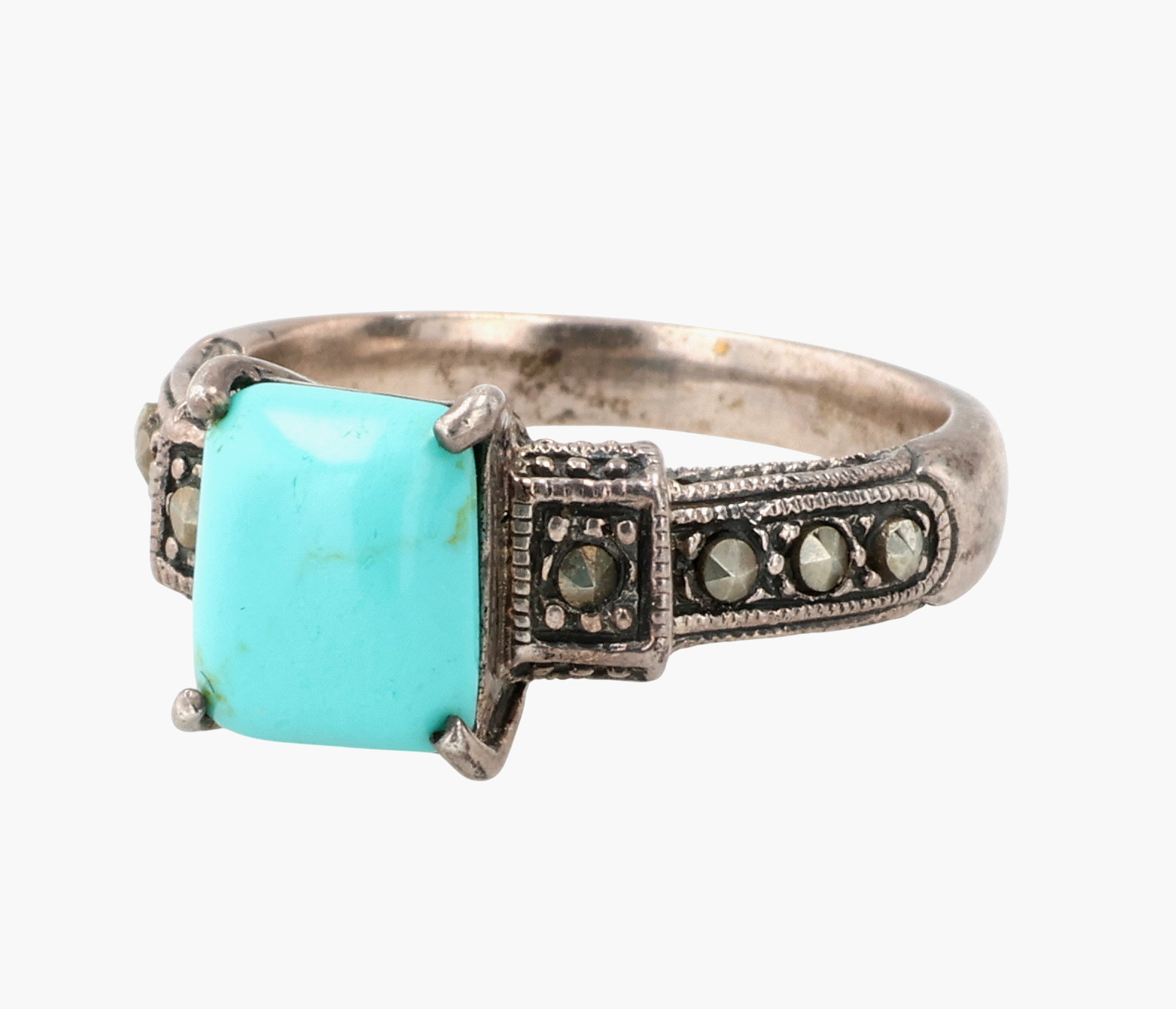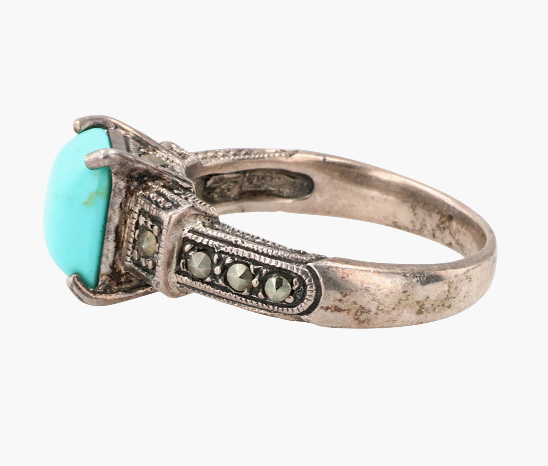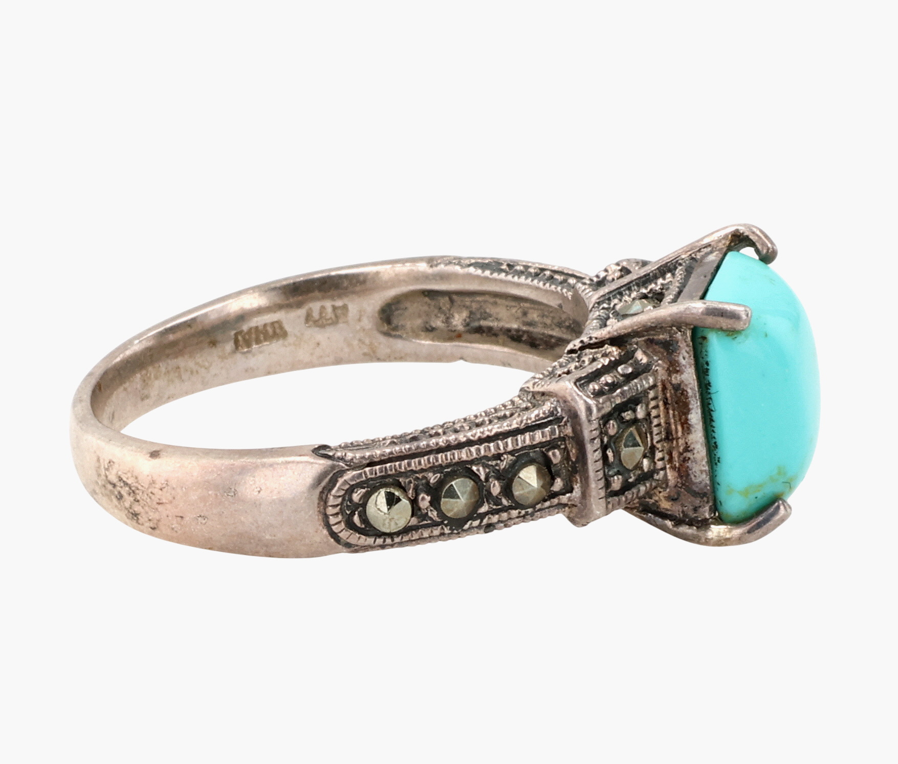 ATI Sterling Turquoise Marcasite Ring Sz 7.75, 6g