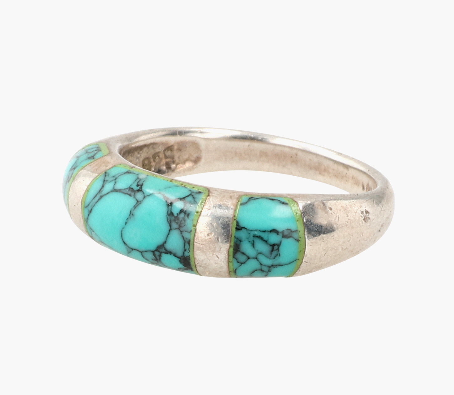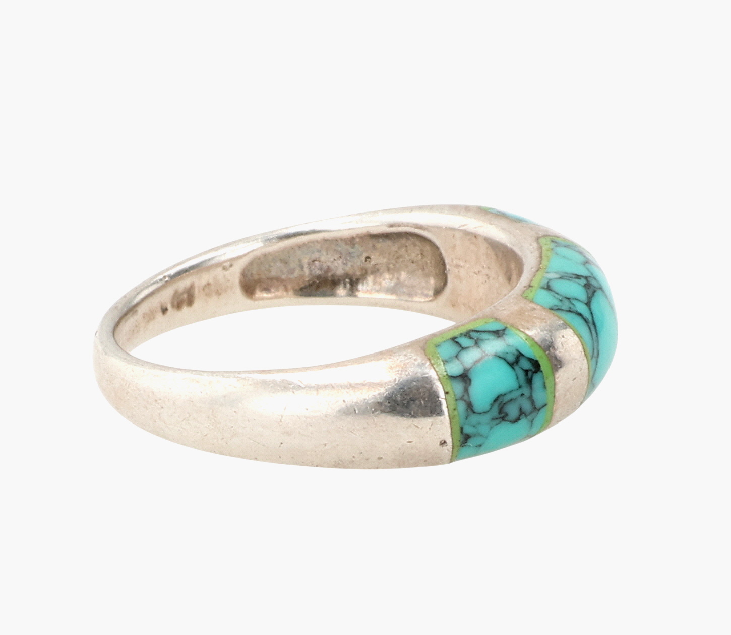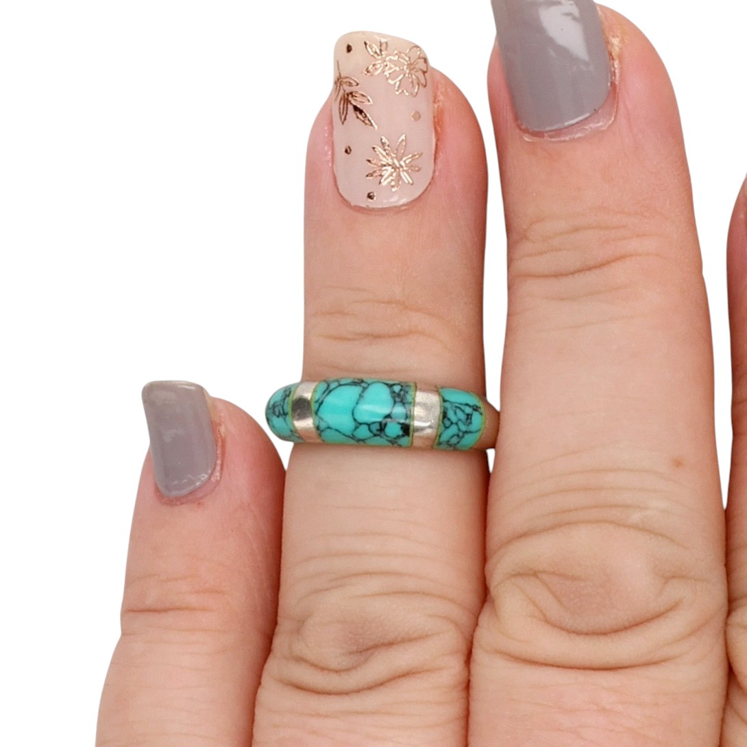 Sterling Turquoise Channel Inlay Ring Sz 4.75, 3.5g
