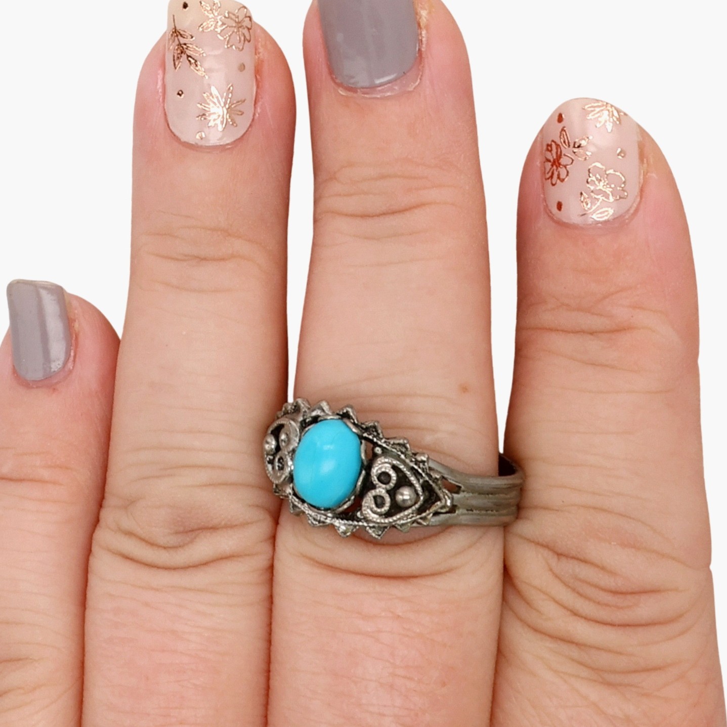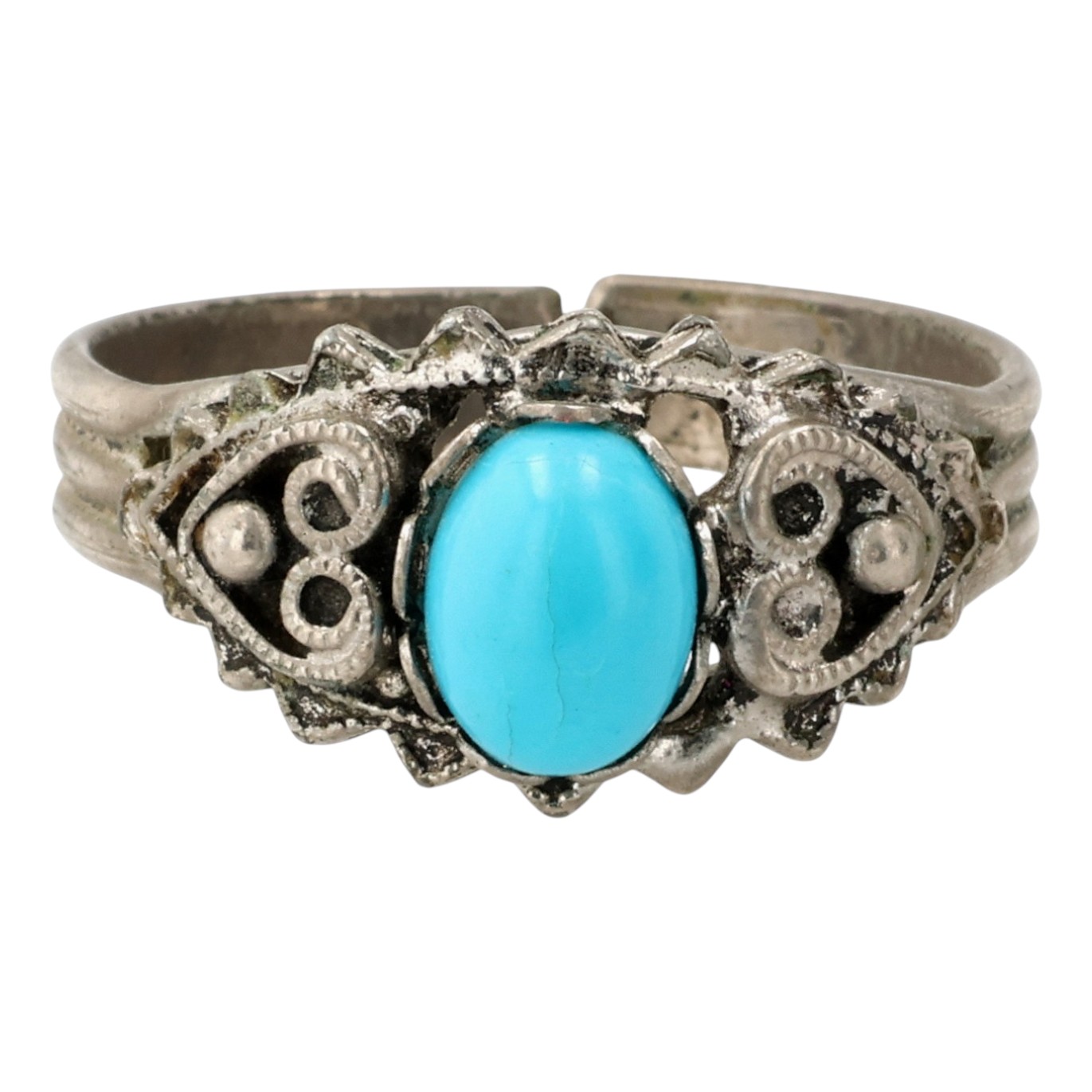 Southwestern Sterling Turquoise Adjustable Ring 4g, Sz 10