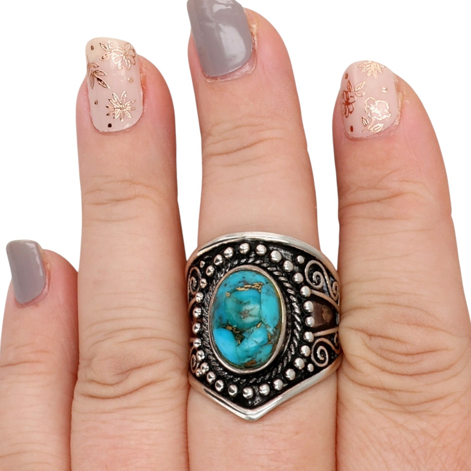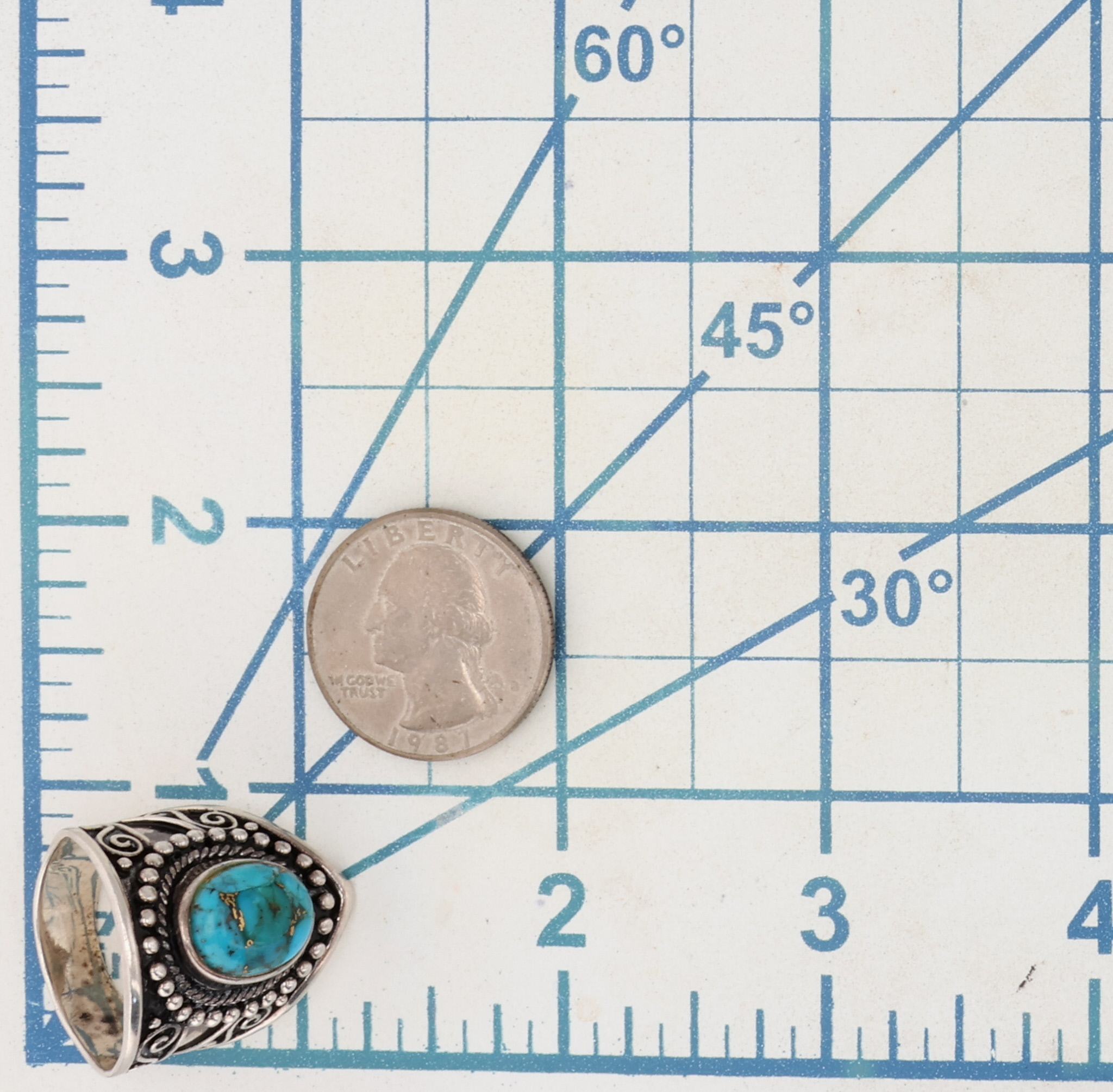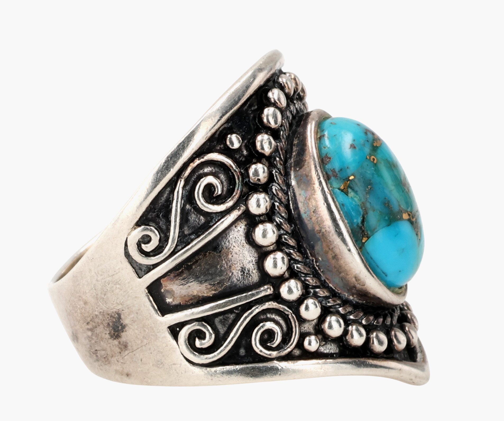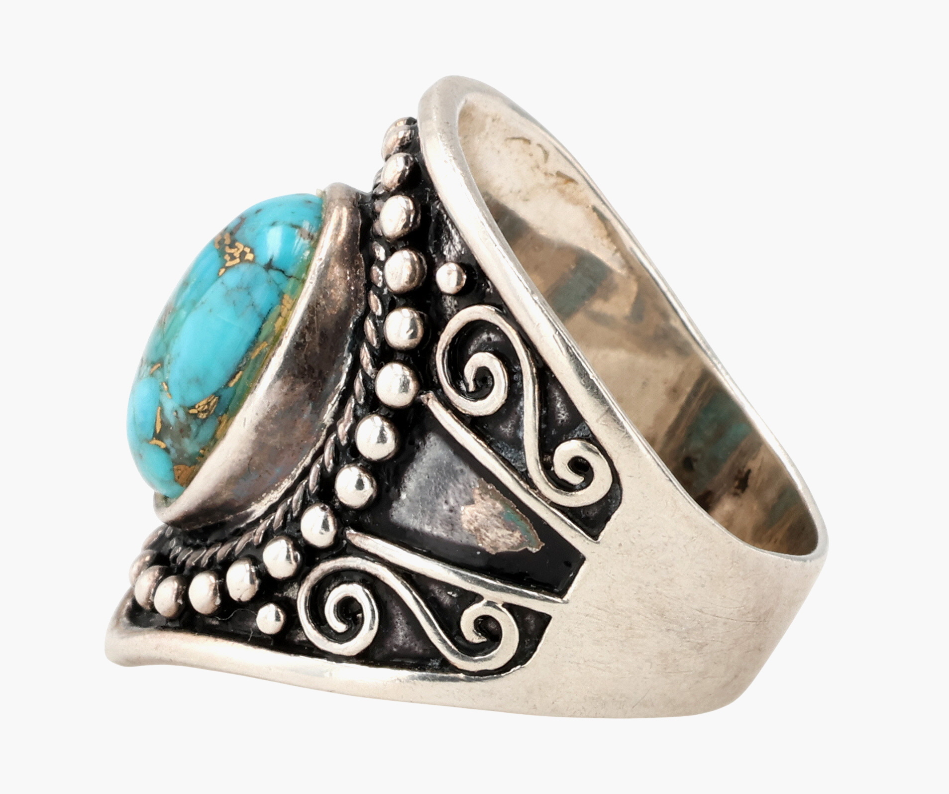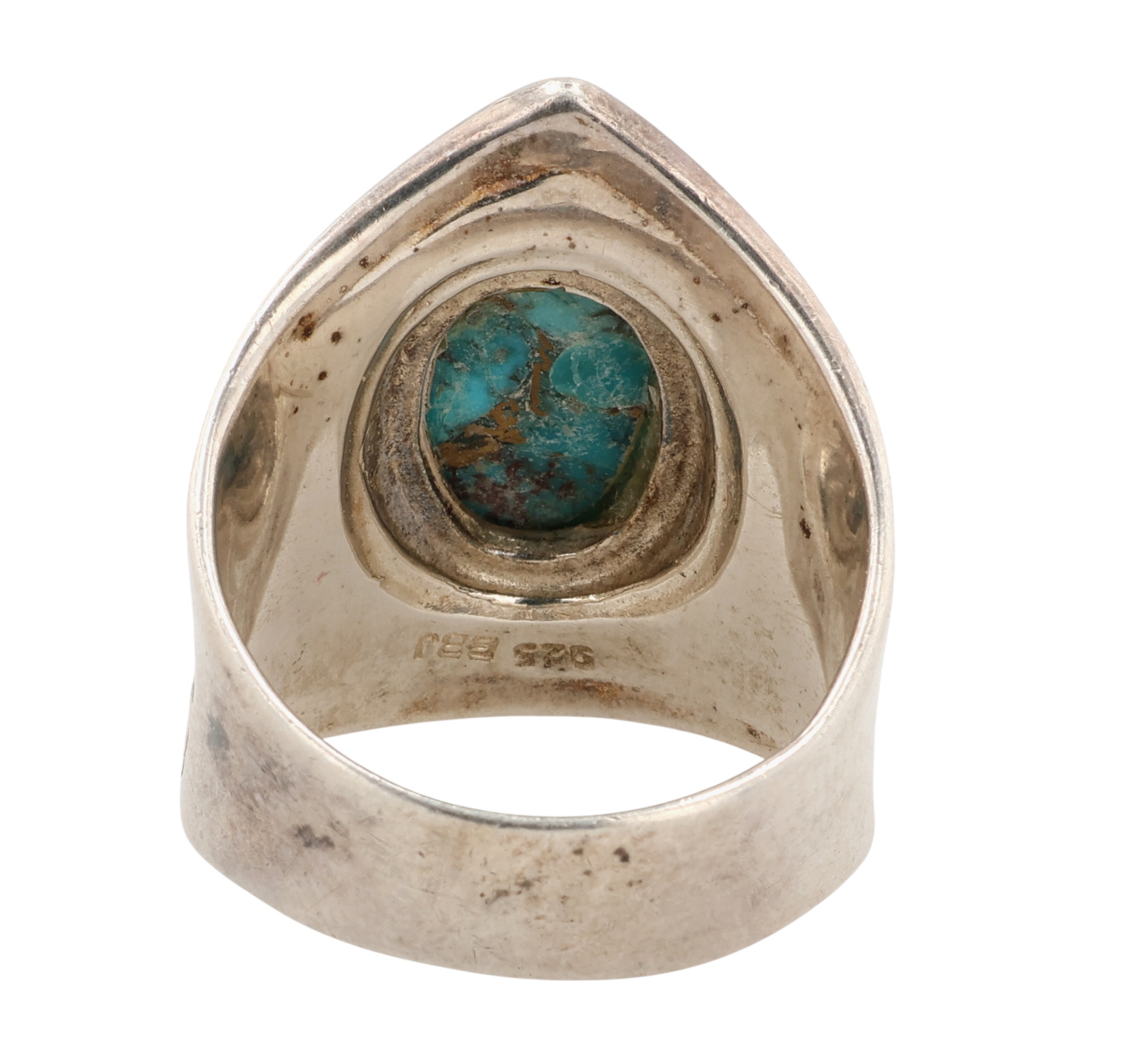 BBJ Southwestern Style Sterling Turquoise Ring Sz 10.25, 11g