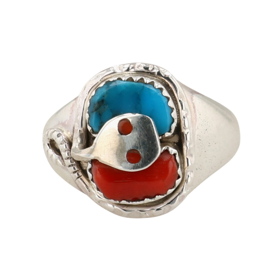 Joy Calavaza Zuni Sterling Multi-Stone Snake Ring Sz 8.25