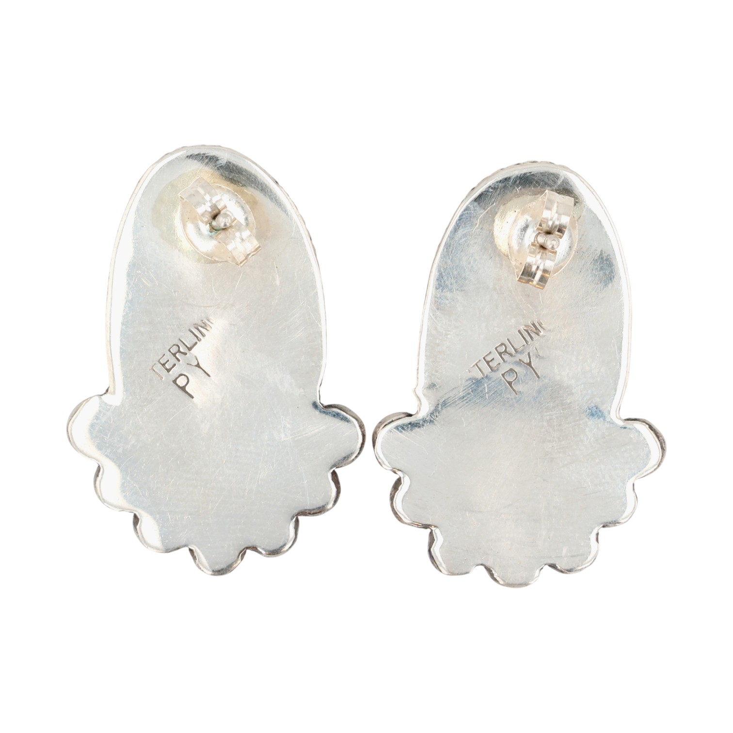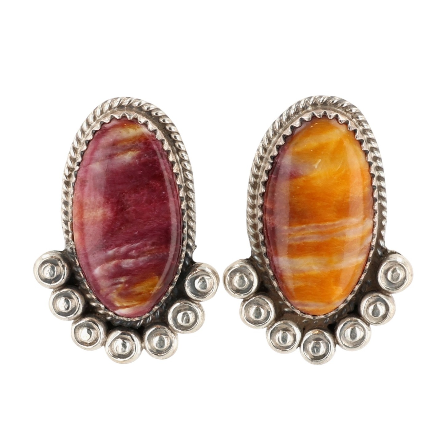 Phillip Yazzie Navajo Sterling Spiny Oyster Earrings 10g