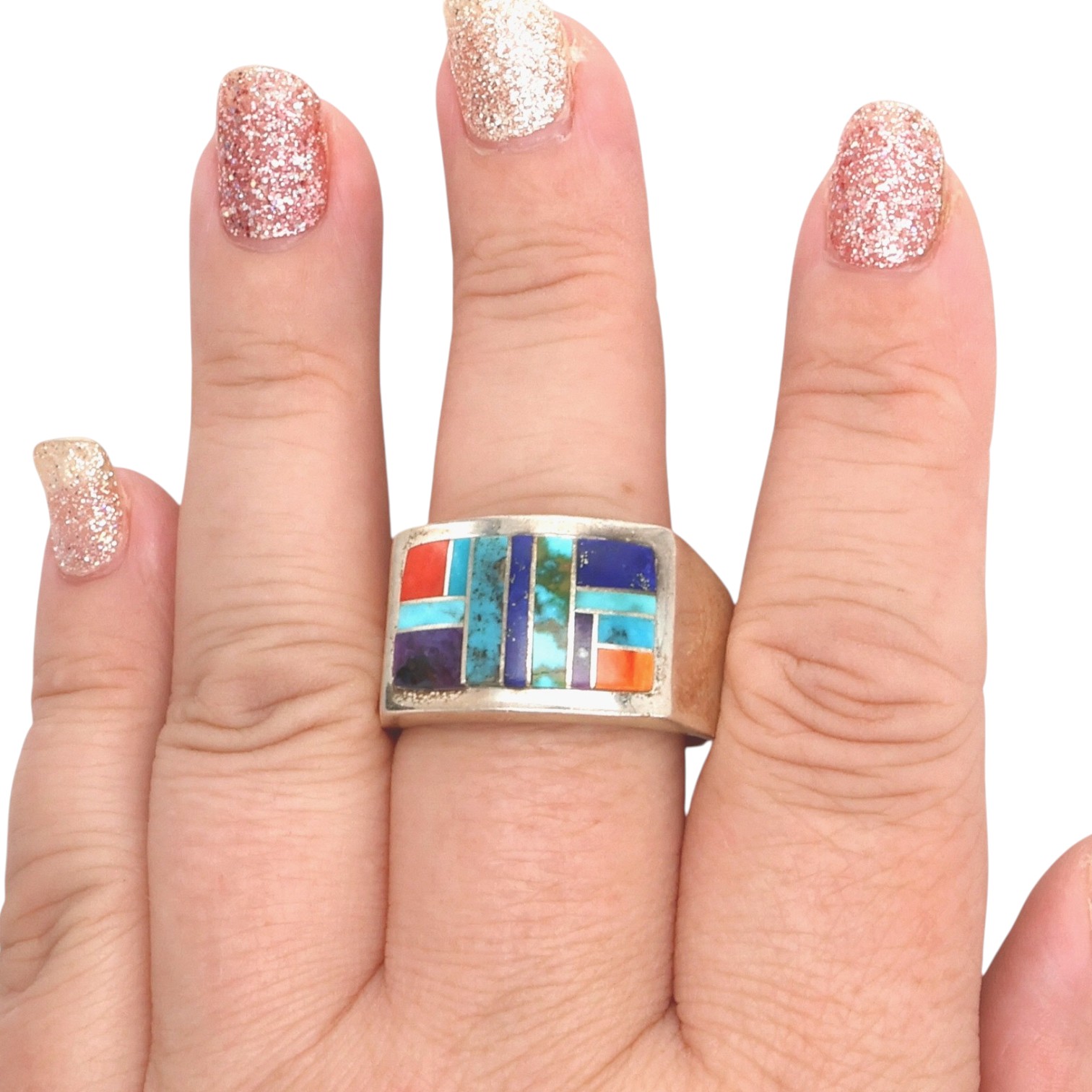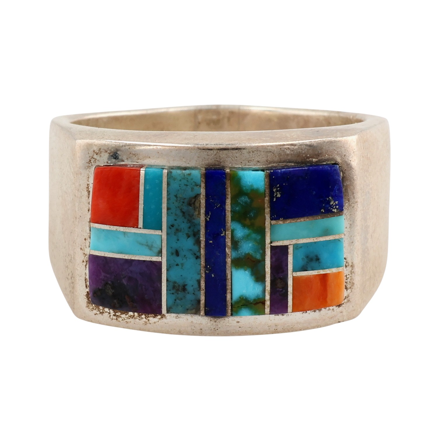 Tully Gustine Navajo Sterling Multi-Stone Inlay Ring Sz 13.5