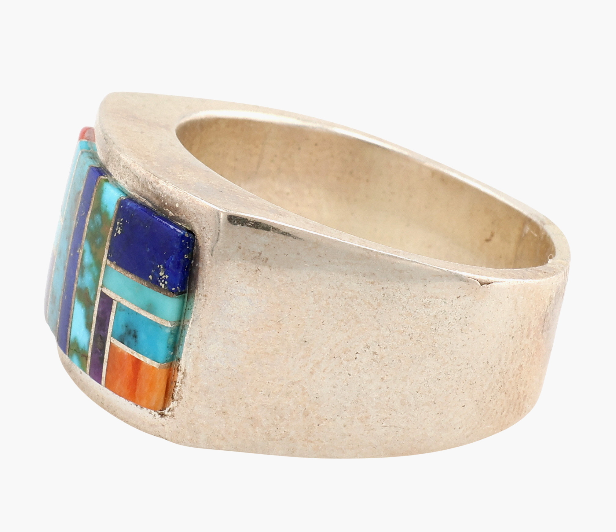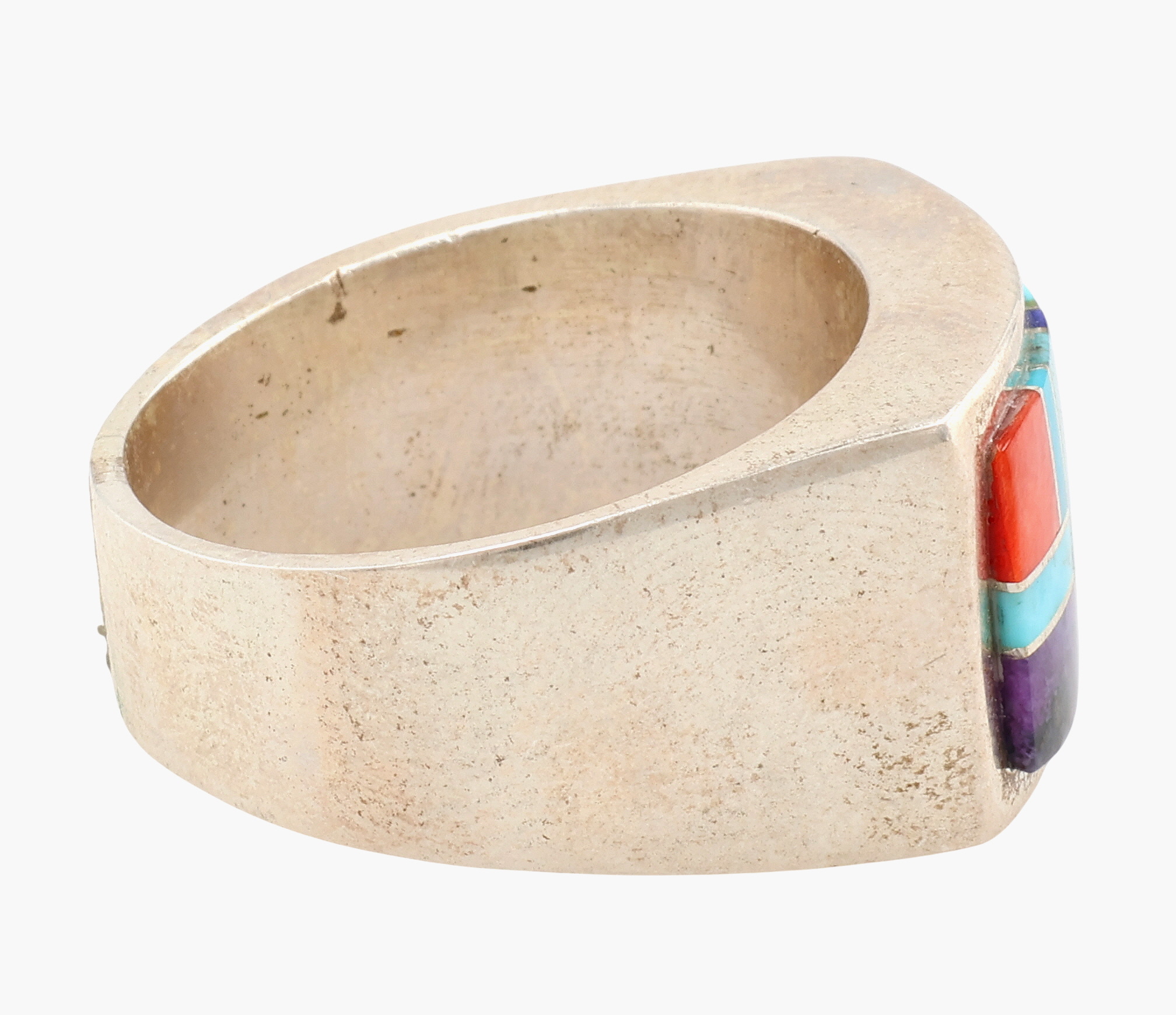 Tully Gustine Navajo Sterling Multi-Stone Inlay Ring Sz 13.5, 24g