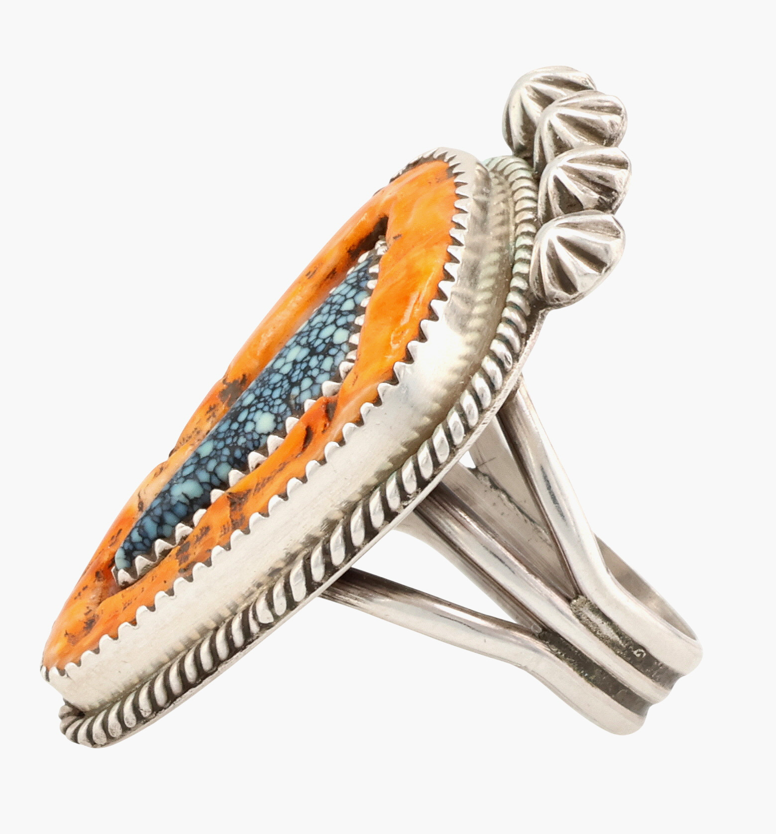 Redwater Sterling Lander Turquoise Multi-Stone Ring Sz 7.75, 14g