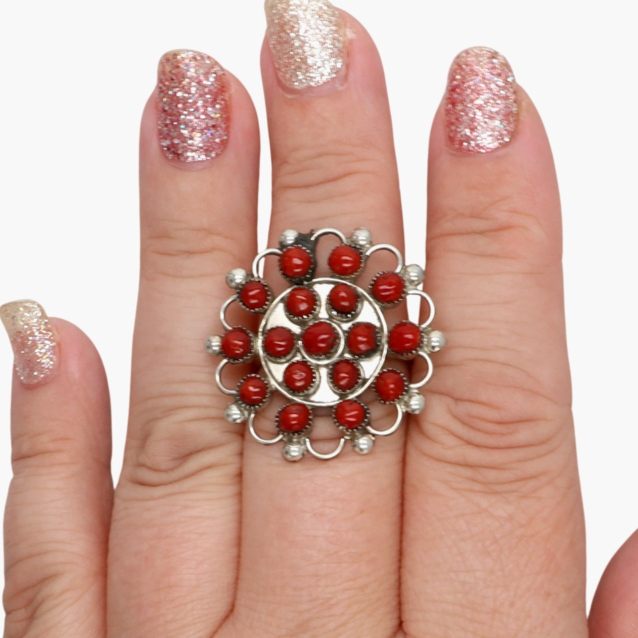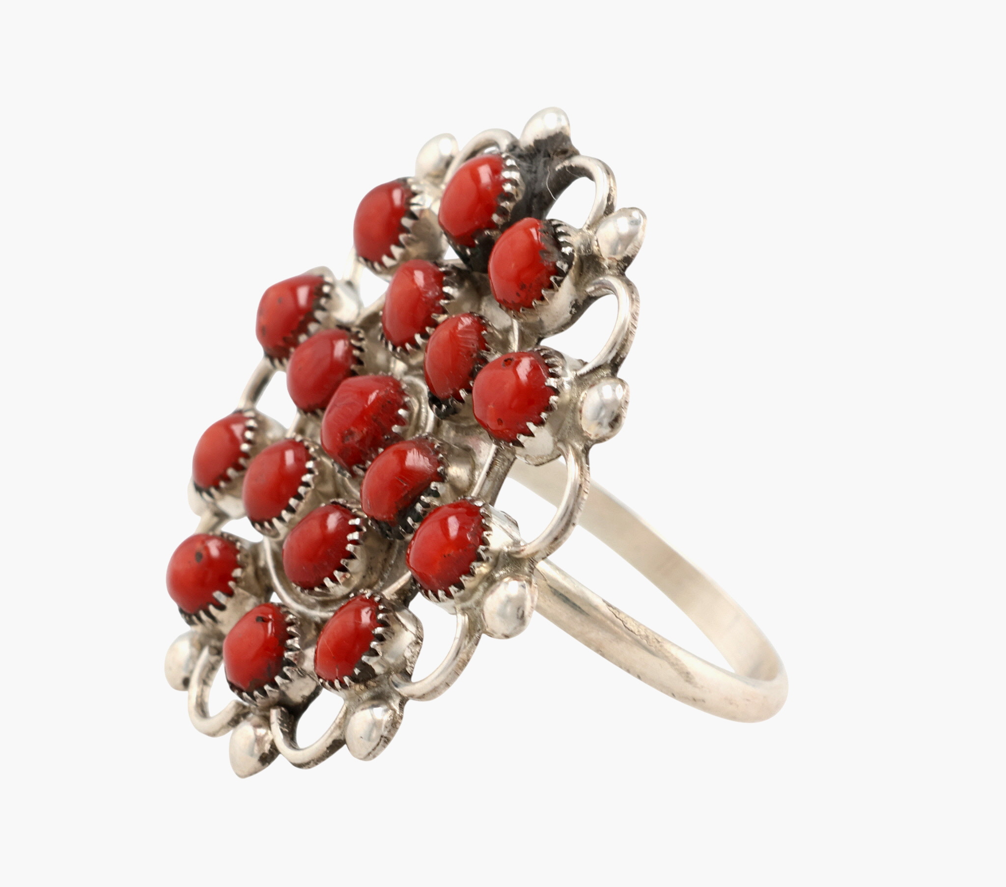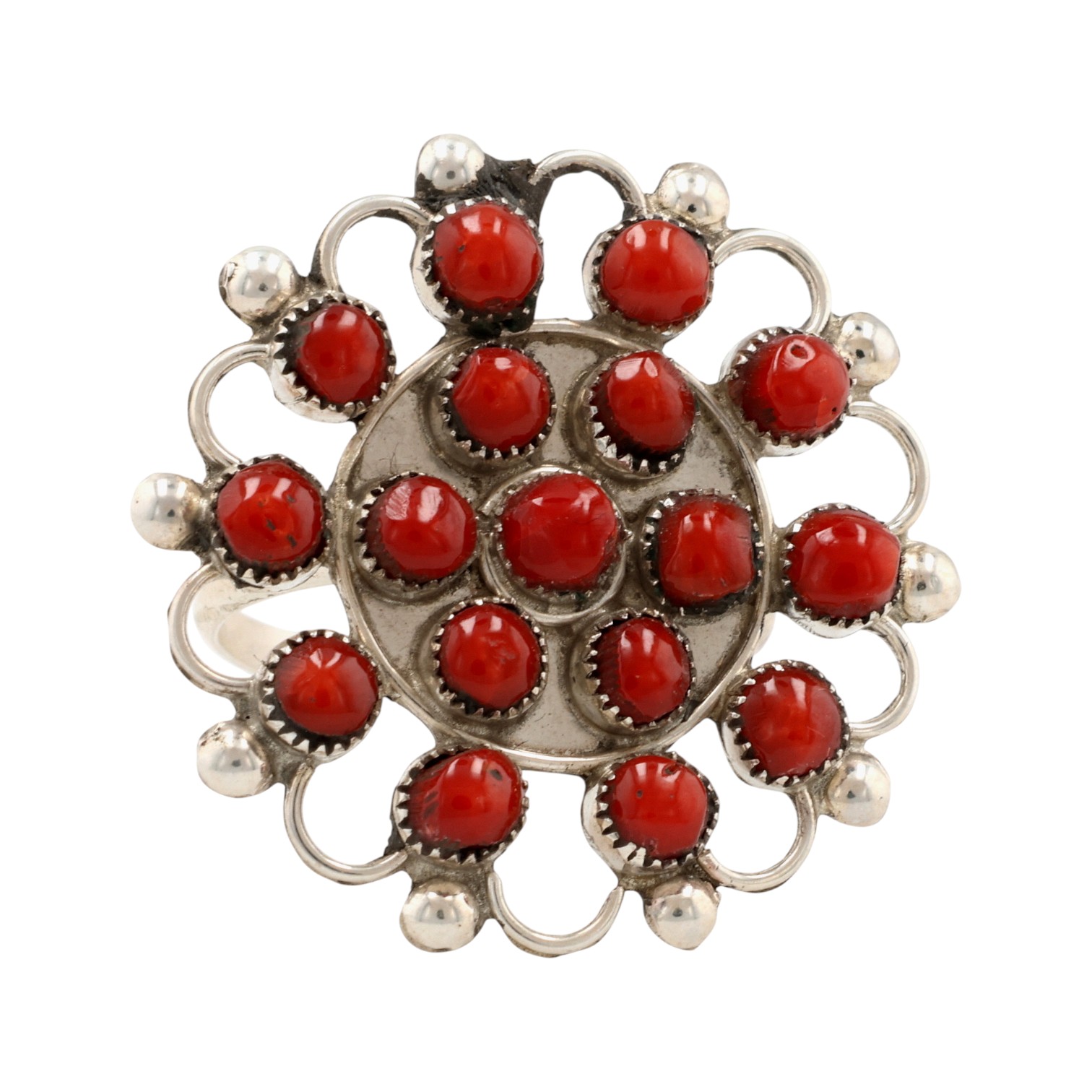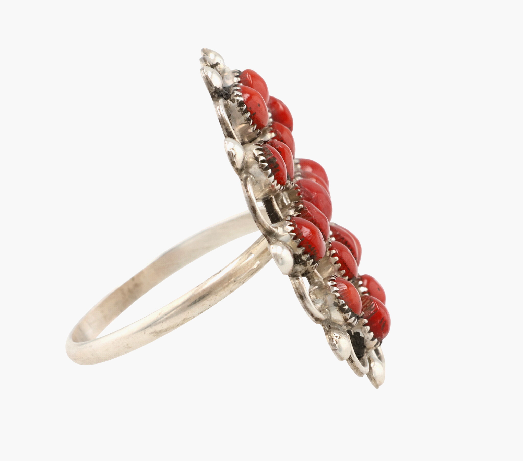 Zuni Sterling Snake Eye Coral Ring Sz 8.25