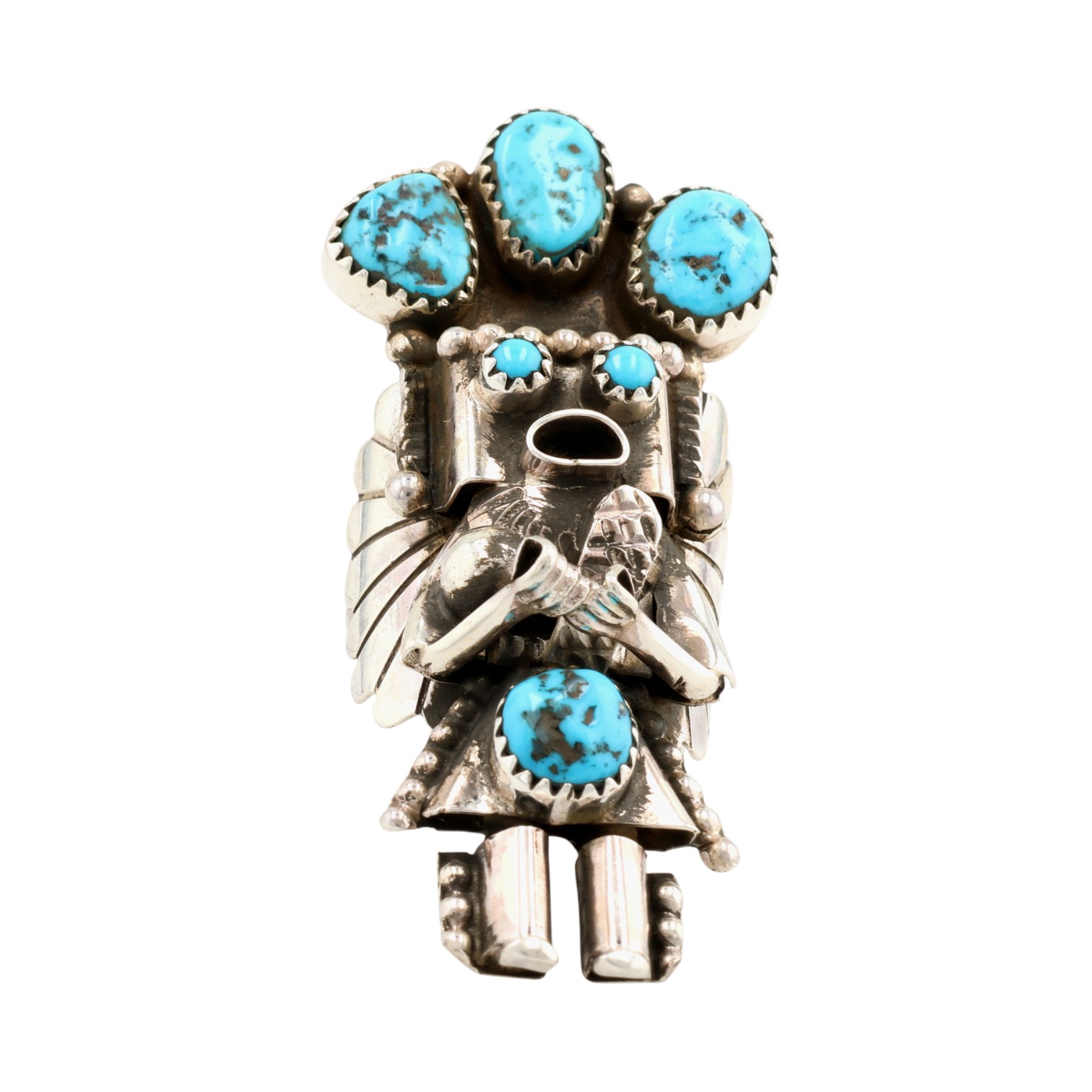 Doris Smallcanyon Navajo Sterling Turquoise Kachina Ring Sz 8, 16g
