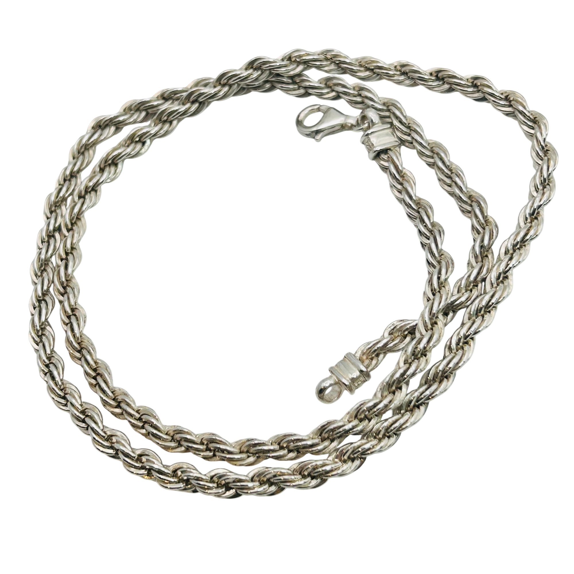 Sterling rope chain necklace. 46.87g. 20.5in.