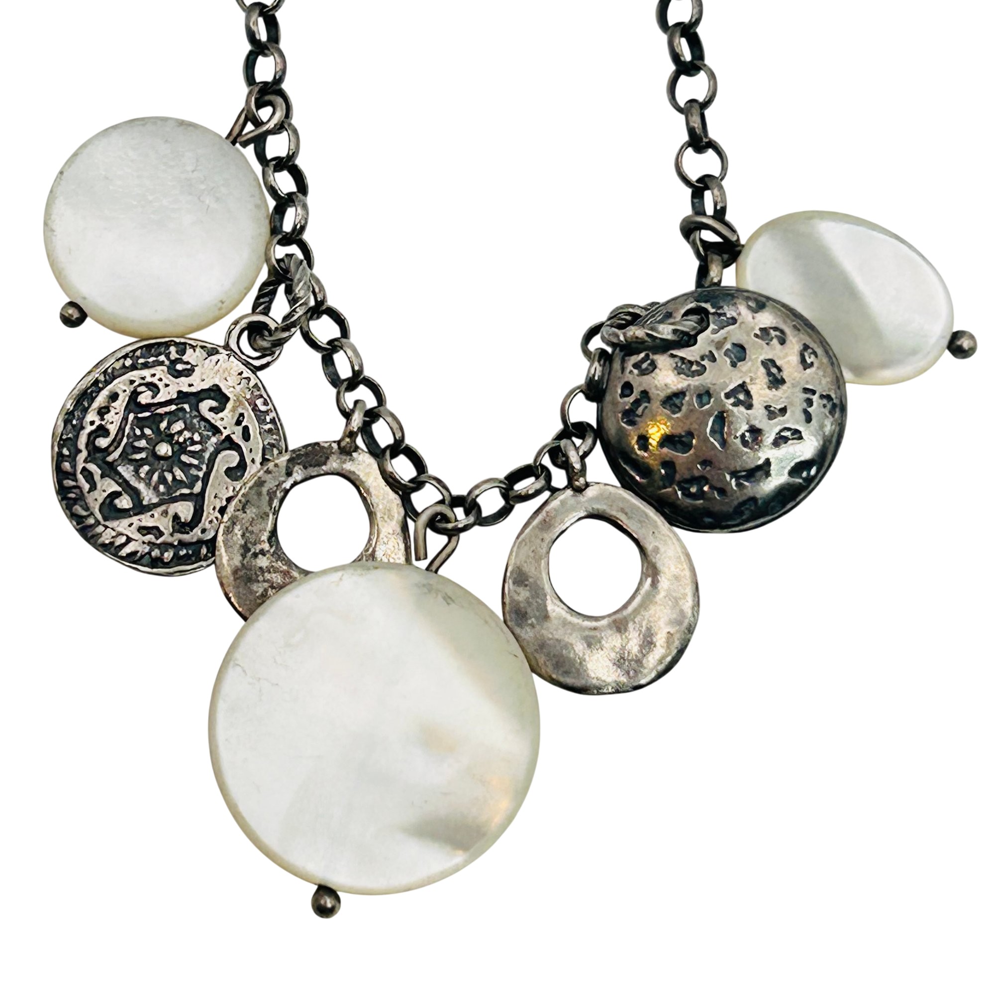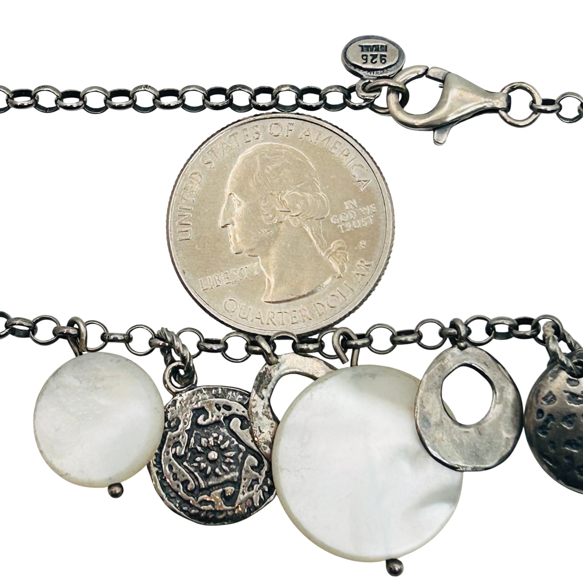 Israel Silpada Sterling Mother of Pearl cable chain charm necklace 17.3g