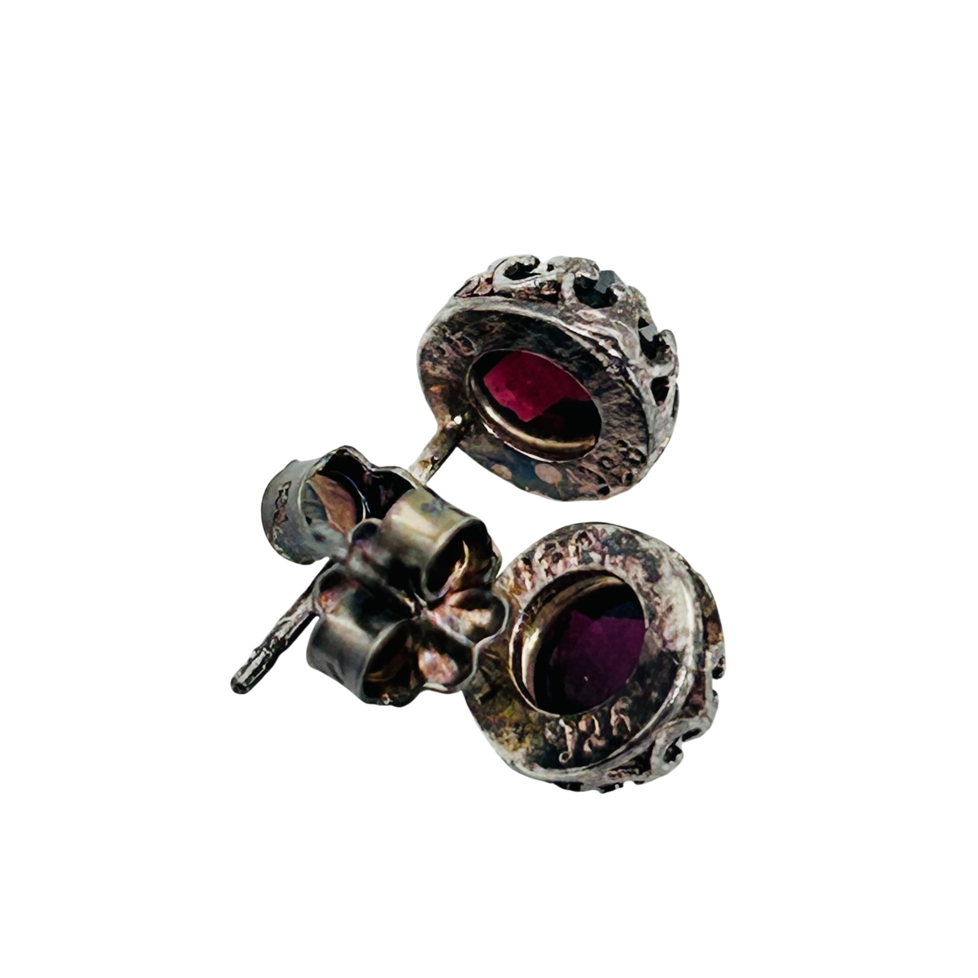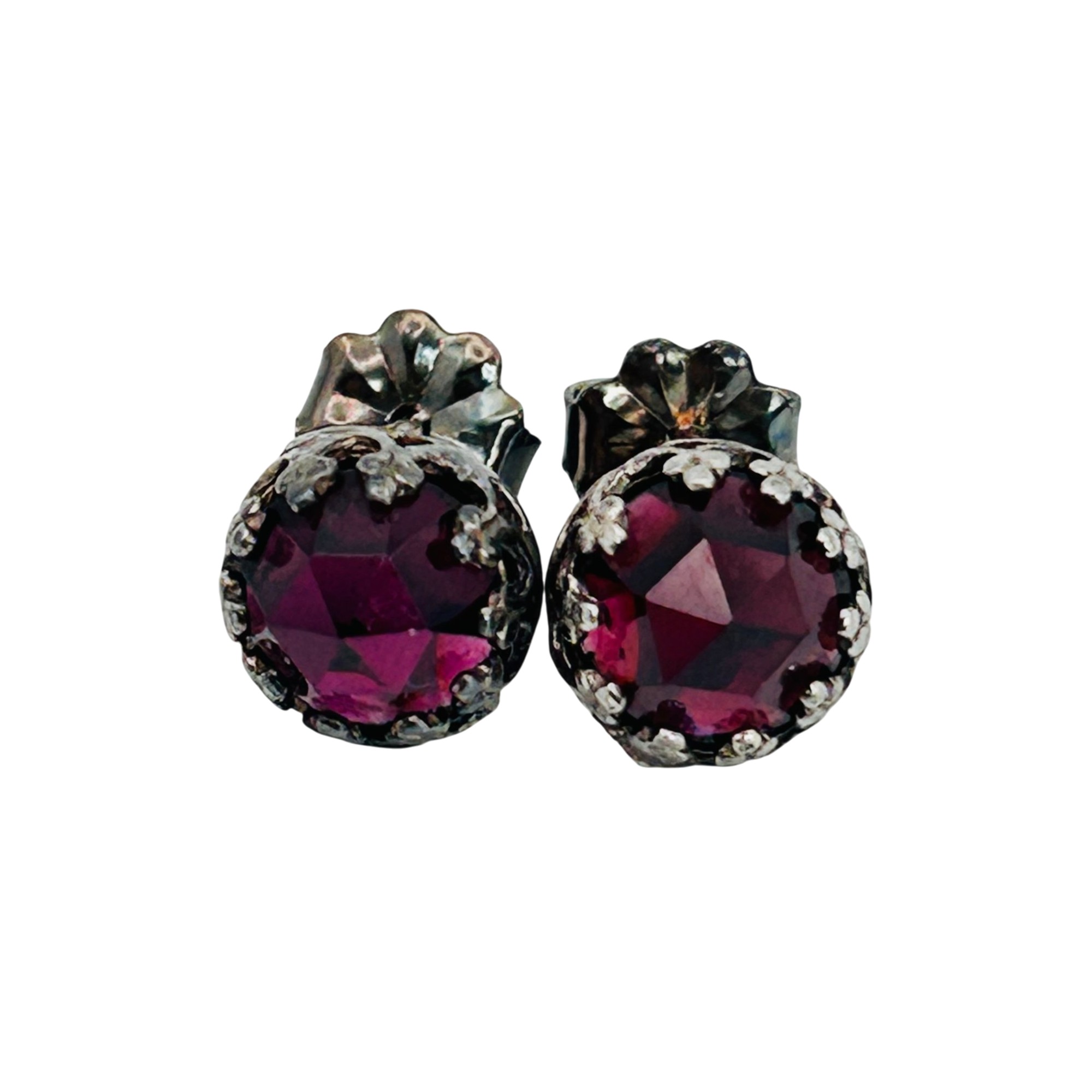 JBB Sterling Garnet crown setting stud earrings 1.6g
