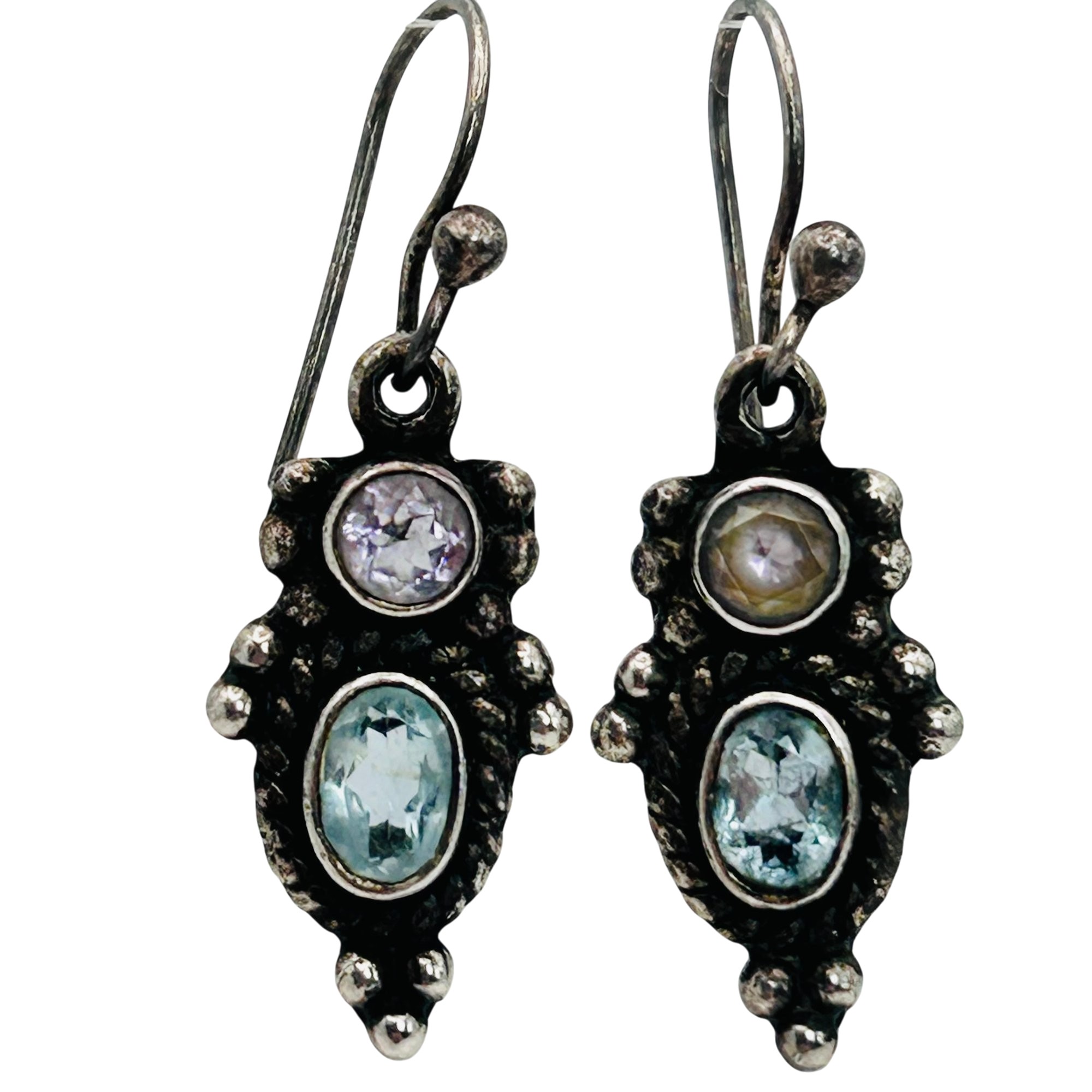 Sterling Amethyst and Topaz hook back earrings 5.5g