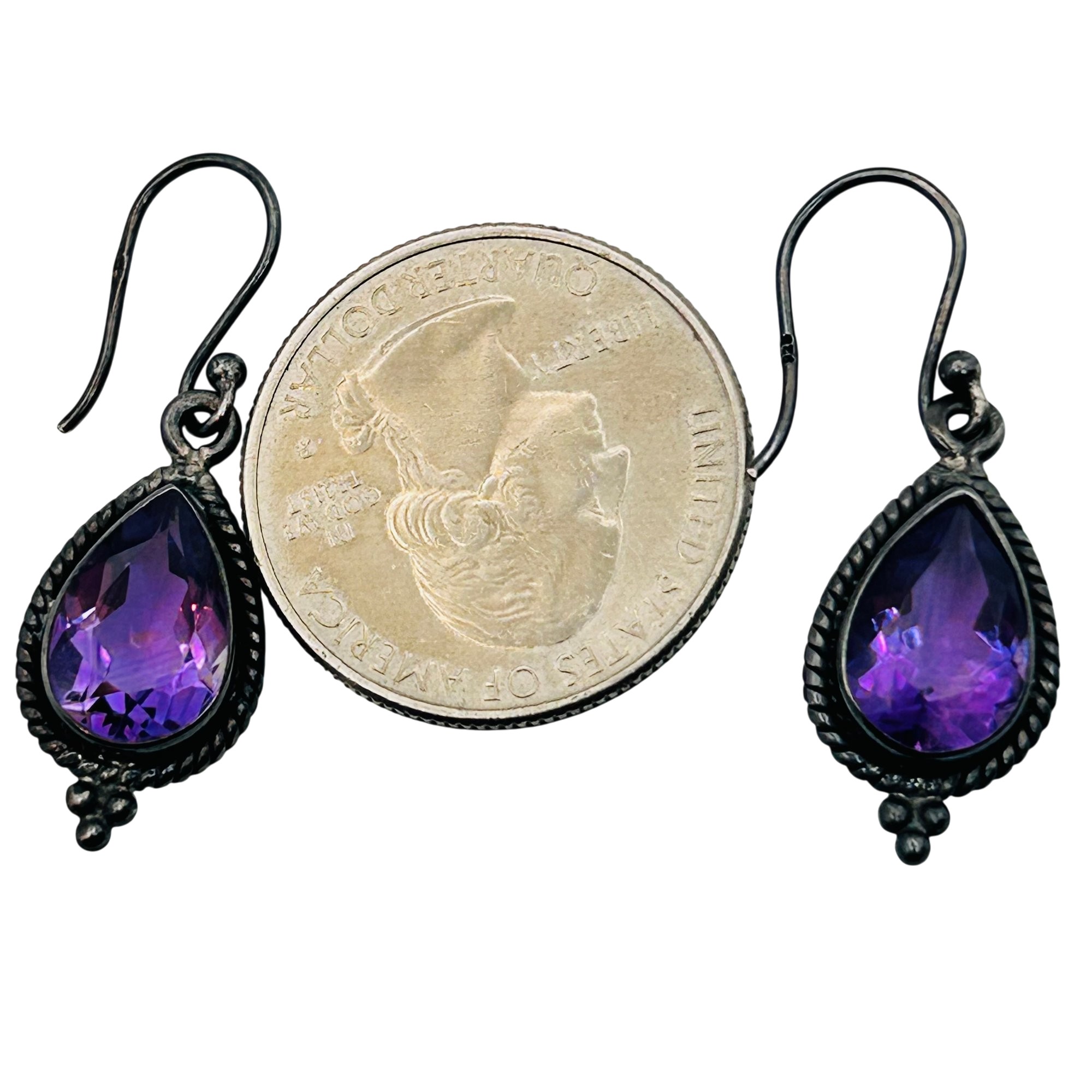 YS Sterling Amethyst teardrop earrings 4.1g