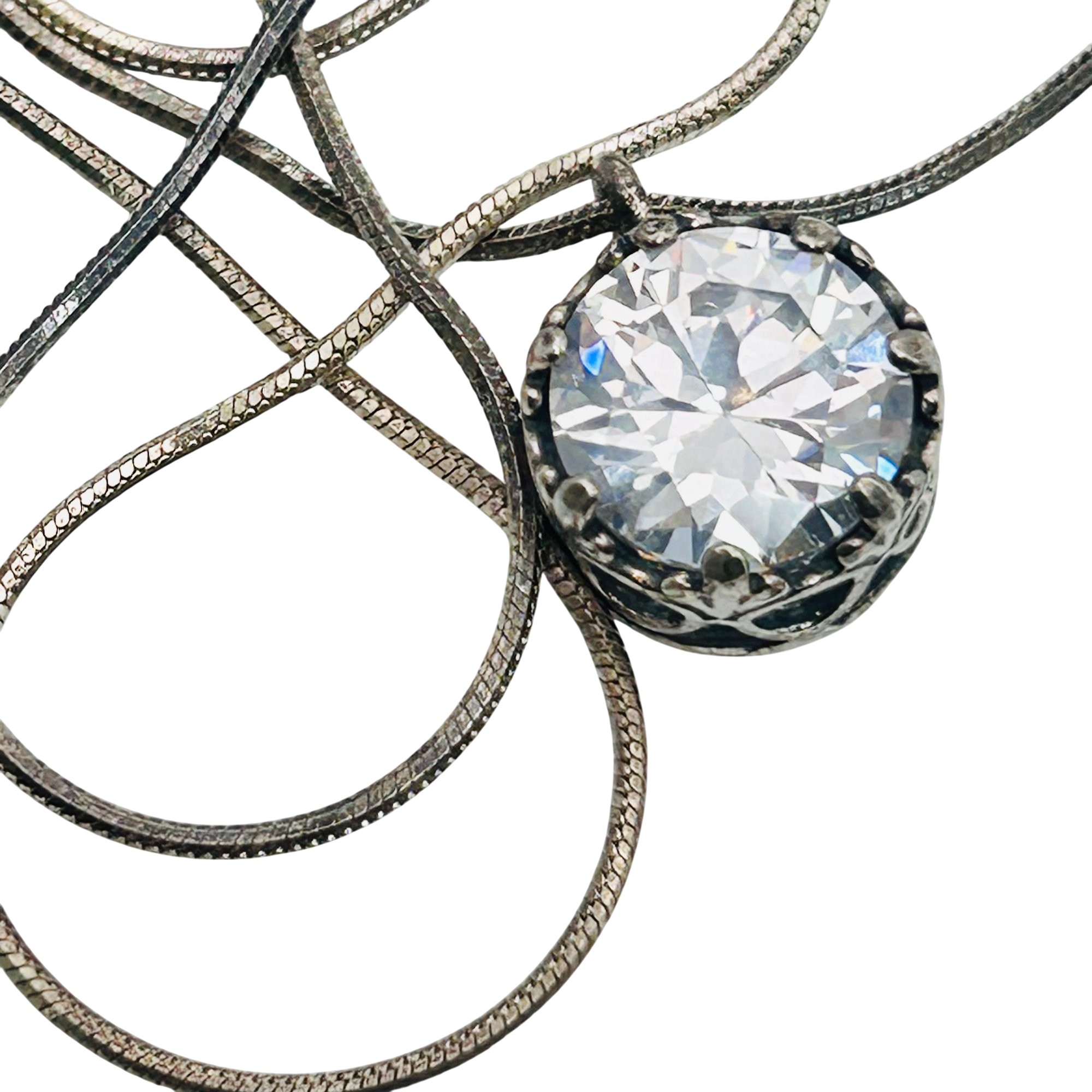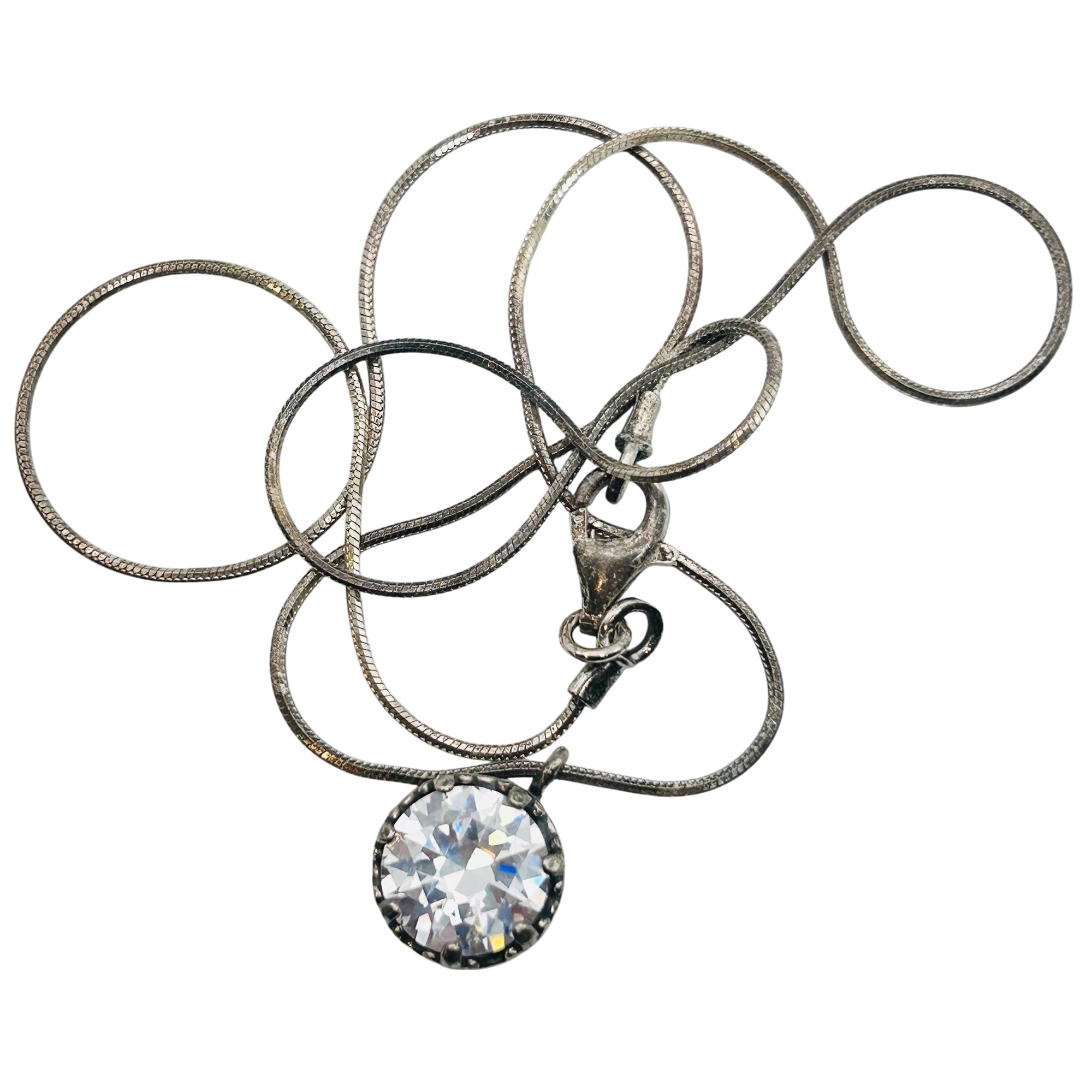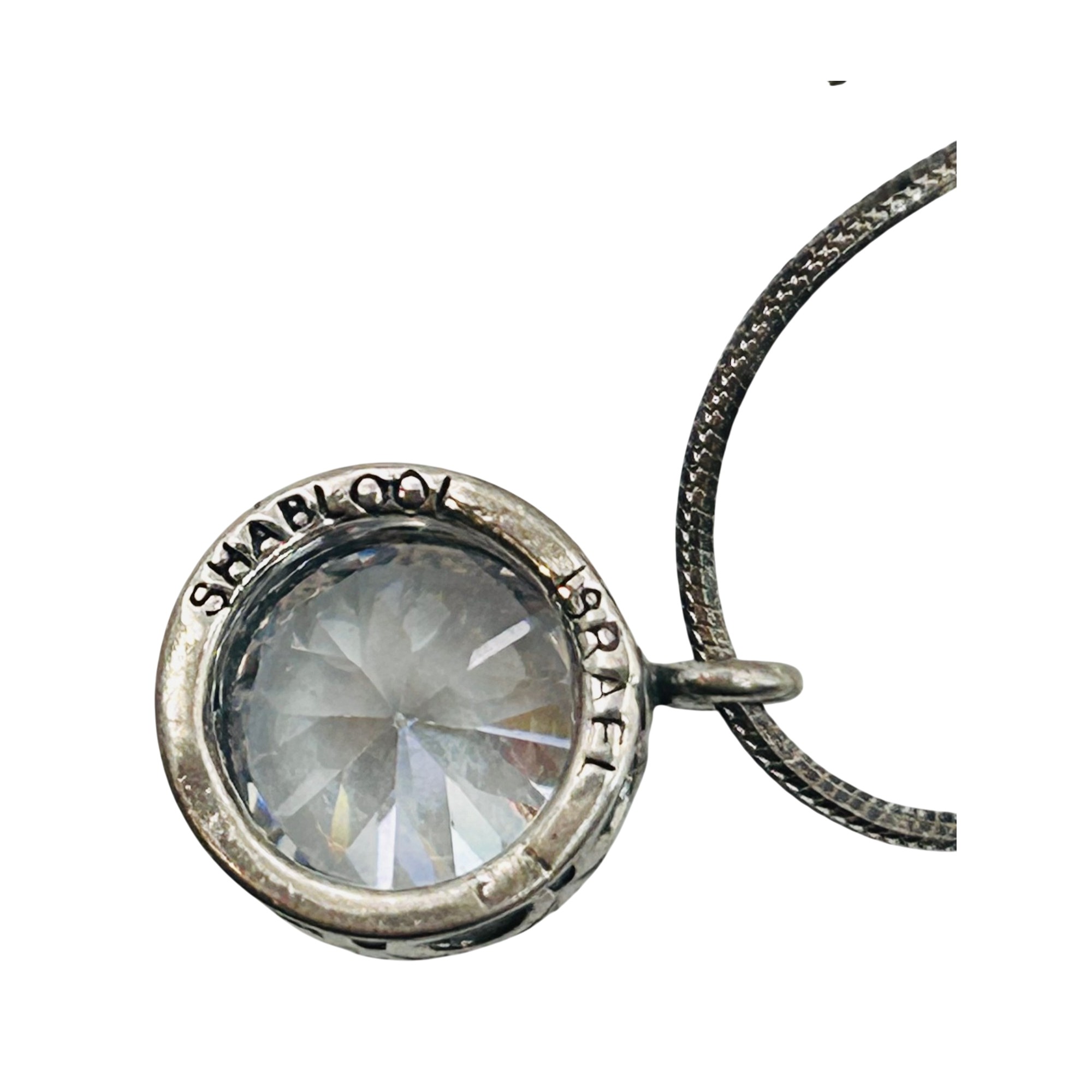 Shablool Israel Sterling round snake chain clear stone pendant necklace 6.9g