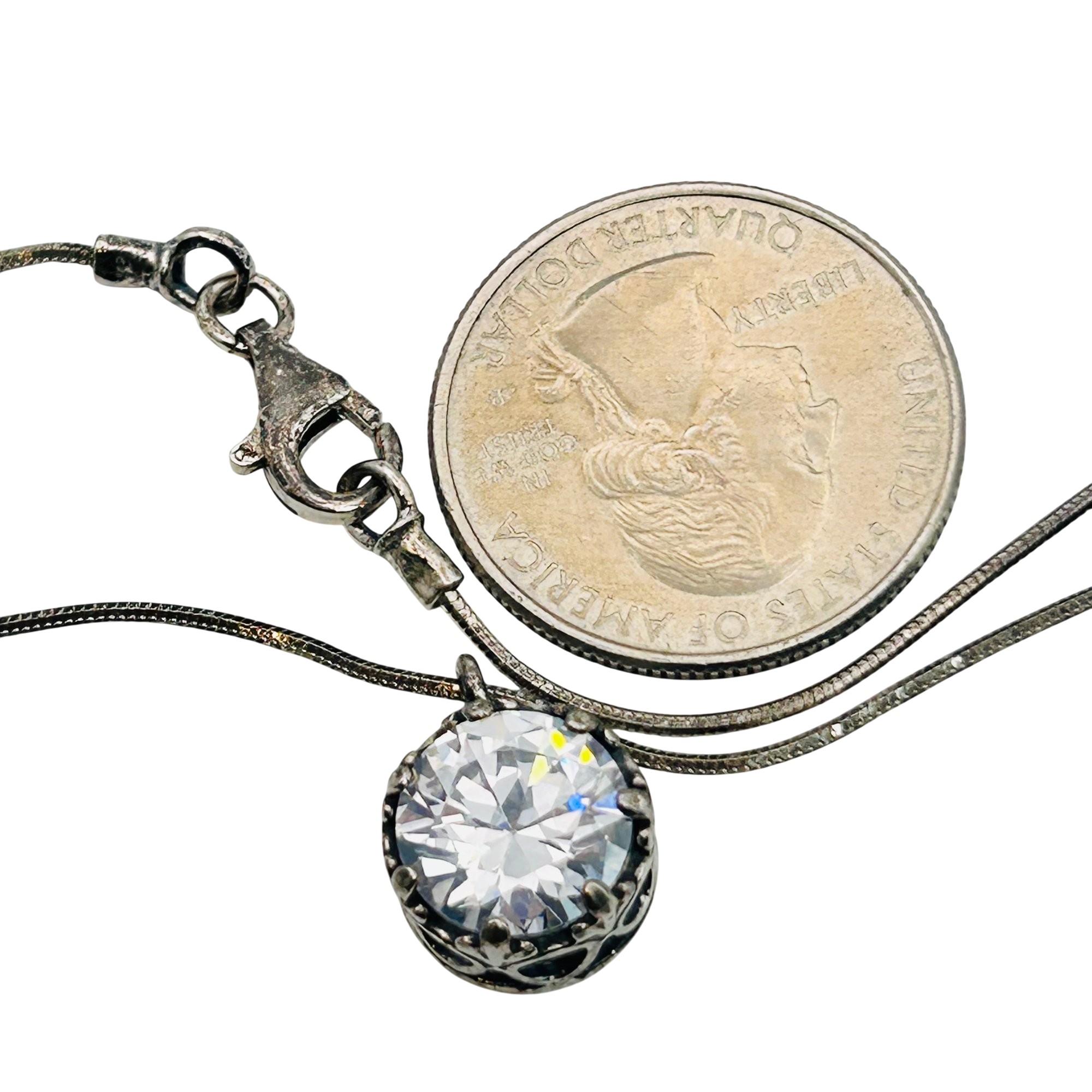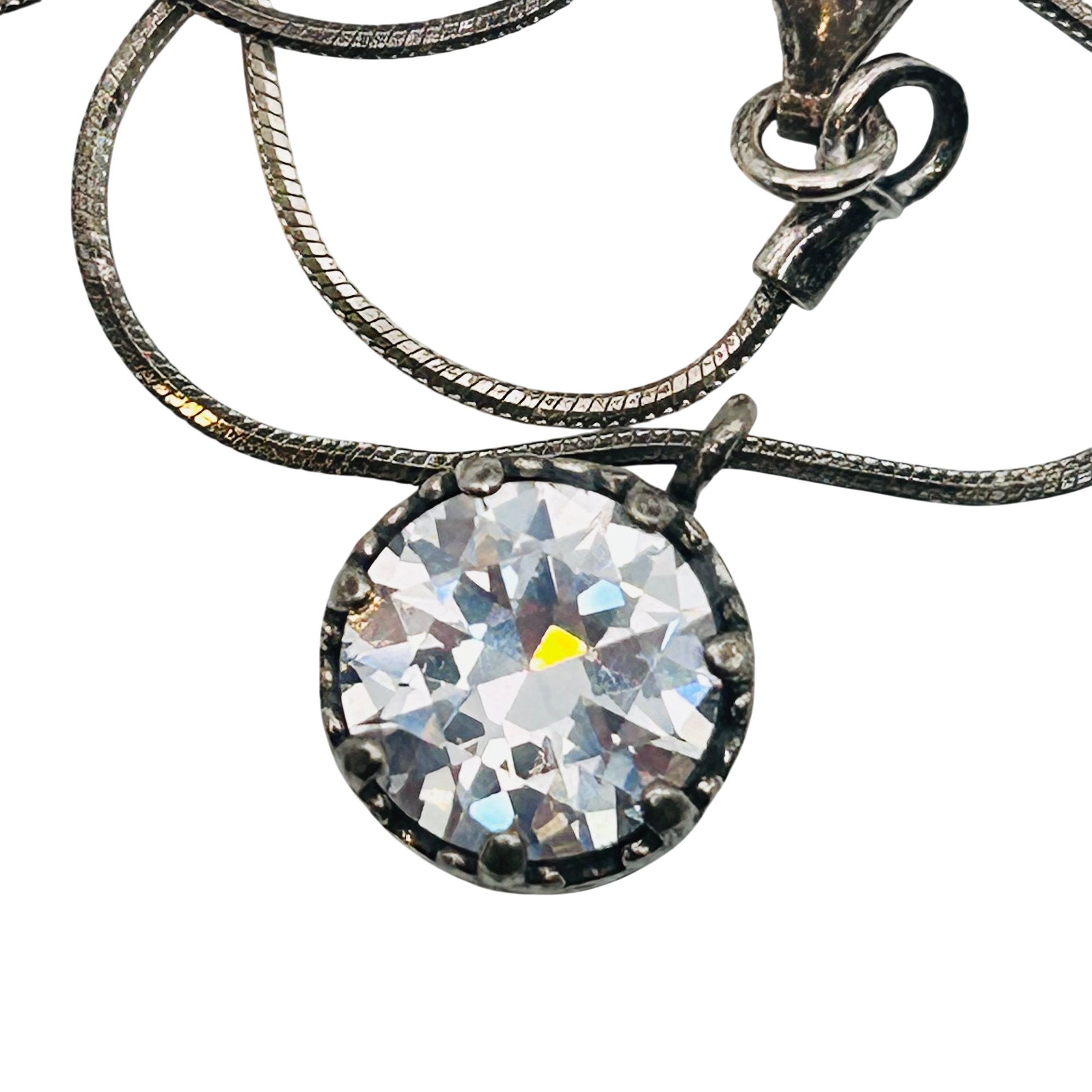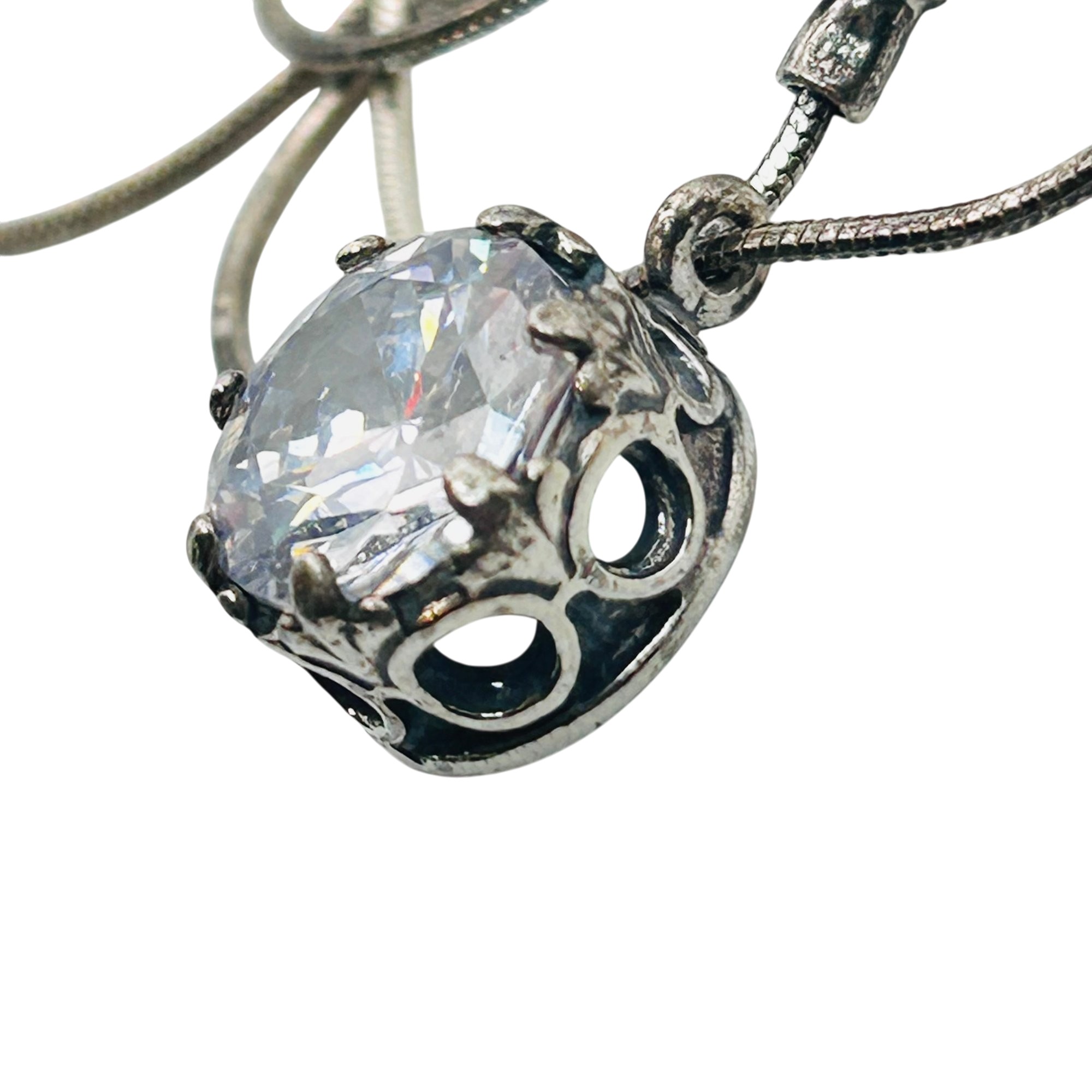 Shablool Israel Sterling round snake chain clear stone pendant necklace 6.9g